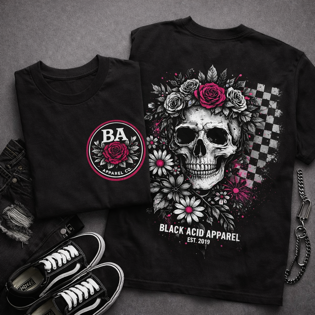 Skull Rose Tee – Black Acid Apparel