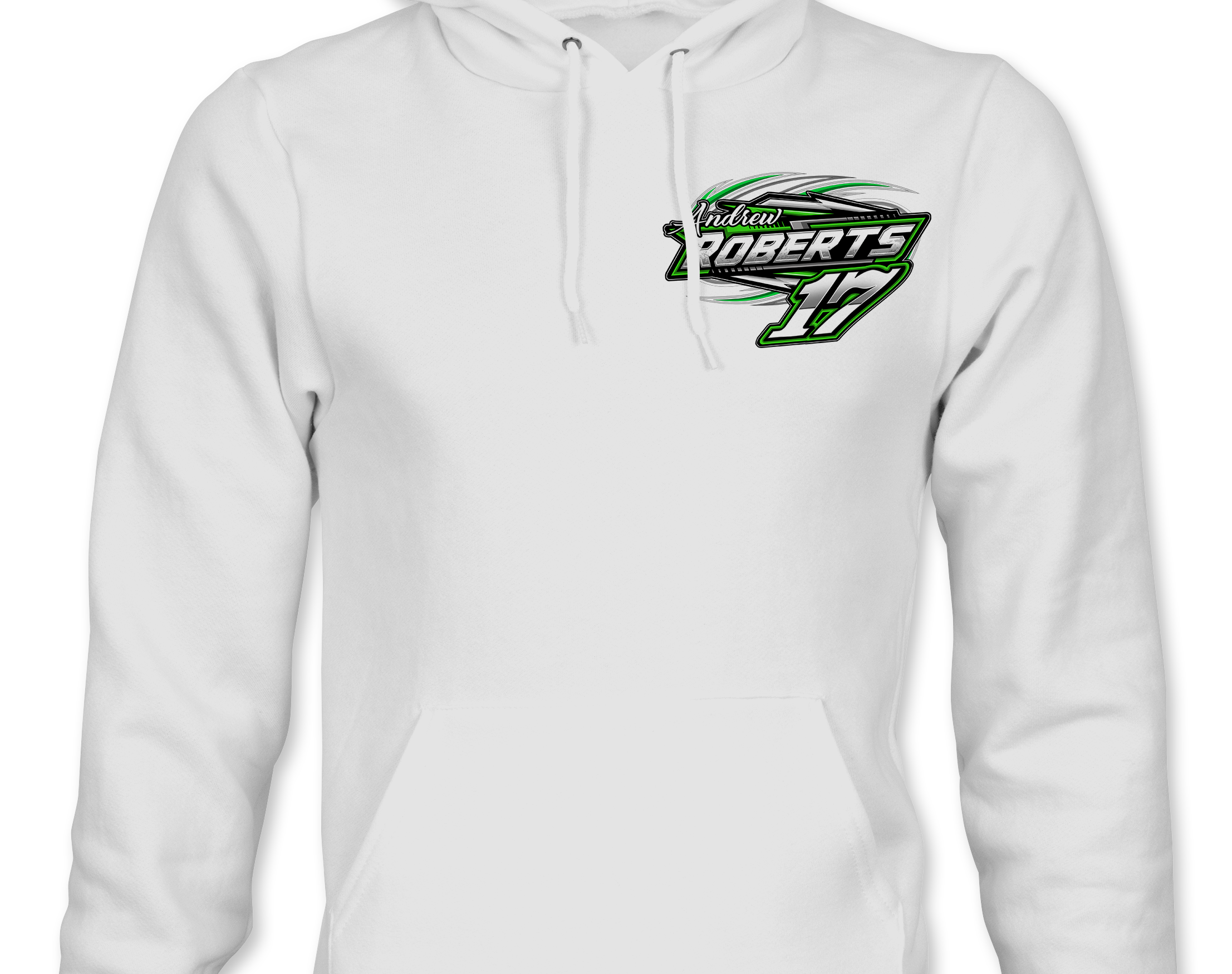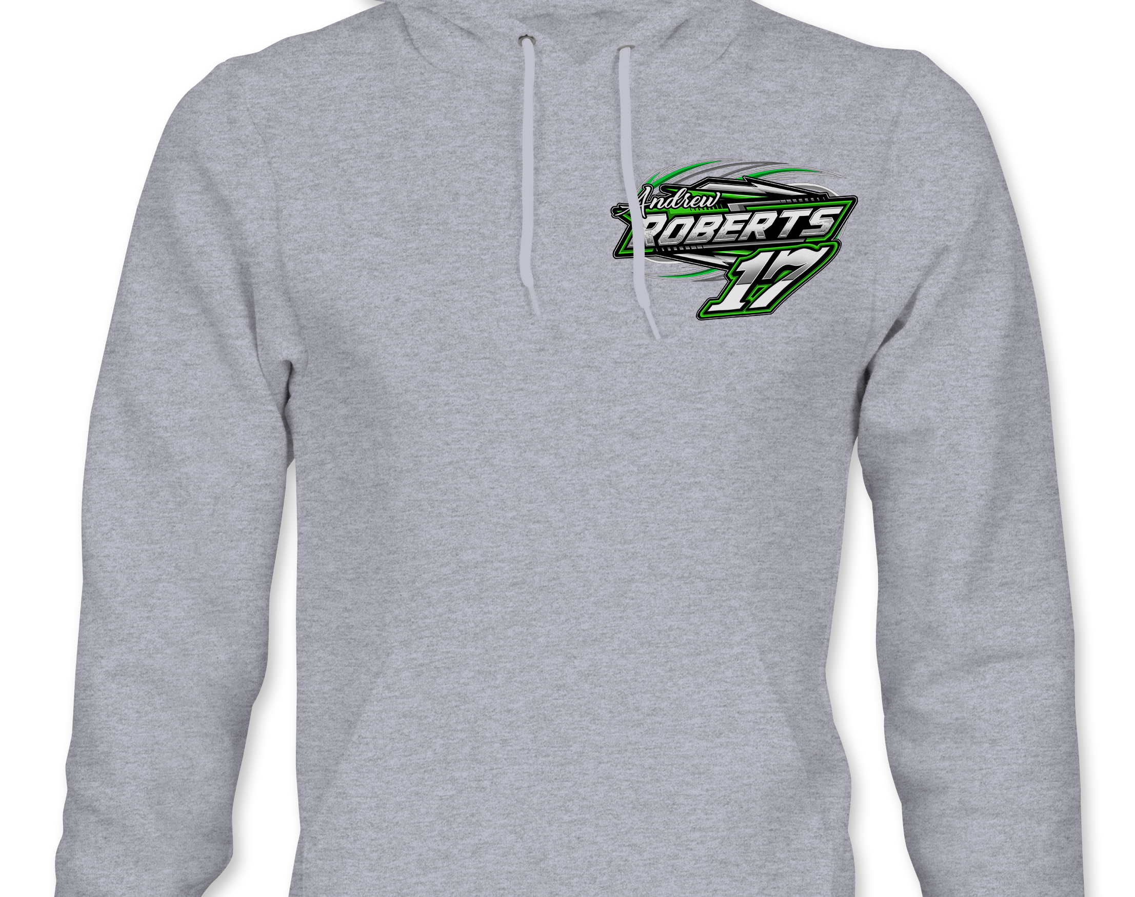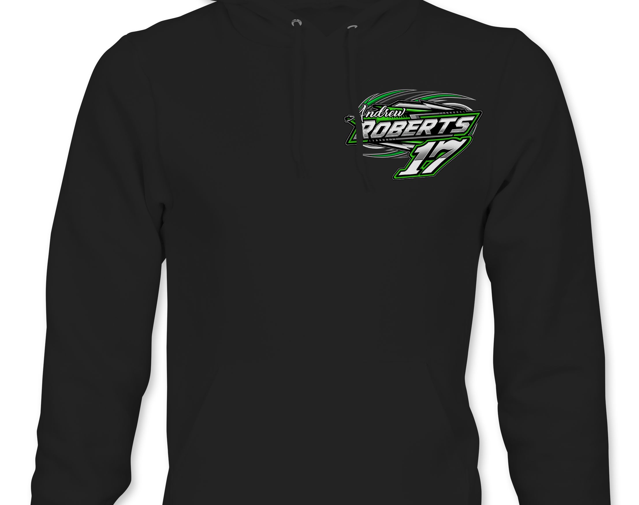 Support Andrew Roberts with their custom apparel! Available in Black, Sports Gray and White. Graphics are direct to garment printed with a left chest image and a full back image.