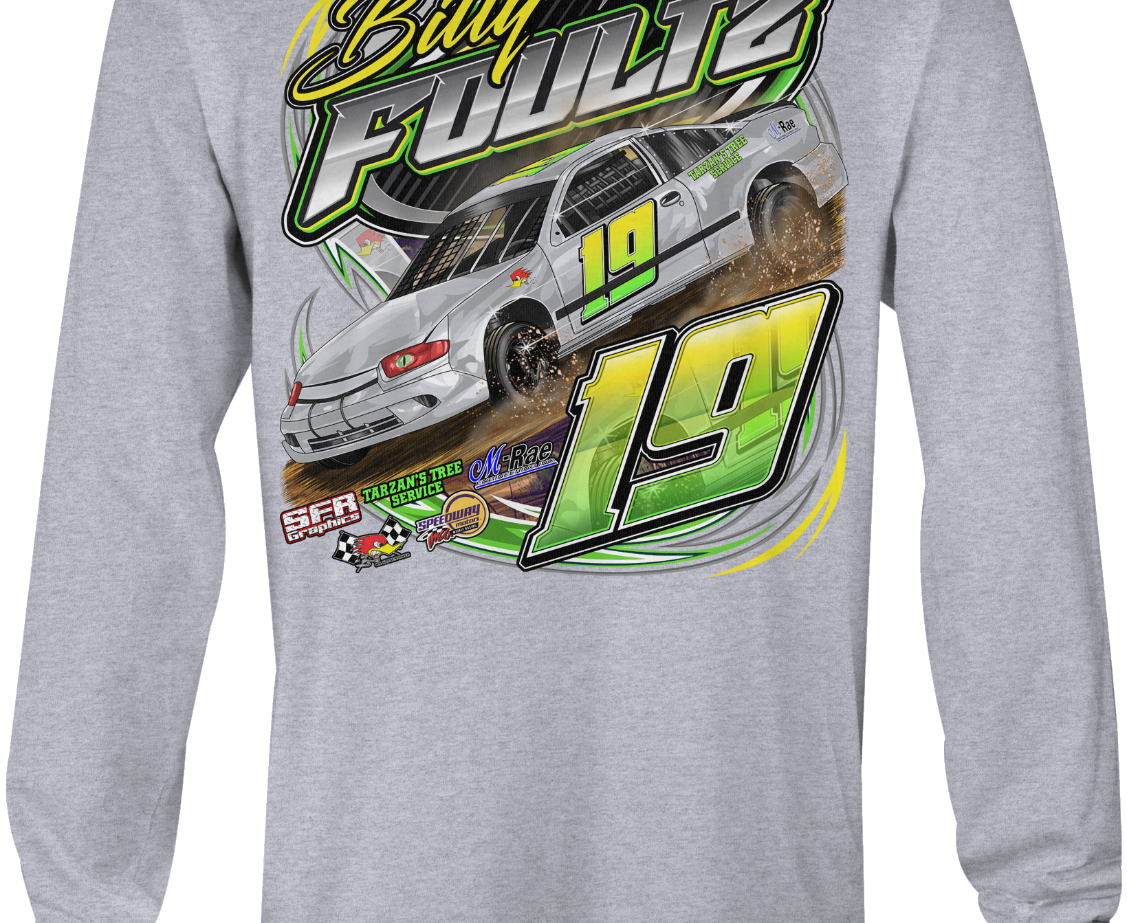 2025 Billy Foultz Racing Official driver merchandise printed to order on premium apparel. Designed for race fans and supporters.