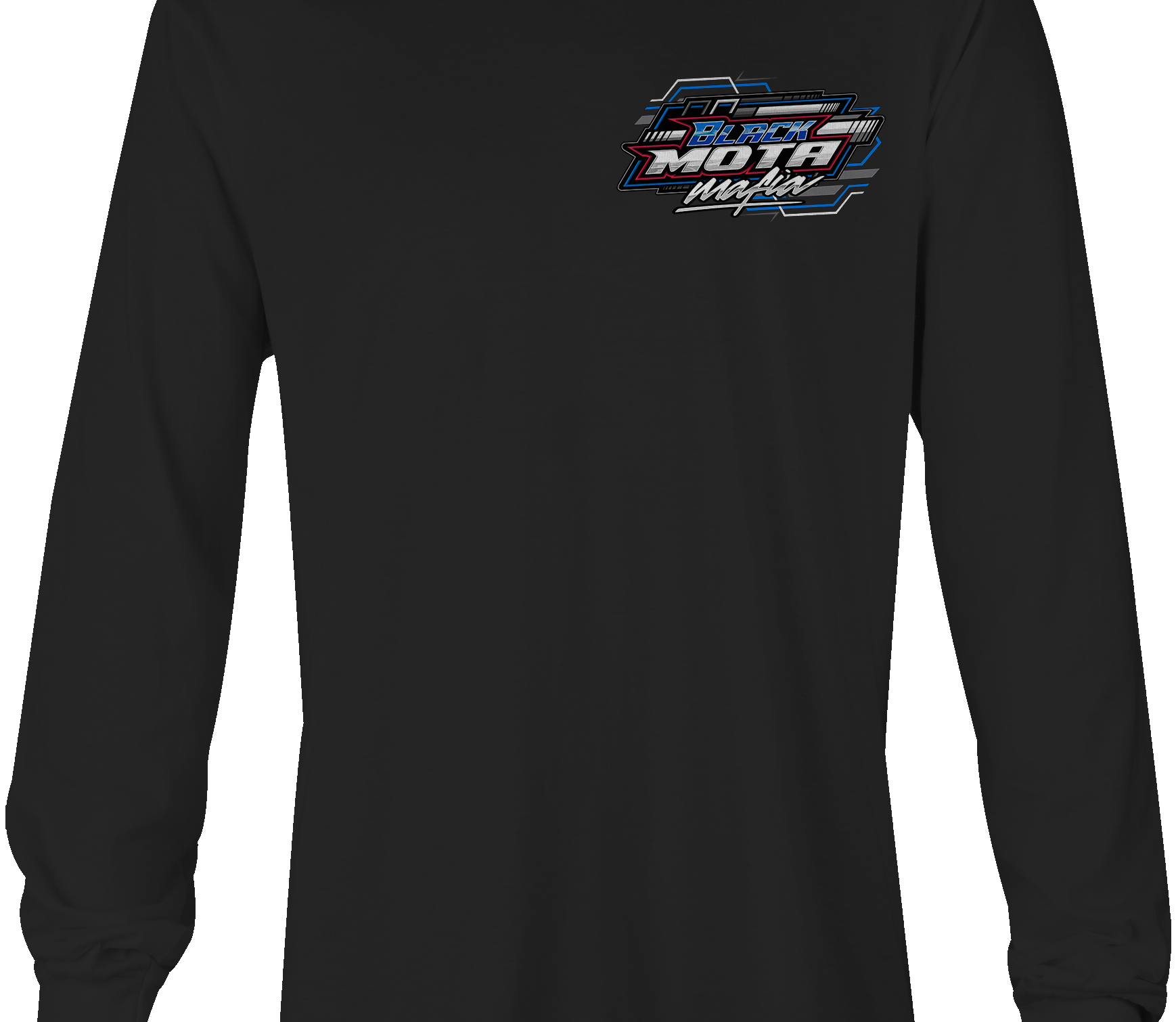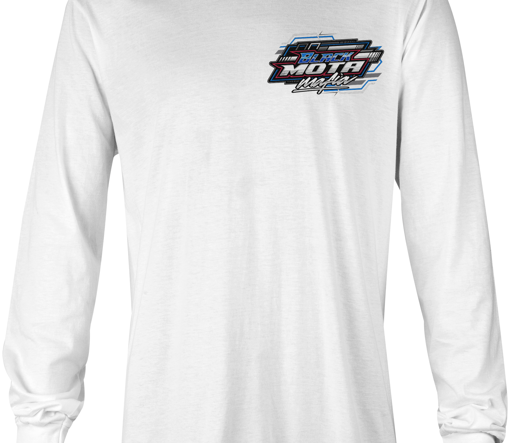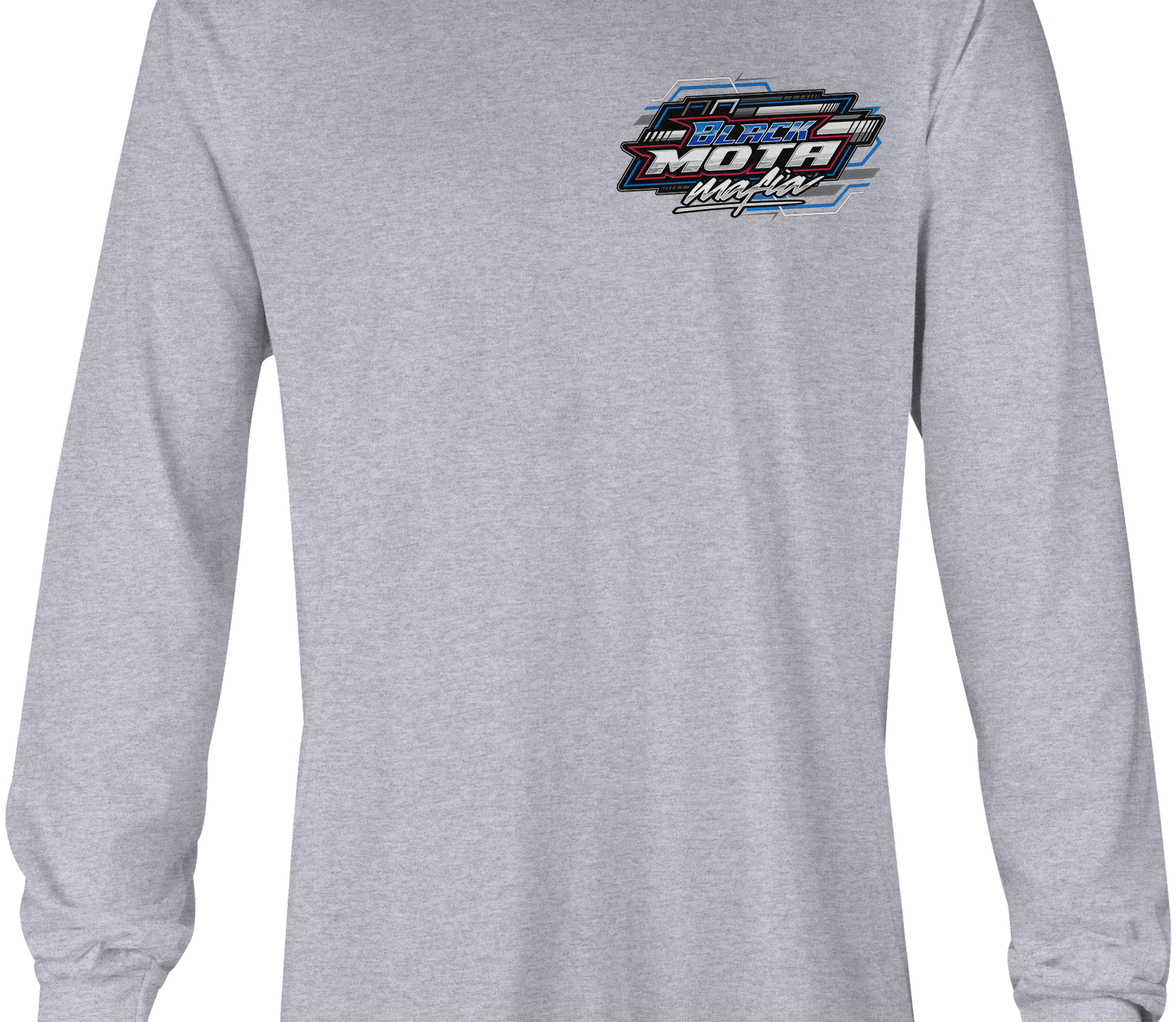 Support Black Mota Mafia with their custom apparel! Available in Black, Sports Gray and White. Graphics are direct to garment printed with a left chest image and a full back image.