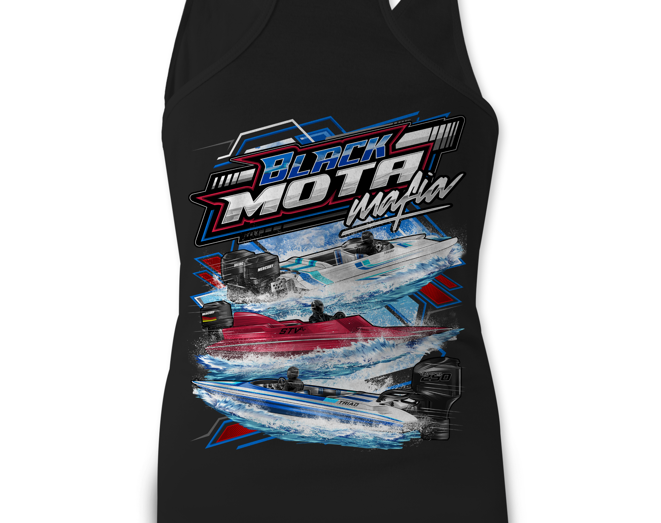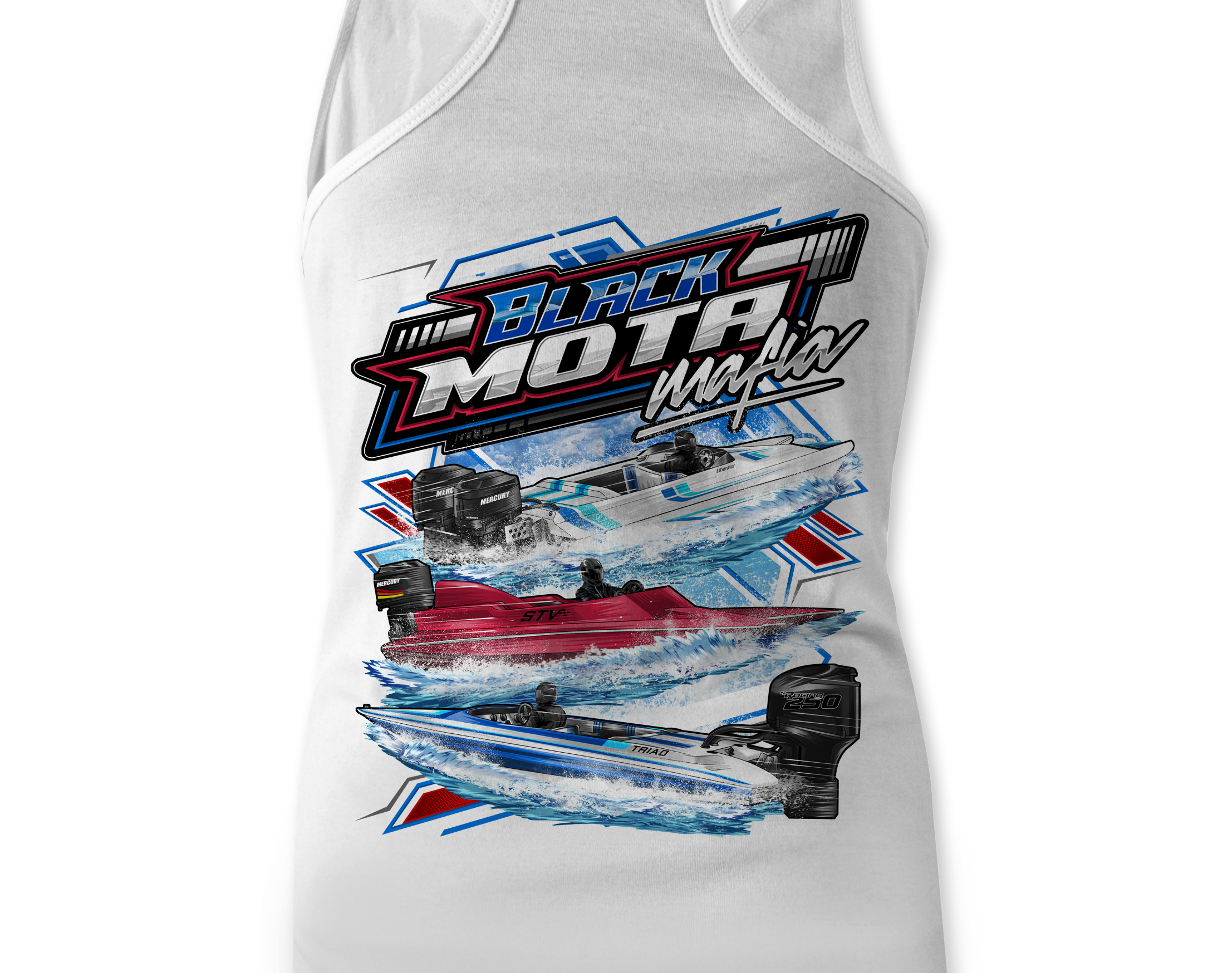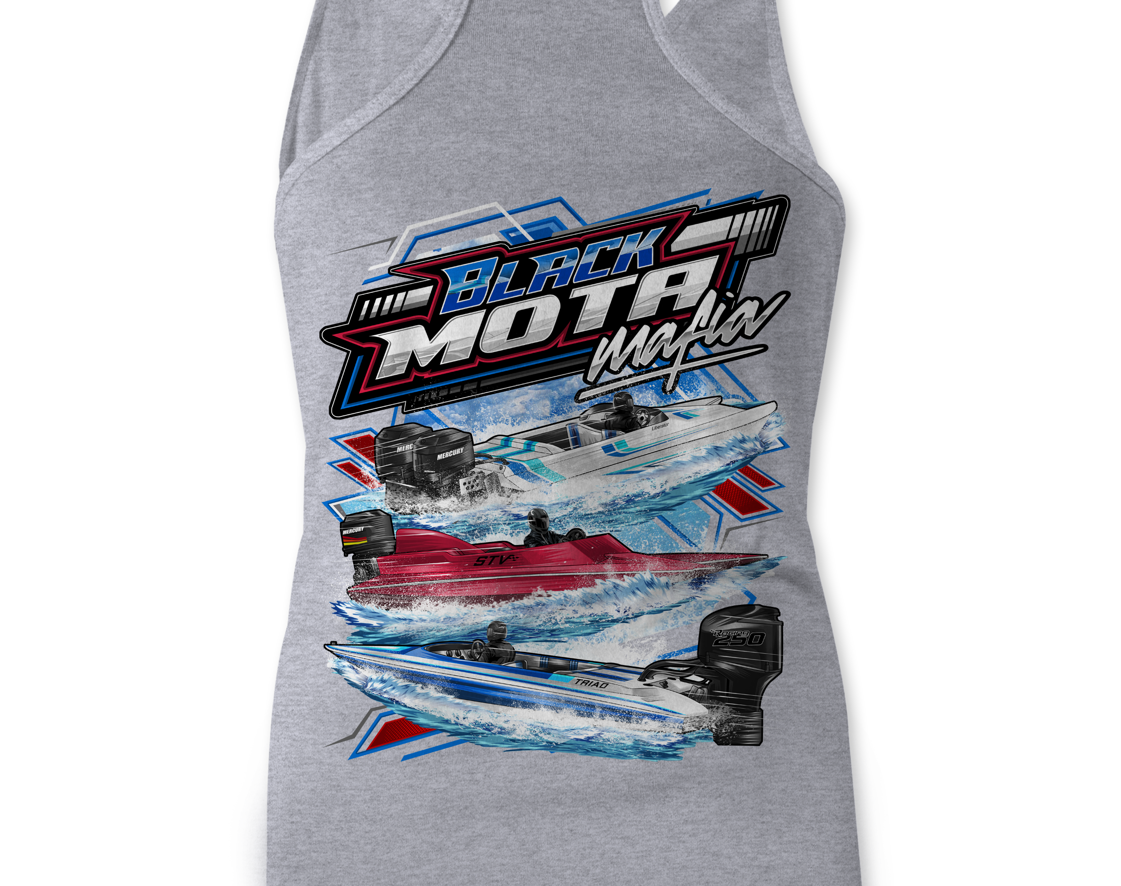 Support Black Mota Mafia with their custom apparel! Available in Black, Sports Gray and White. Graphics are direct to garment printed with a left chest image and a full back image.
