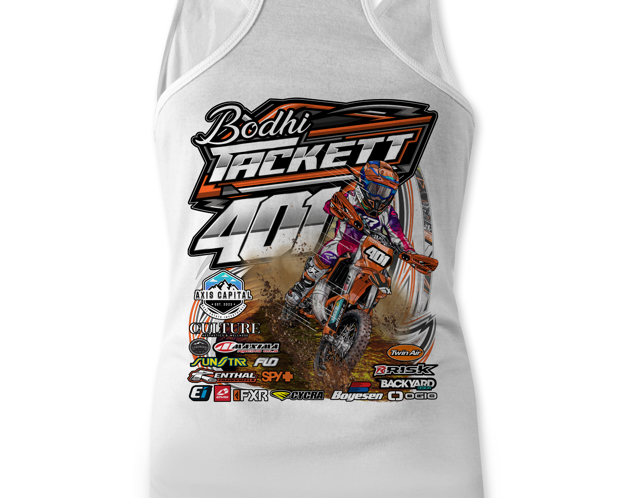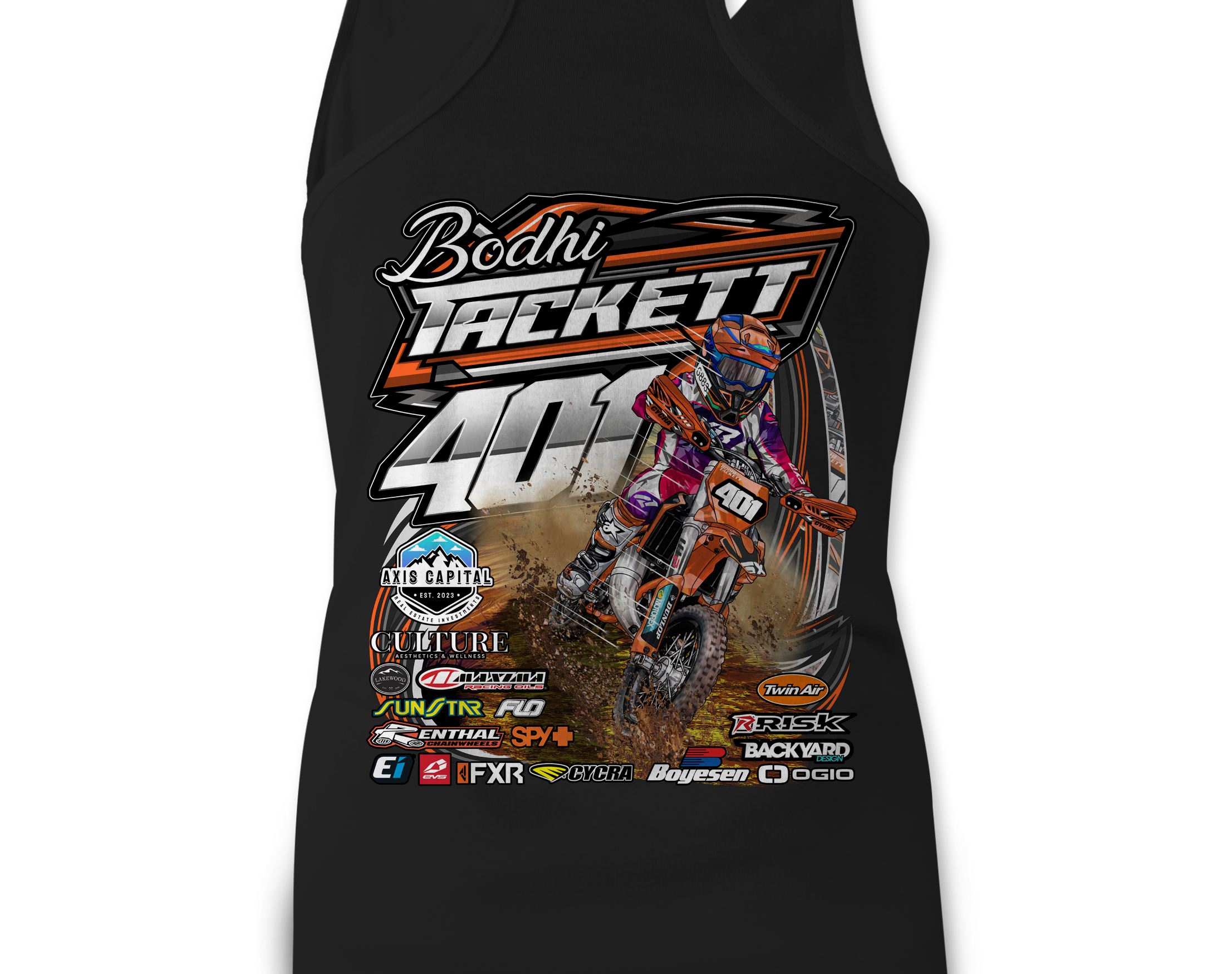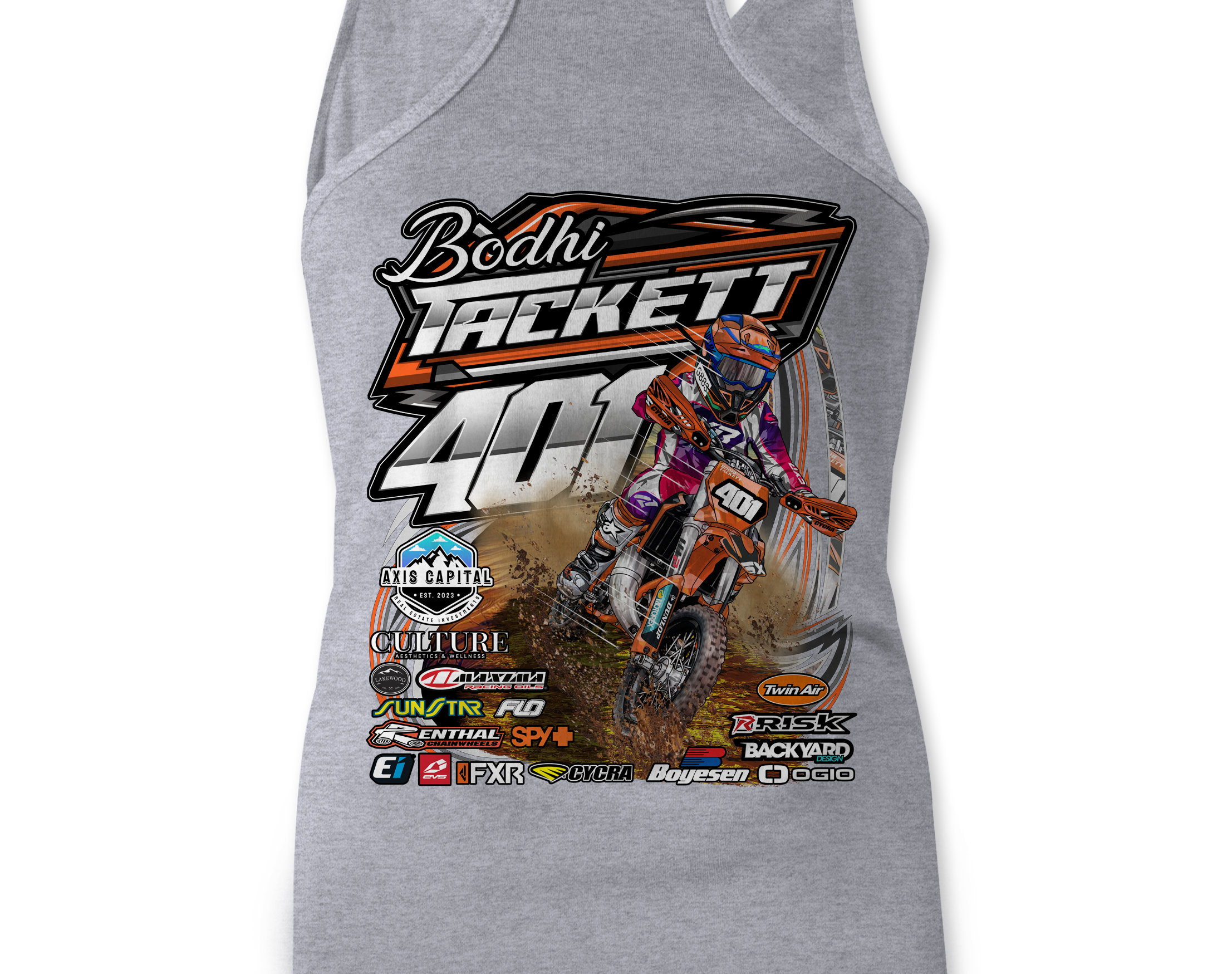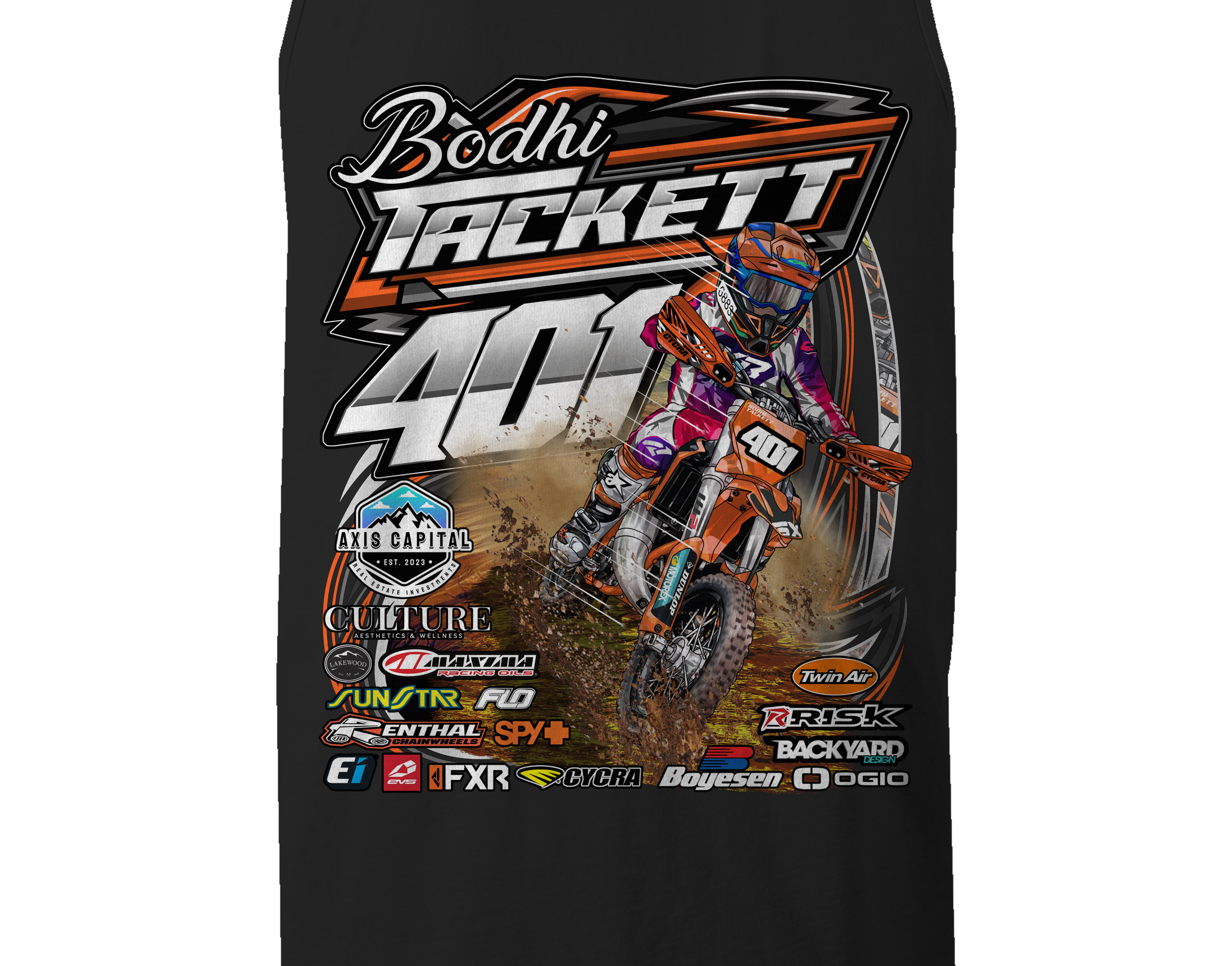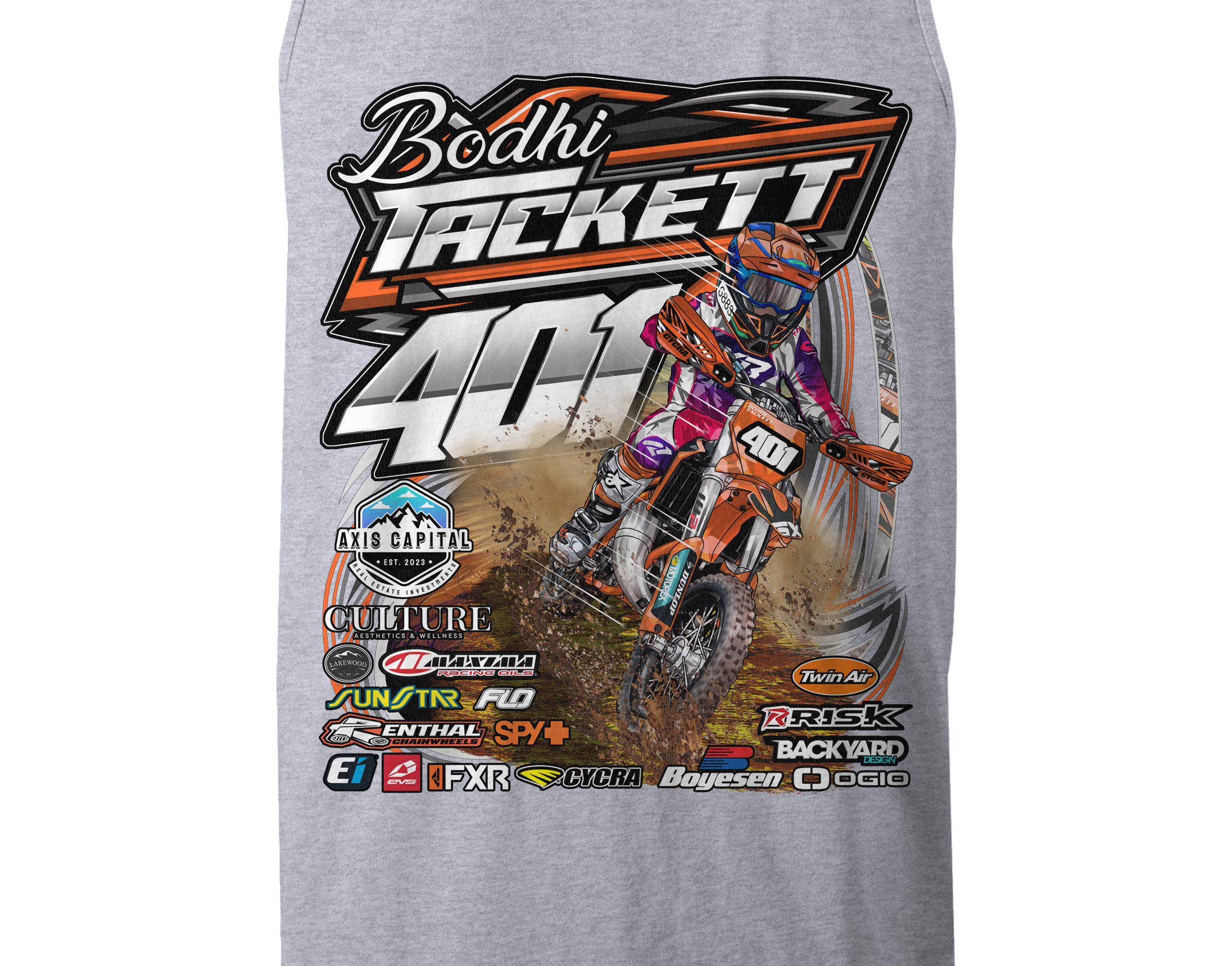 Support Bodhi Tackett with their custom apparel! Available in Black, Sports Gray and White. Graphics are direct to garment printed with a left chest image and a full back image.