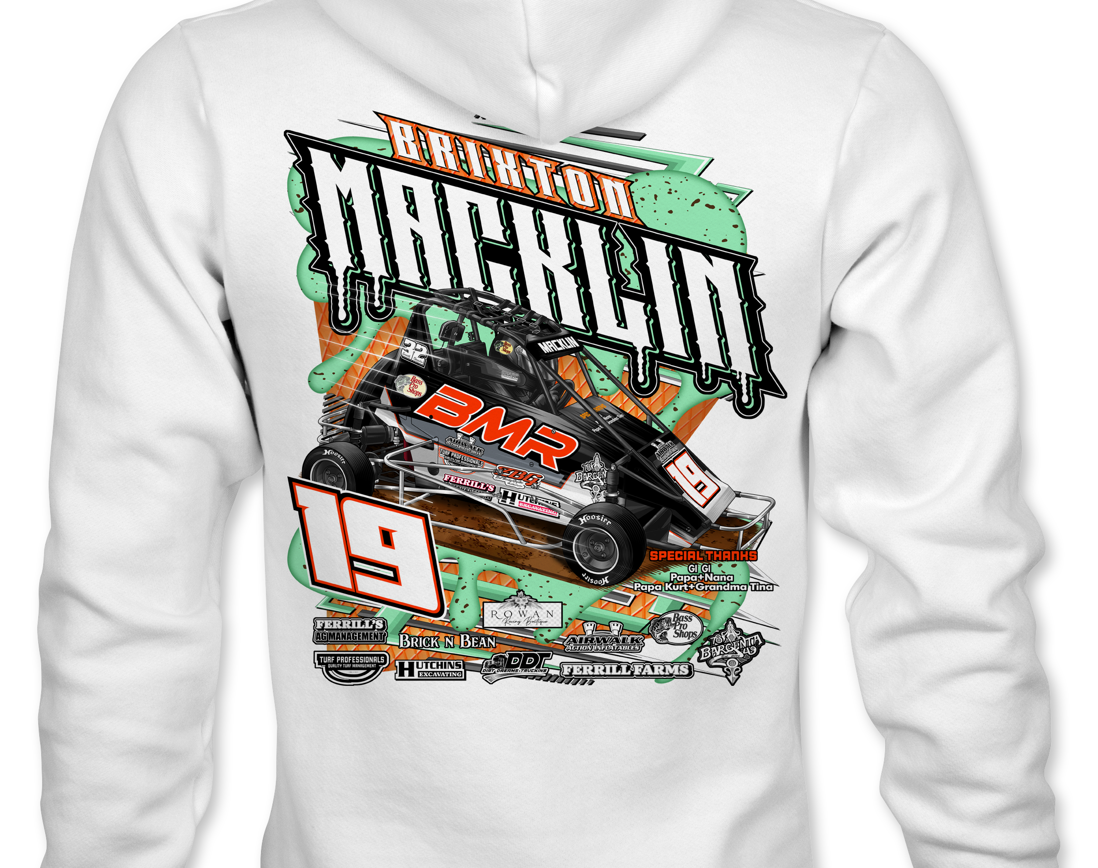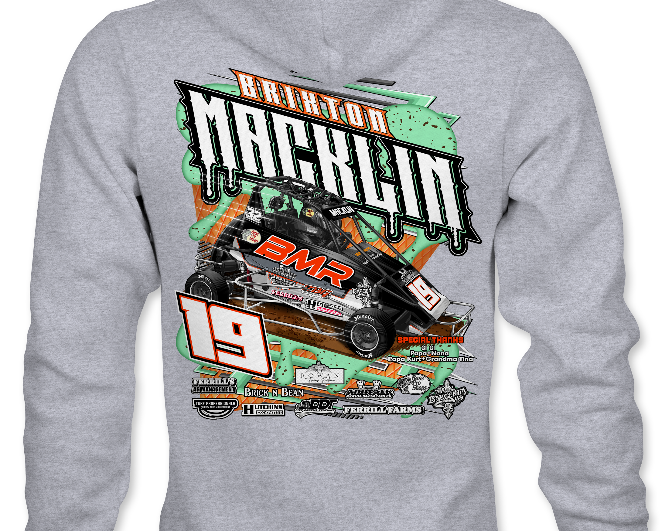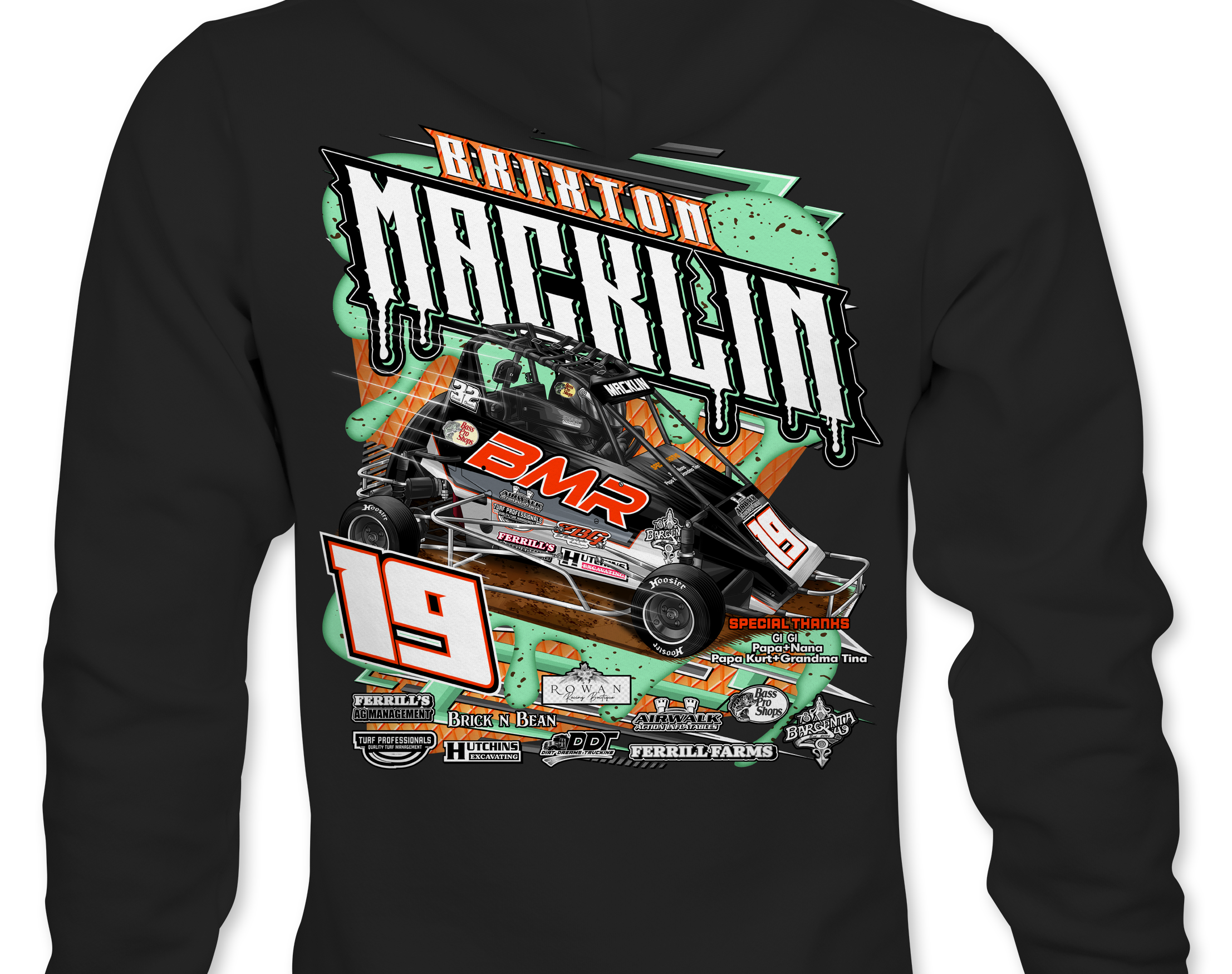 Support Brixton Macklin 2025 with their custom apparel! Available in Black, Sports Gray and White. Graphics are direct to garment printed with a left chest image and a full back image.