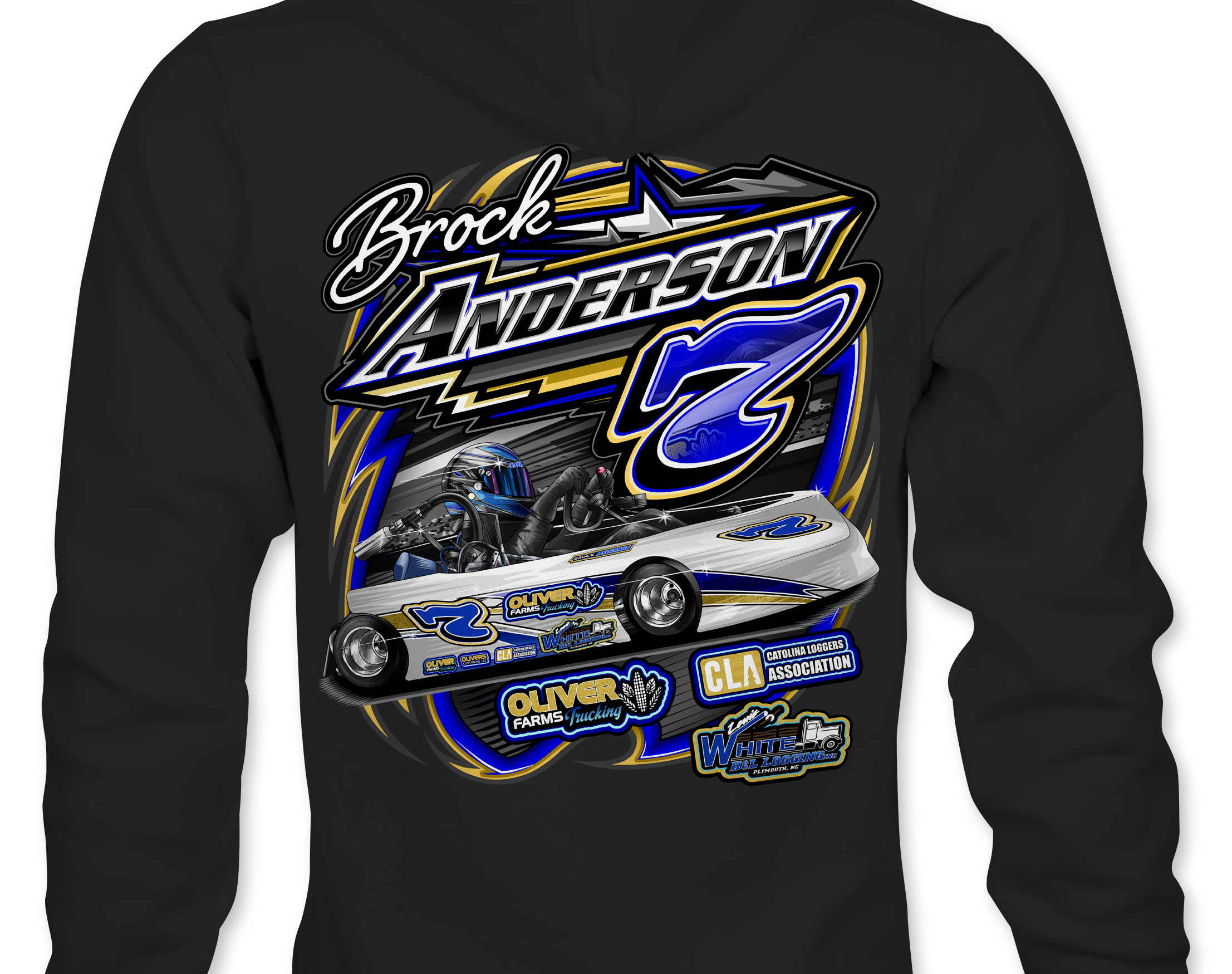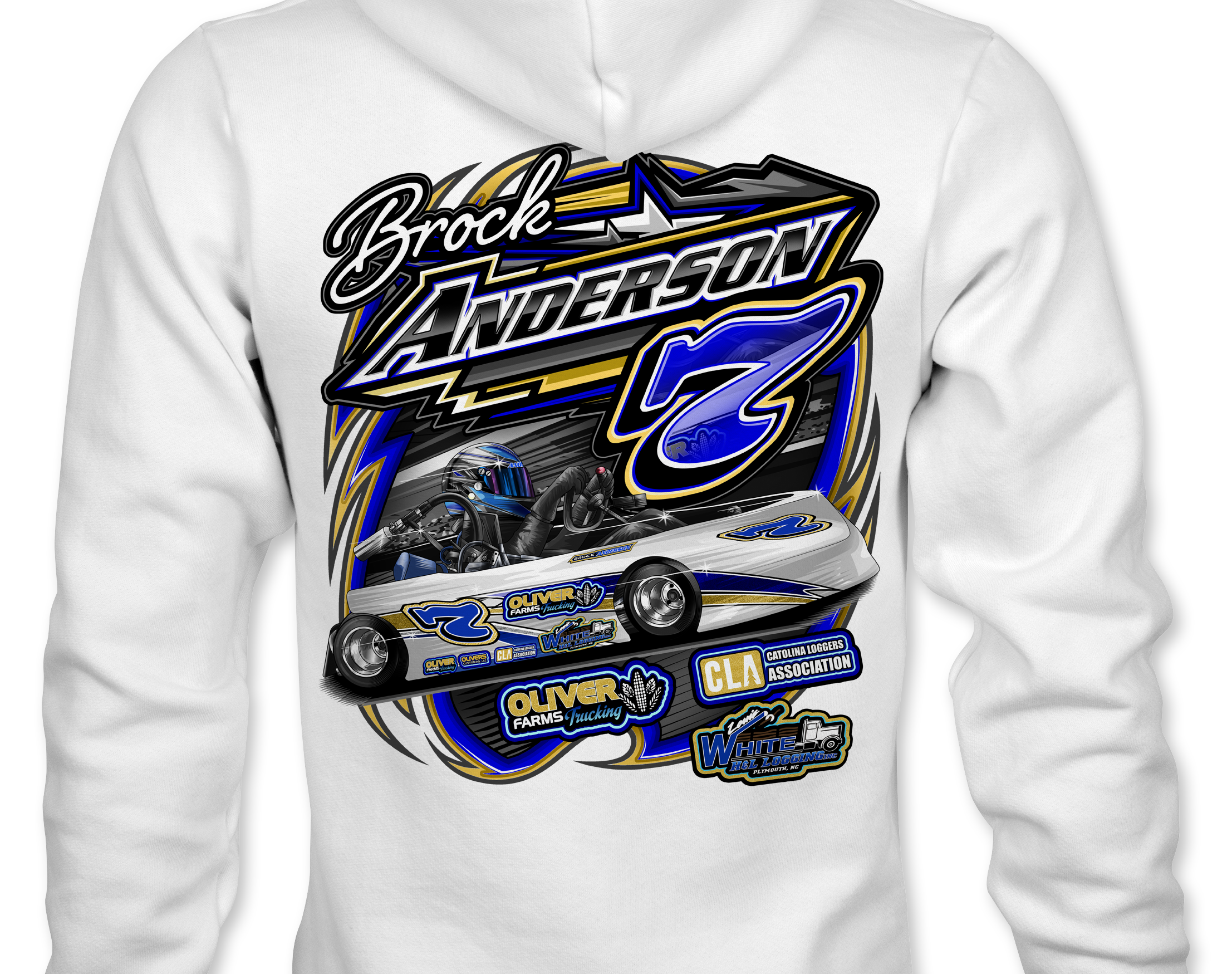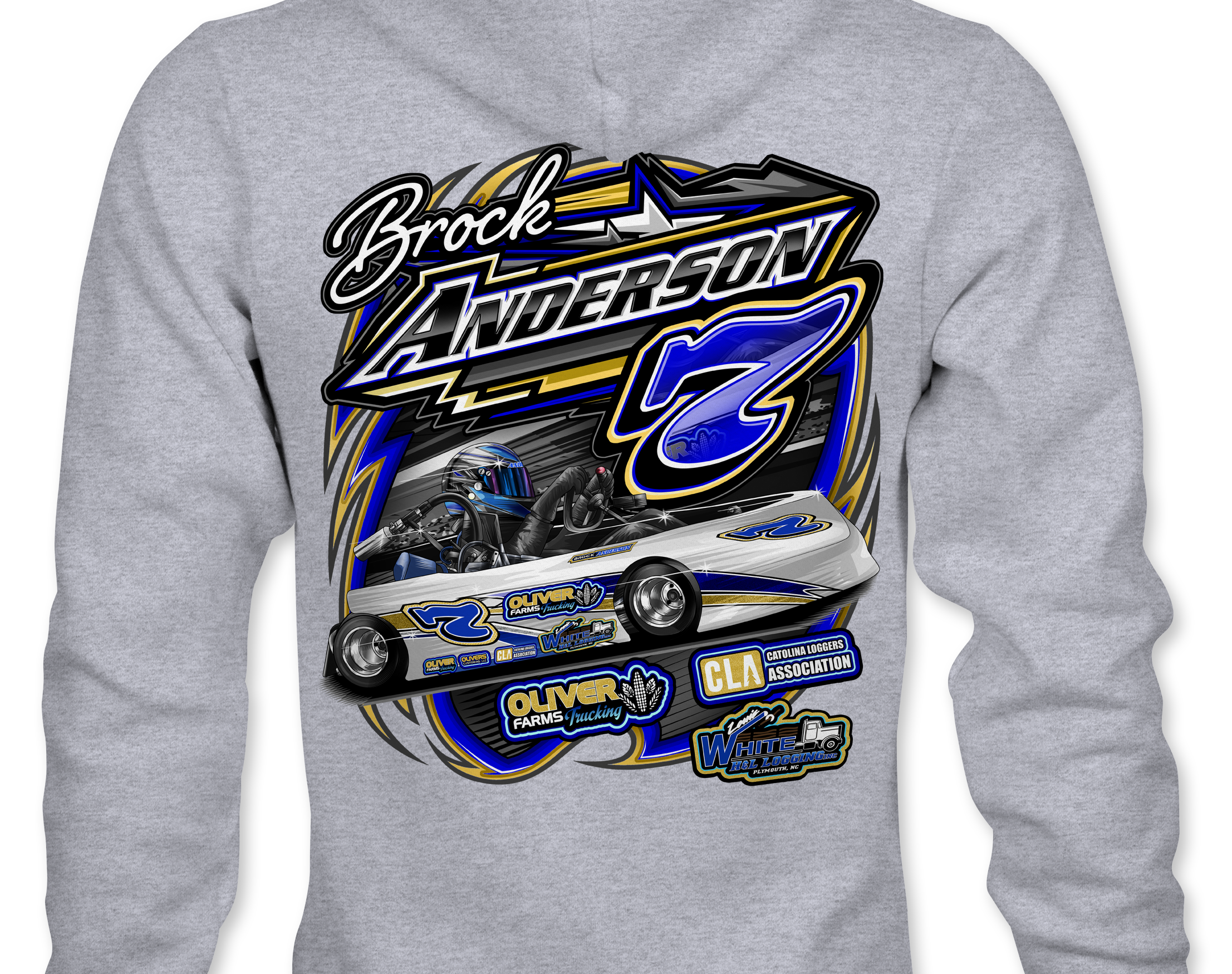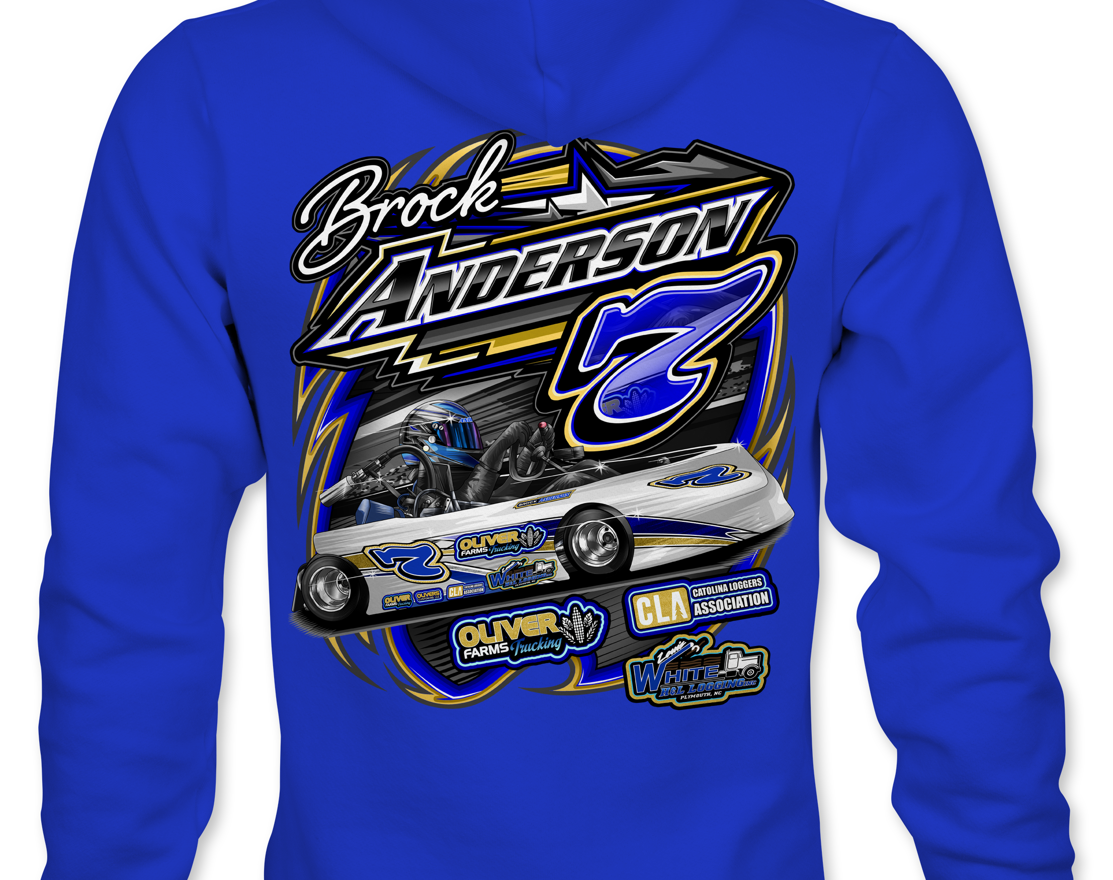 Support Brock Anderson 2025 with their custom apparel! Available in Black, Sports Gray, Royal Blue and White. Graphics are direct to garment printed with a left chest image and a full back image.