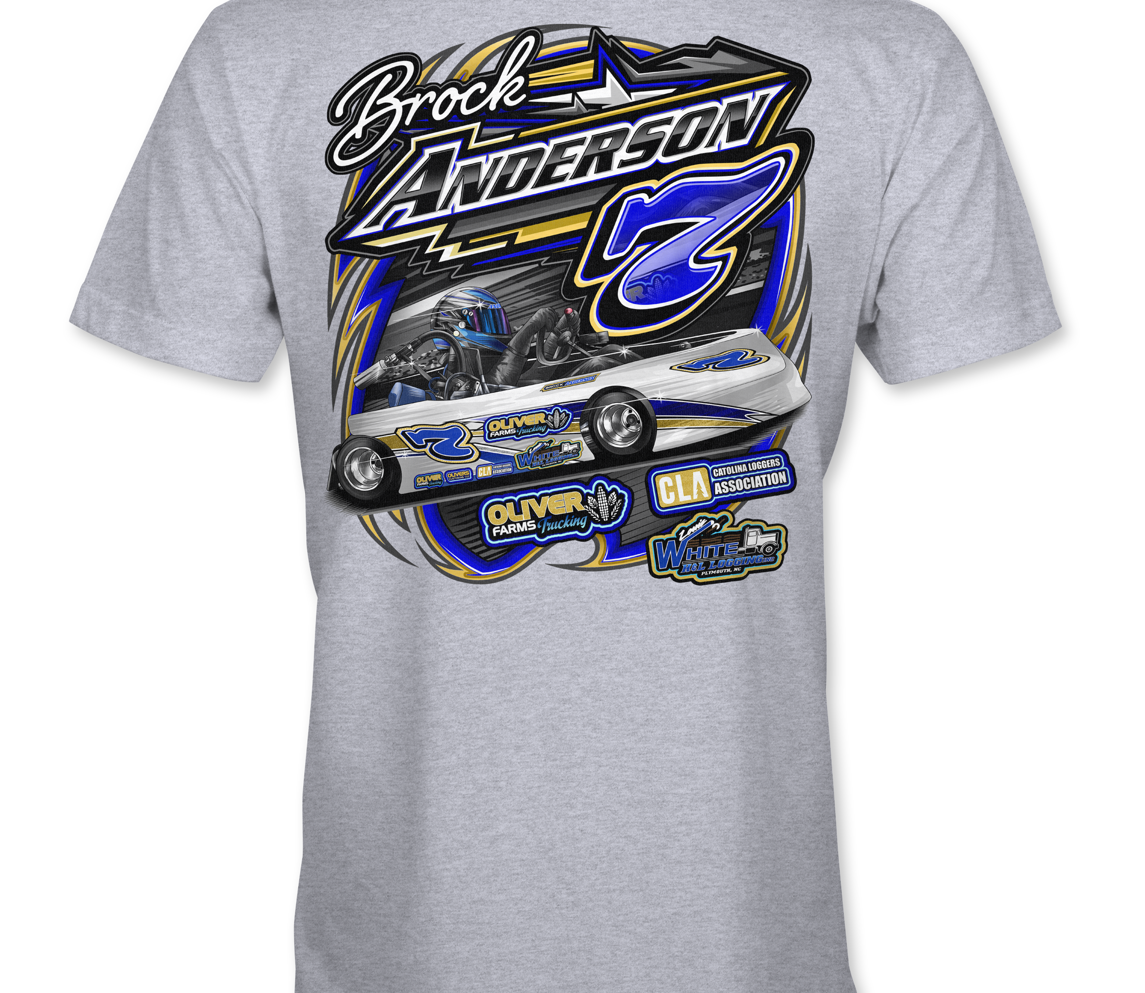 Support Brock Anderson 2025 with their custom apparel!  Available in Black, Sports Gray, Royal Blue and White. Graphics are direct to garment printed with a left chest image and a full back image.