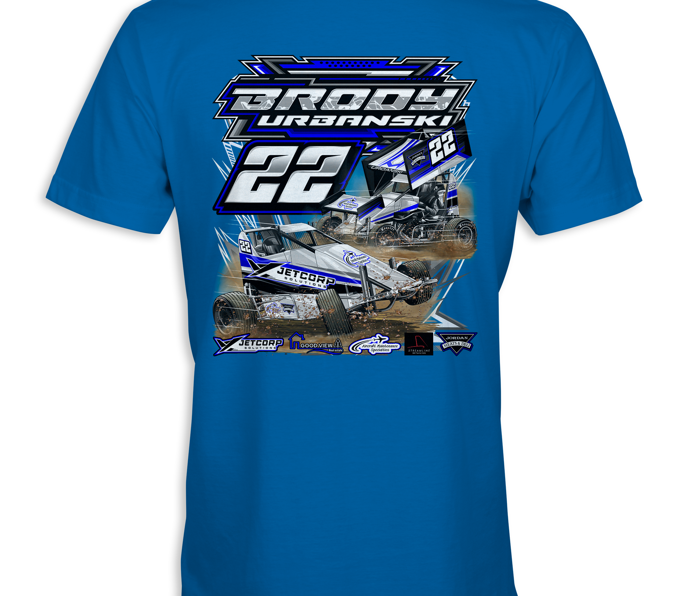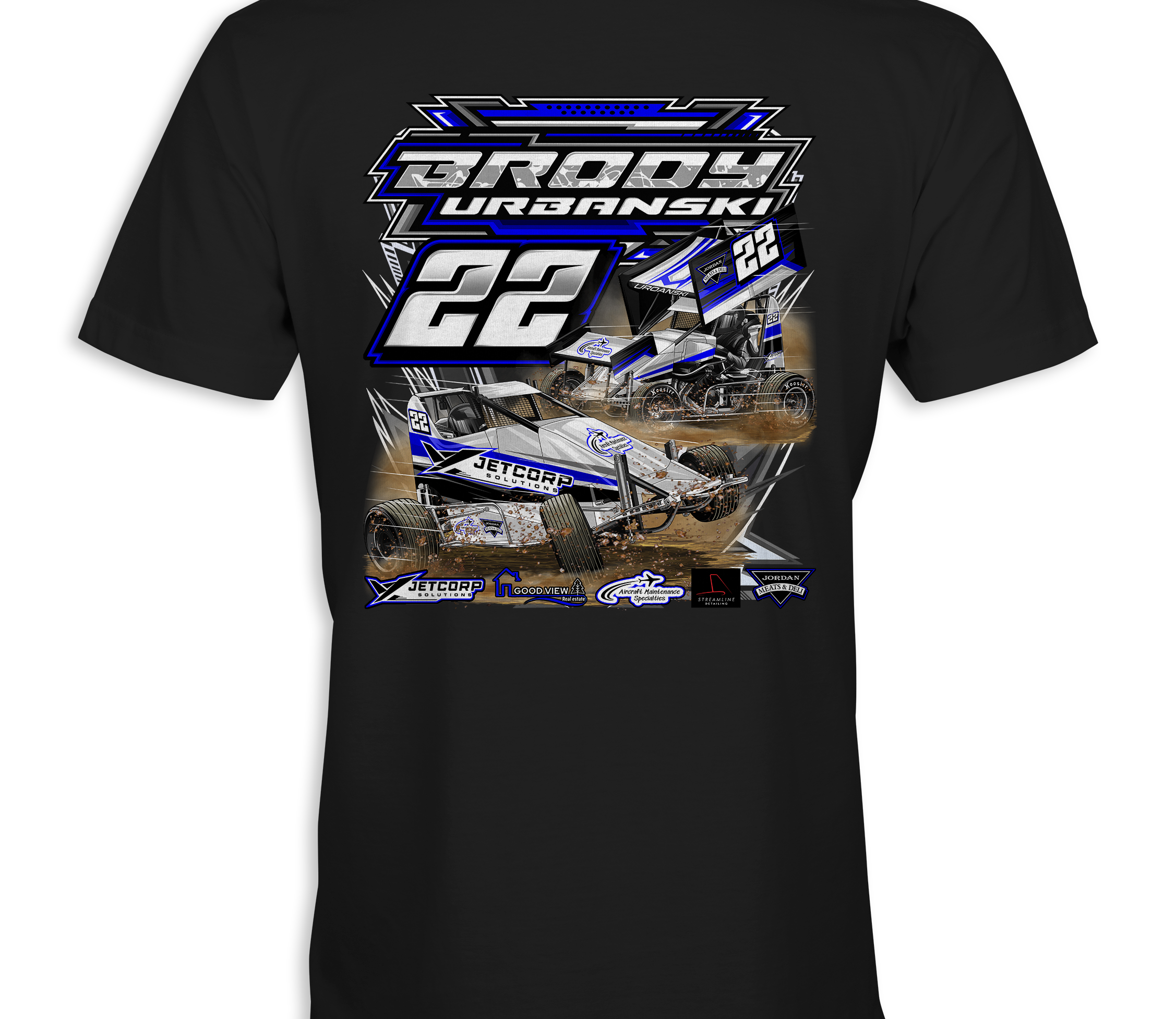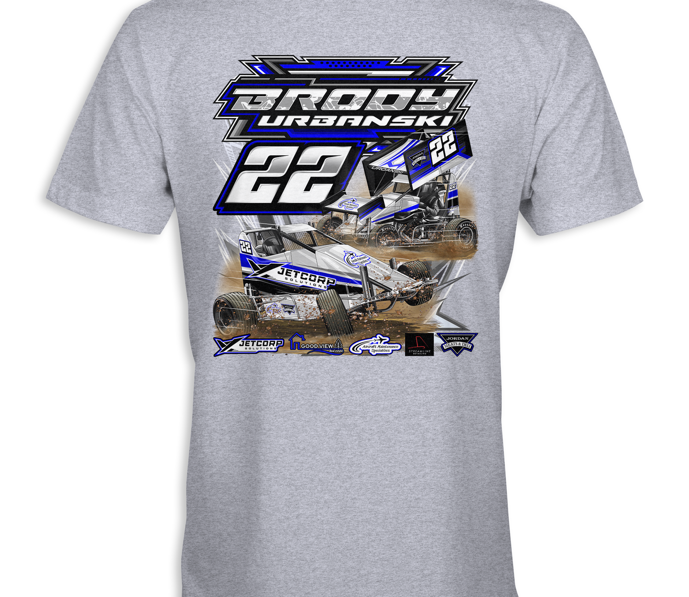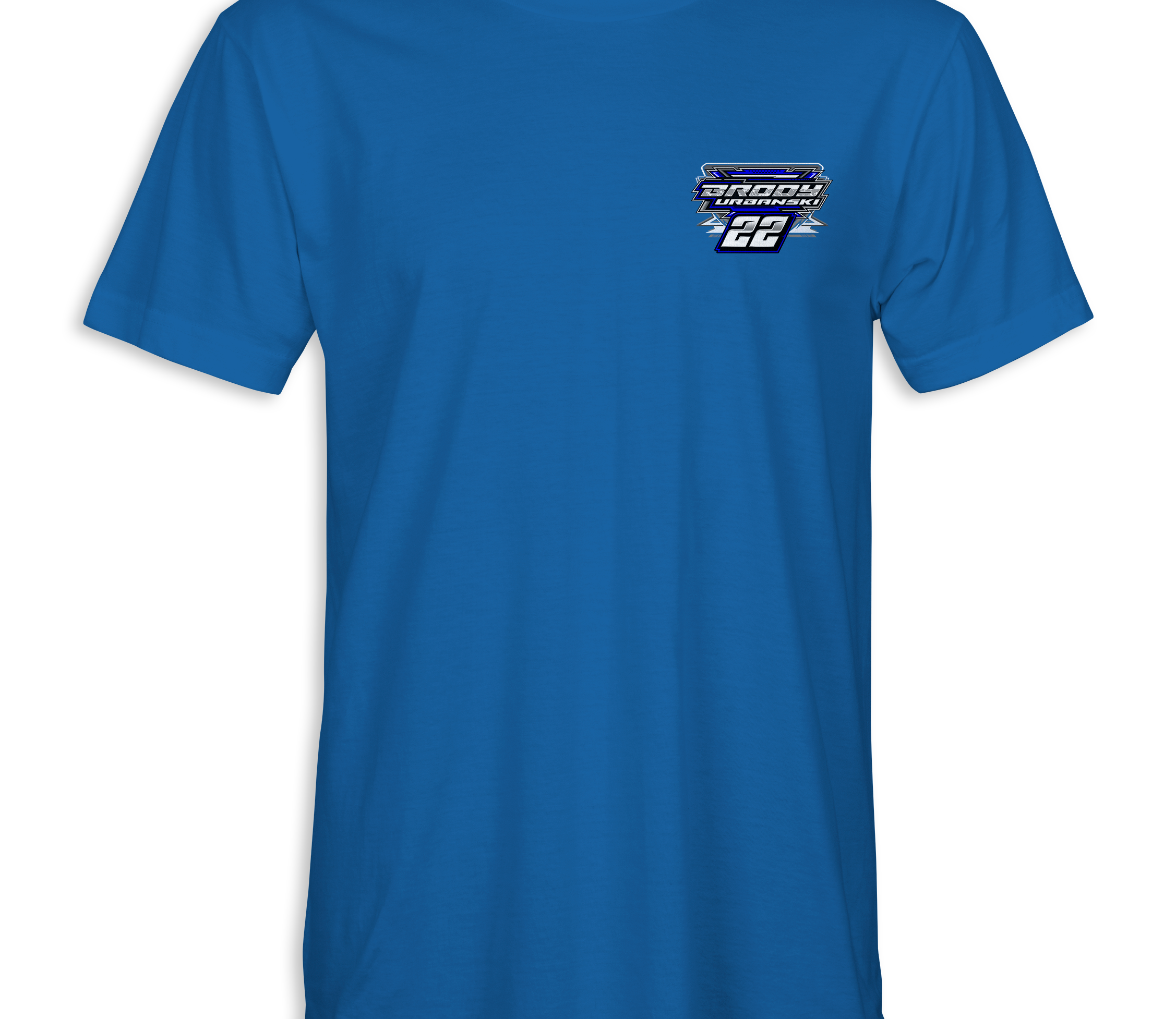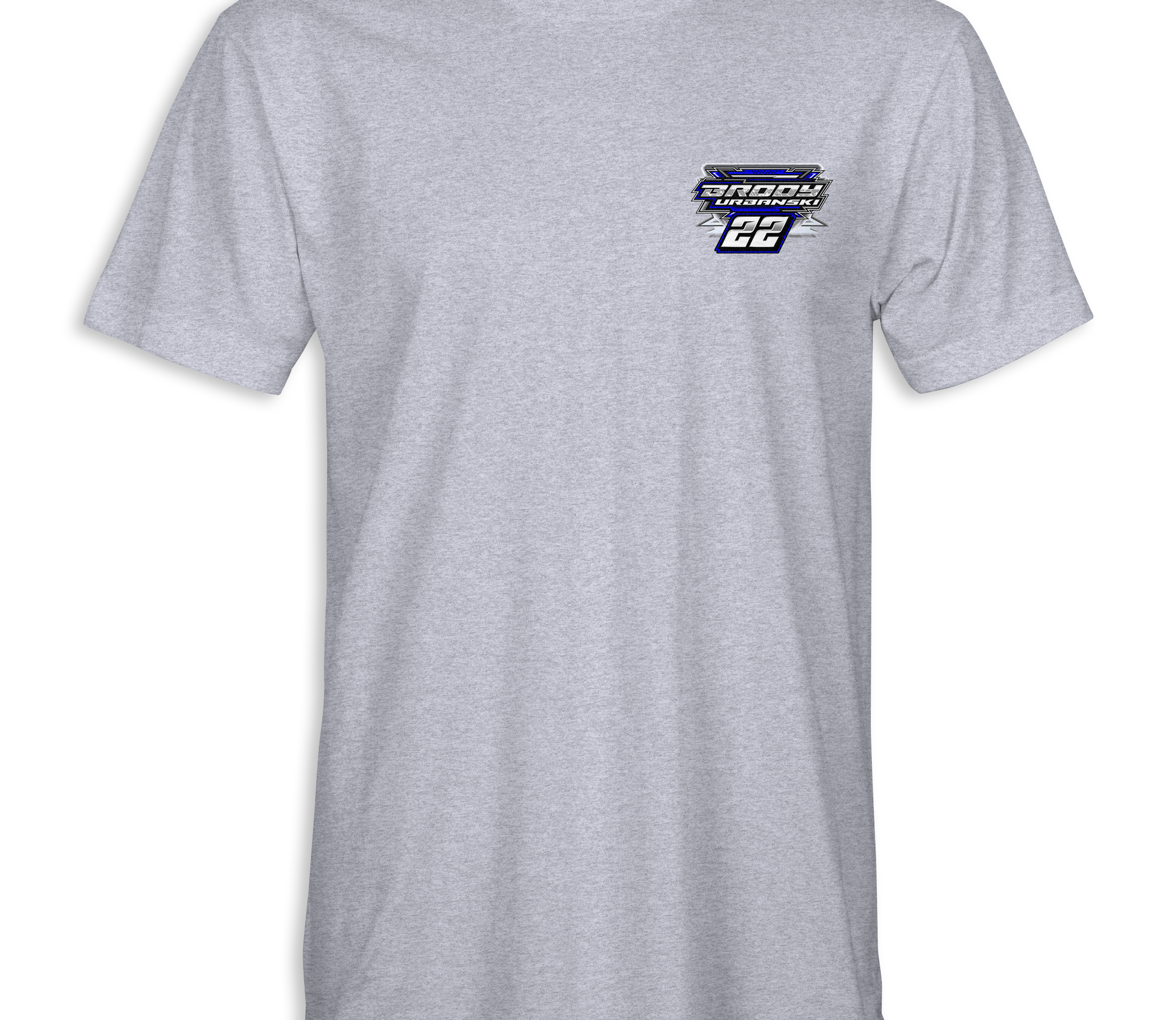 Support Brody Urbanski with their custom apparel! Available in Black,Sports Gray, Royal Blue and White. Graphics are direct to garment printed with a left chest image and a full back image.