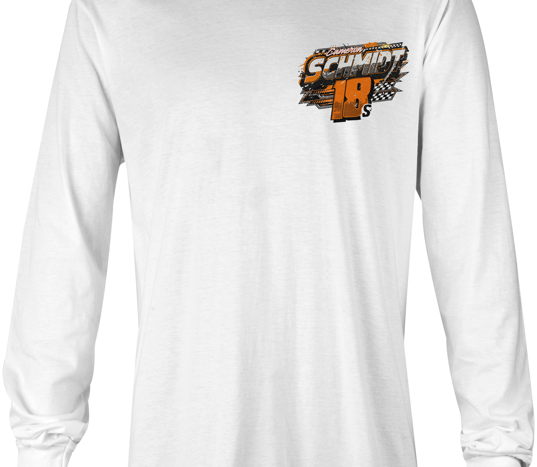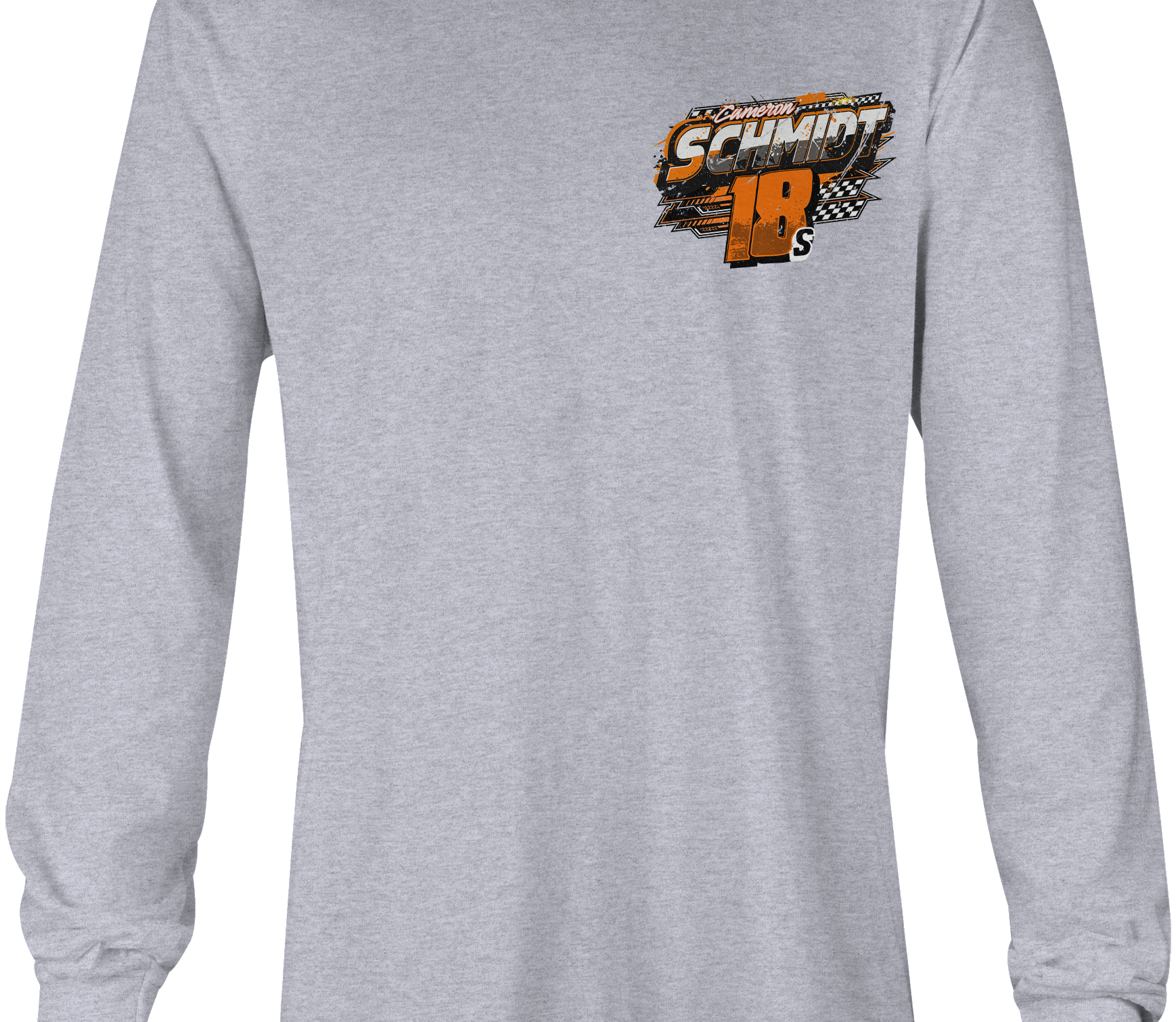Support Cameron Schmidt with their custom apparel! Available in Black, Sports Gray and White. Graphics are direct to garment printed with a left chest image and a full back image.