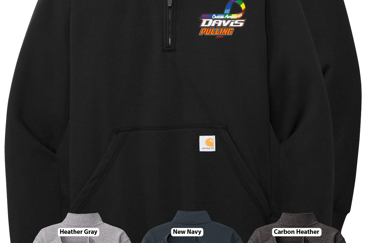 Step up from a hoodie with the Carhartt CT105294 Midweight 1/4-Zip Mock Neck Sweatshirt. Rugged Carhartt quality with a polished look — perfect for cooler weather, crew uniforms, or sponsor gifts. Personalized with your team name on the left chest and crew names, numbers, or sponsors on the right.