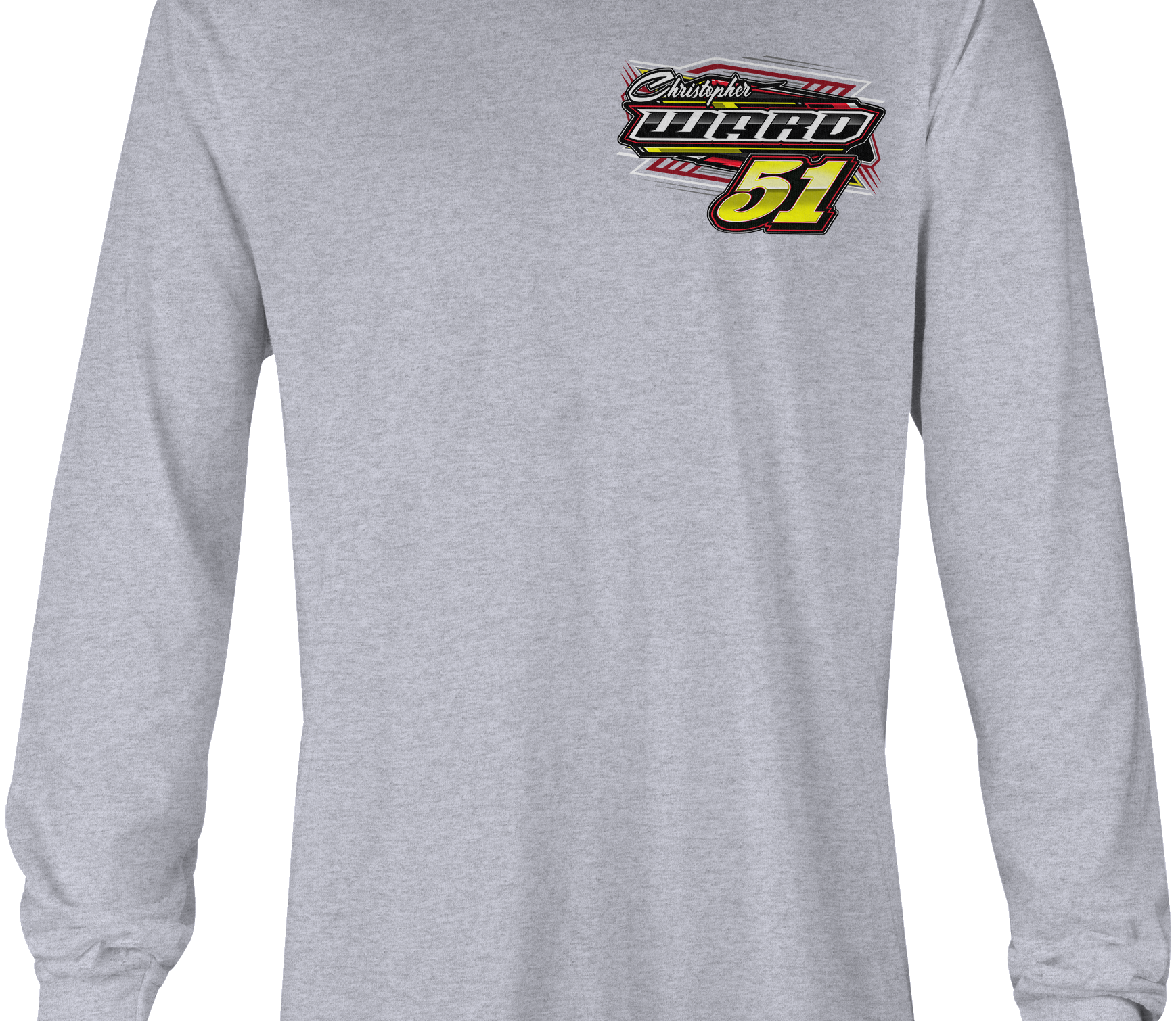 Support Christopher Ward with their custom apparel! Available in Black, Sports Gray and White. Graphics are direct to garment printed with a left chest image and a full back image.