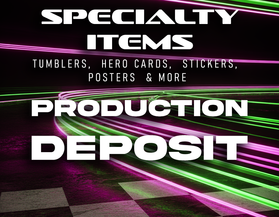 Specialty items may include (but are not limited to) printed marketing materials, hero cards, flyers, stickers, sublimated products, mixed production methods, or other custom items that fall outside of standard printed apparel or embroidery workflows.