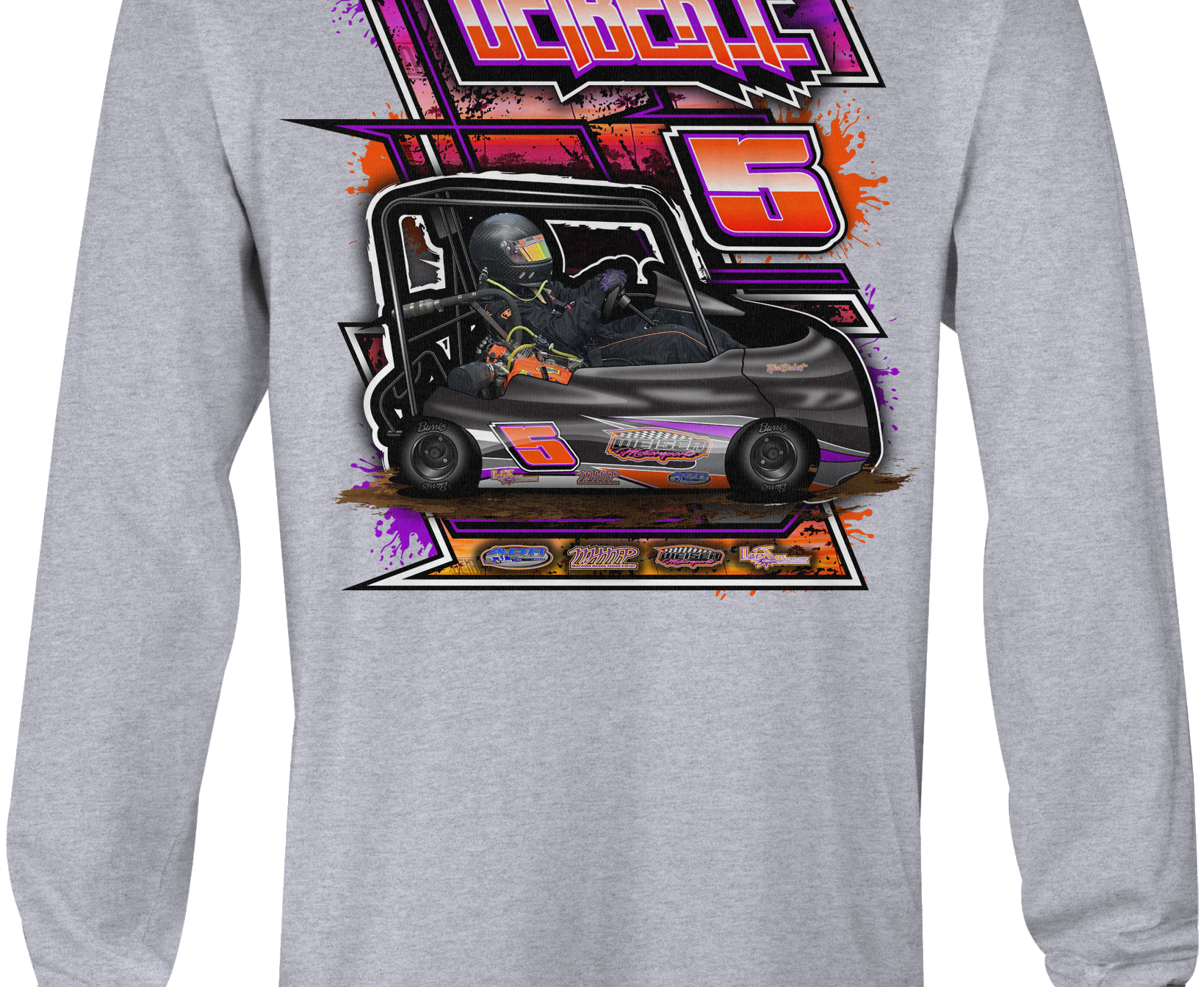 Support Deibert Racing 2025 with their custom apparel! Available in Black, Sports Gray and White. Graphics are direct to garment printed with a left chest image and a full back image.