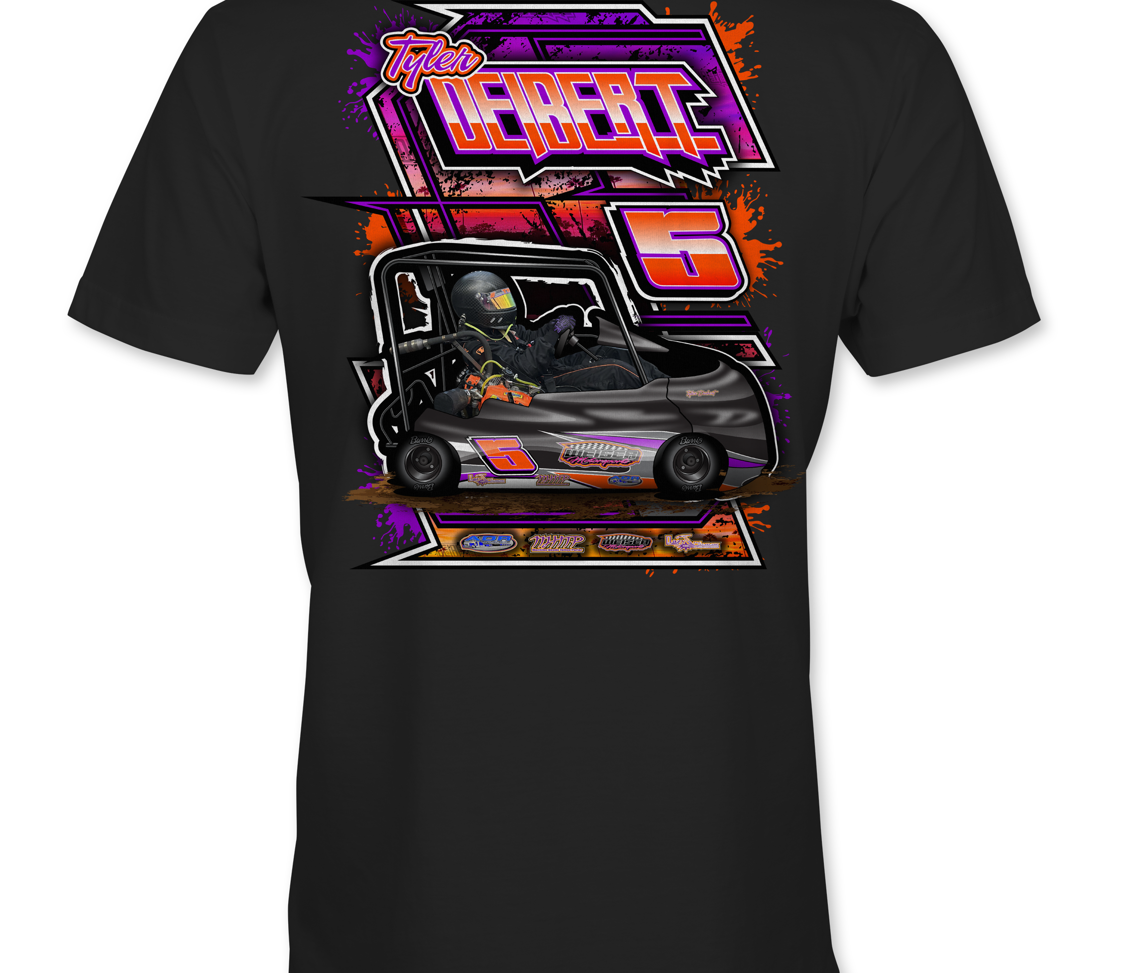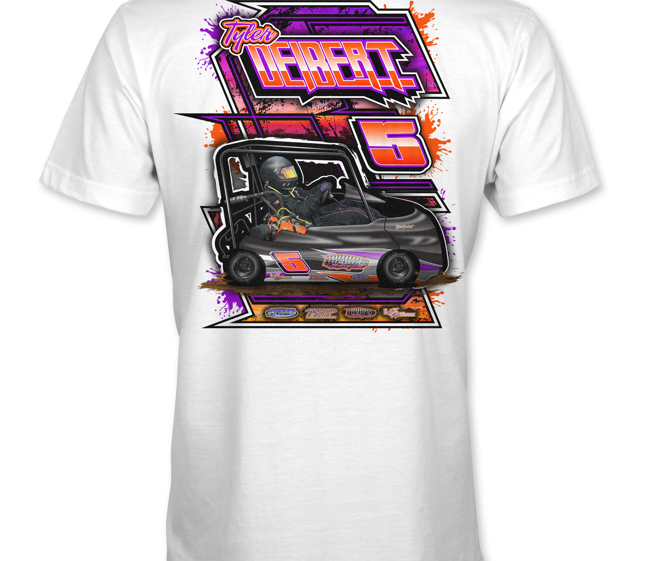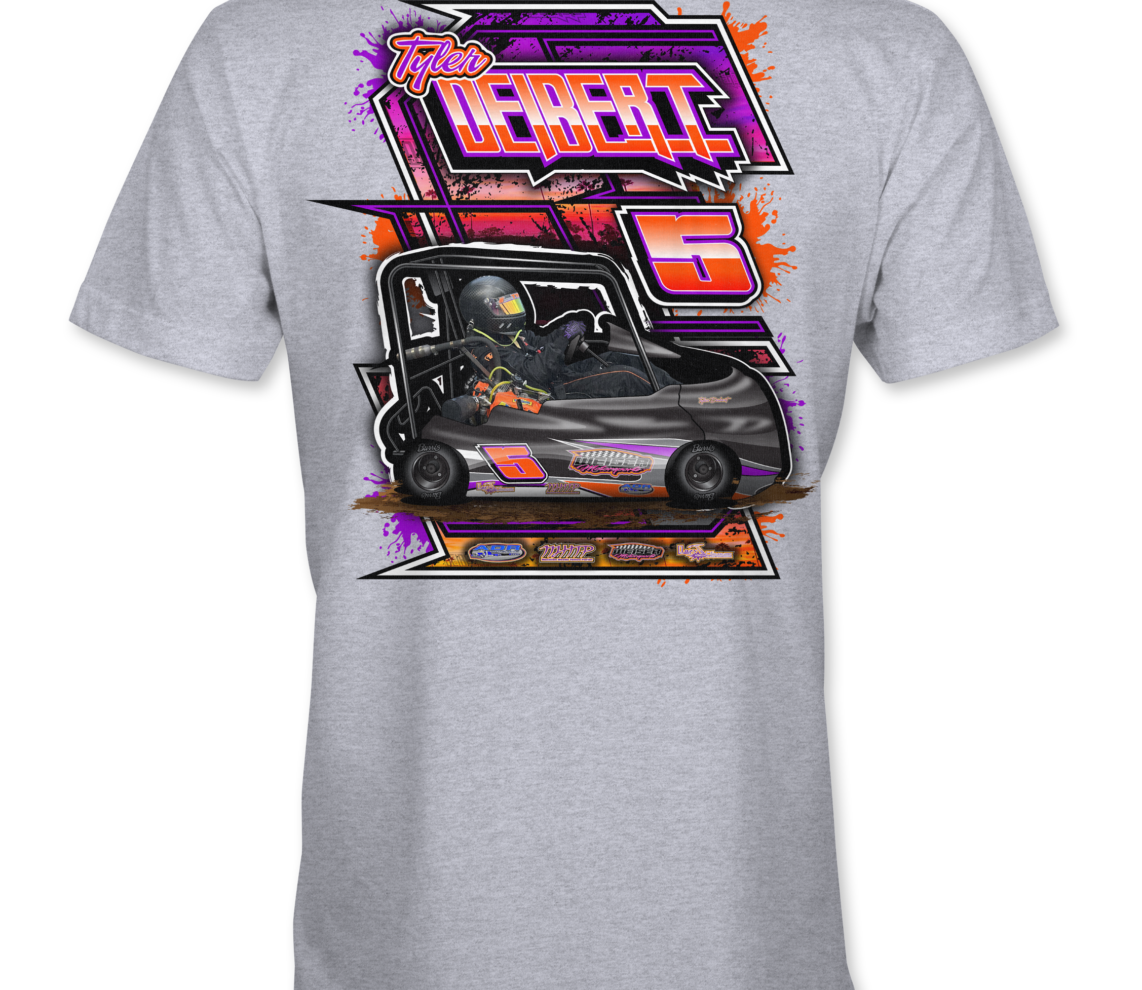 Support Deibert Racing 2025 with their custom apparel!  Available in Black, Sports Gray and White. Graphics are direct to garment printed with a left chest image and a full back image.