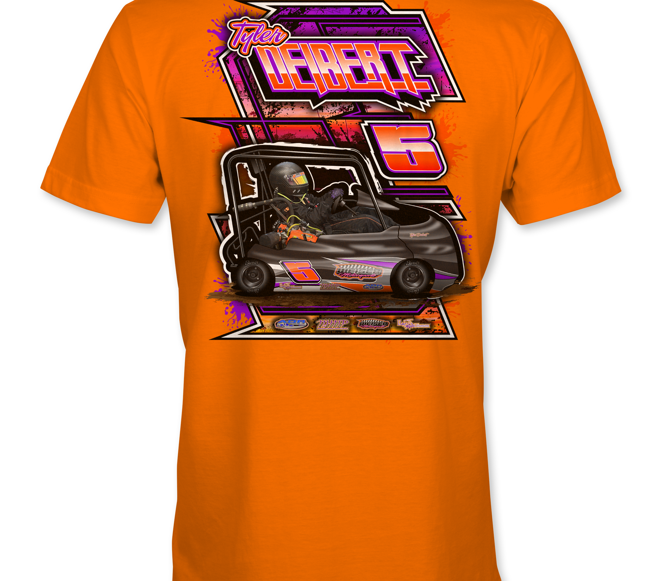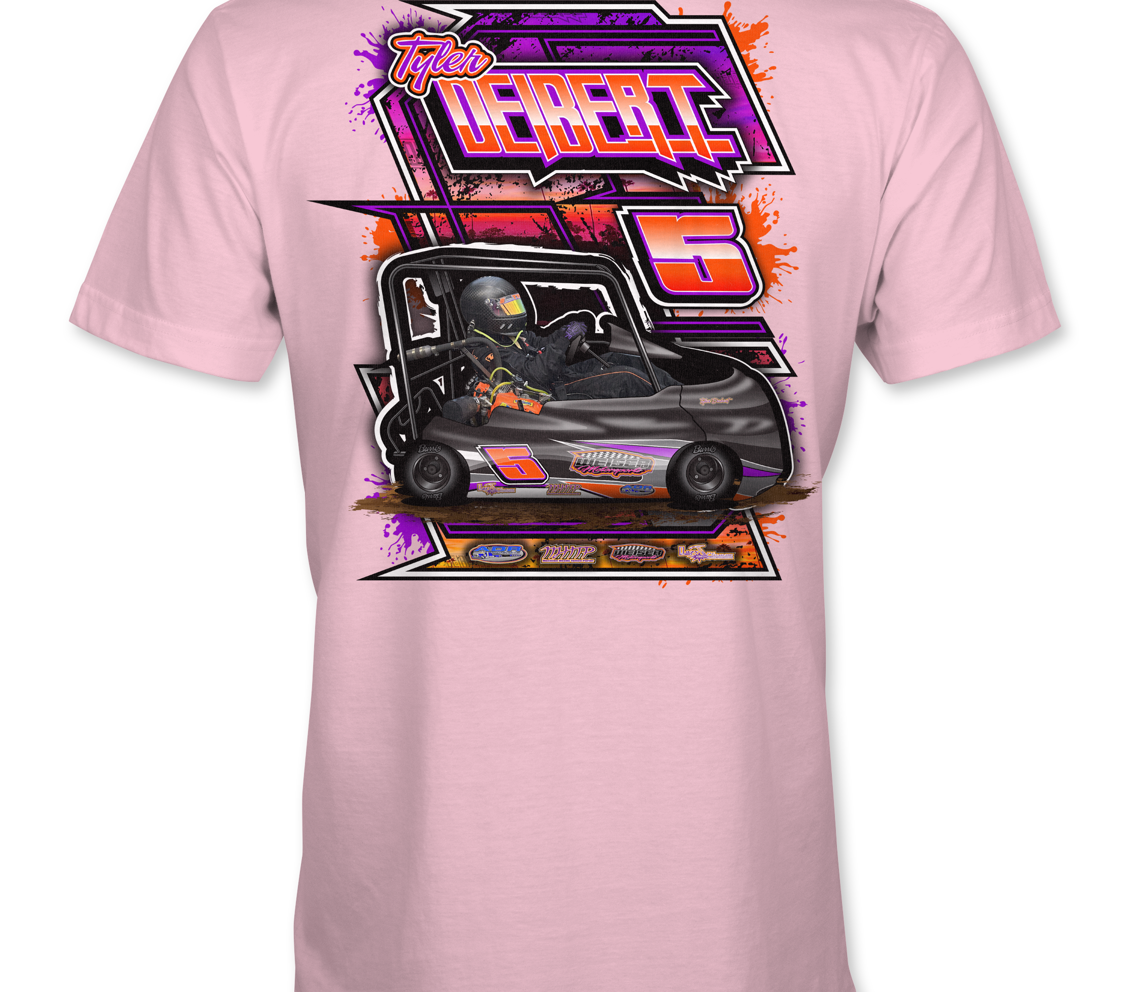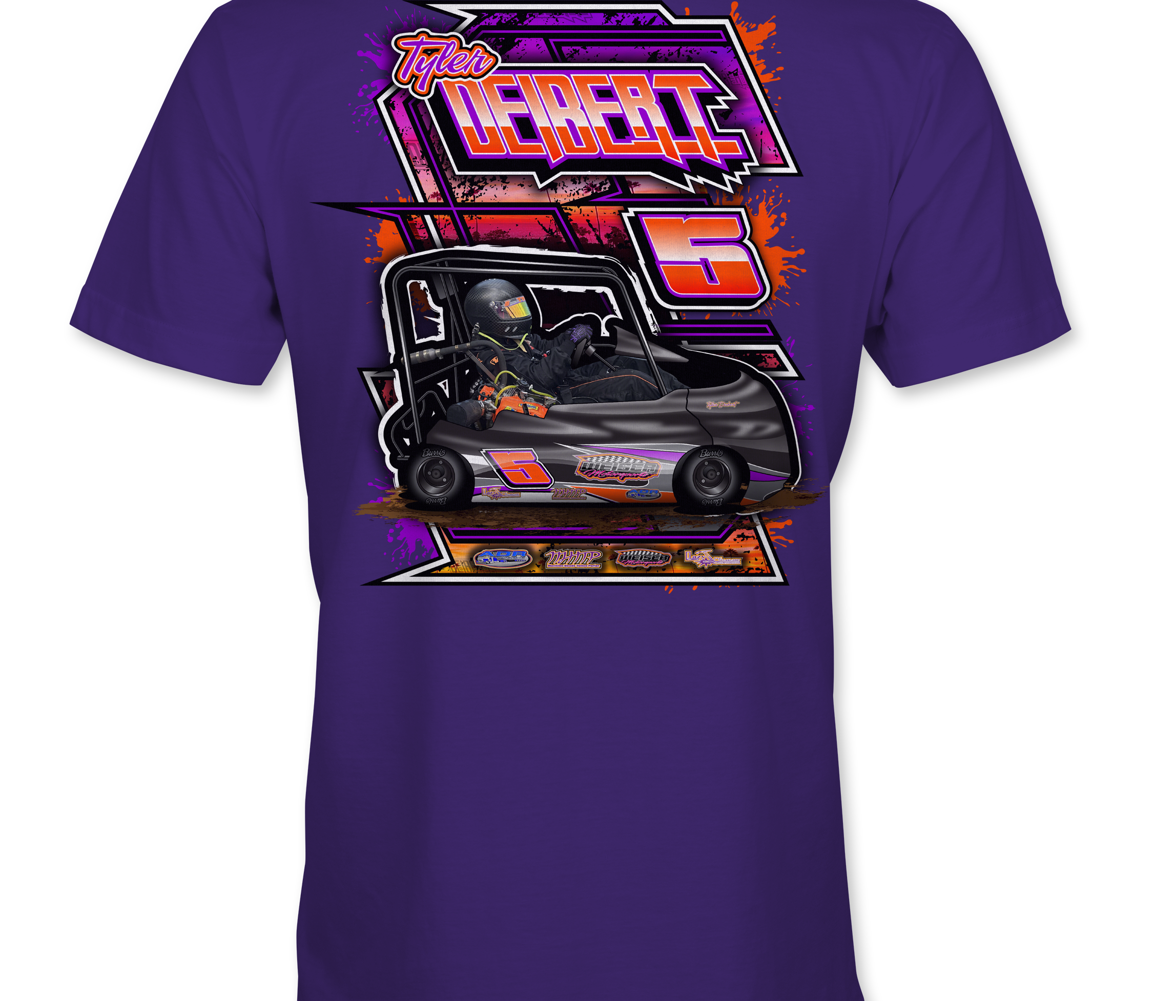 Support Deibert Racing 2025 with their custom apparel!  Available in Black, Sports Gray and White. Graphics are direct to garment printed with a left chest image and a full back image.