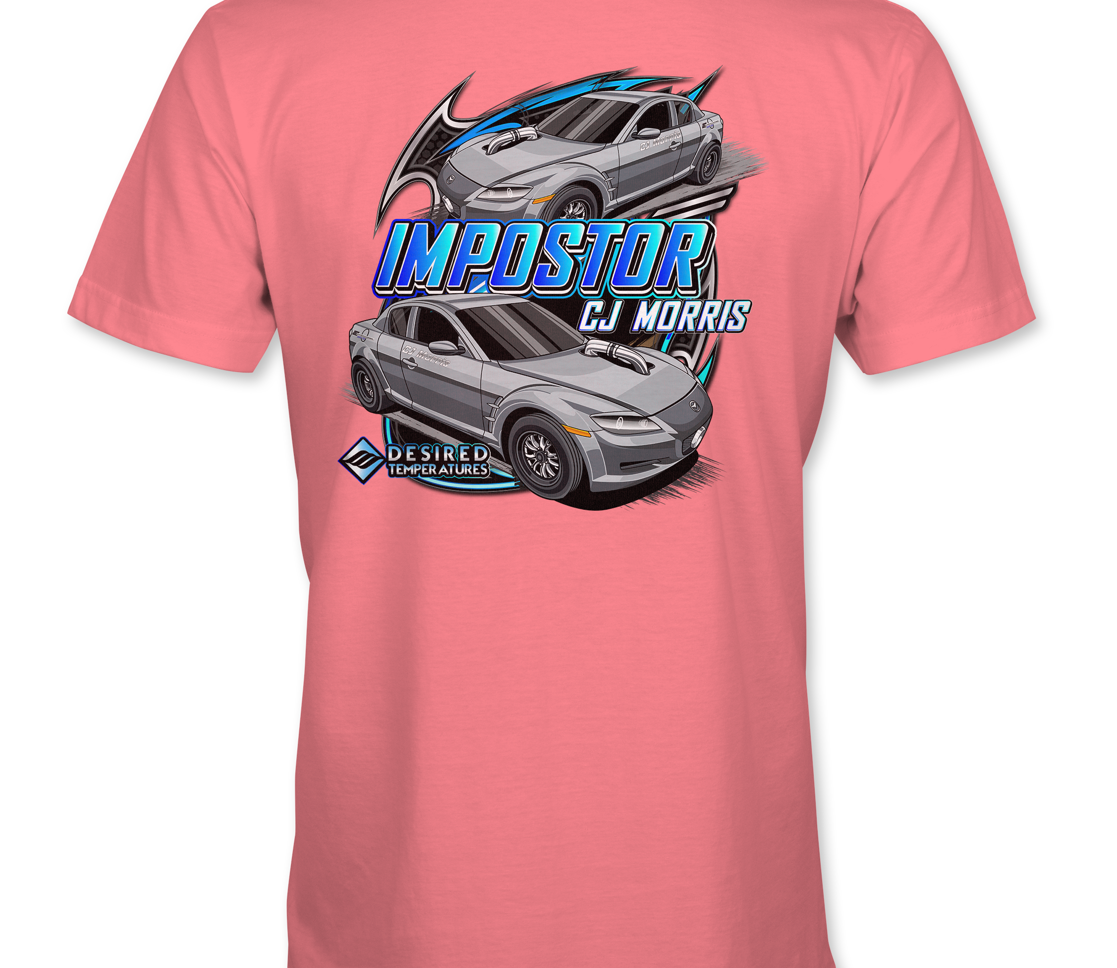 Support Desired Temperatures and their team with their custom apparel! Available in Black, White, Coral and Tropical Blue. Graphics are direct to garment printed with a left chest image and a full back image.