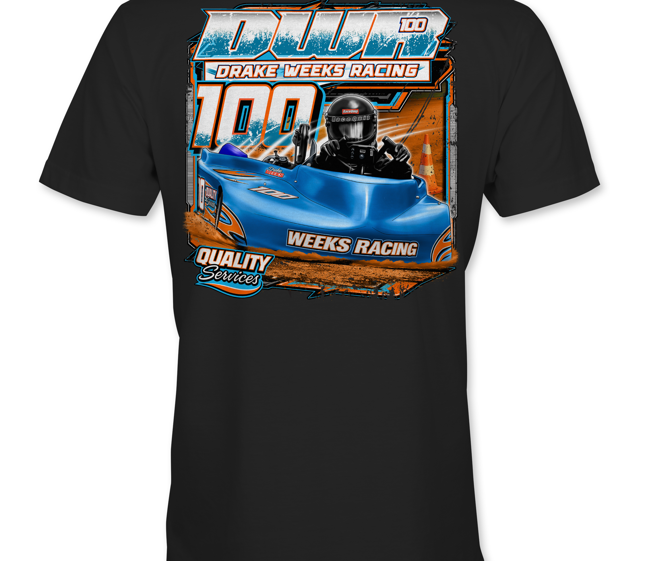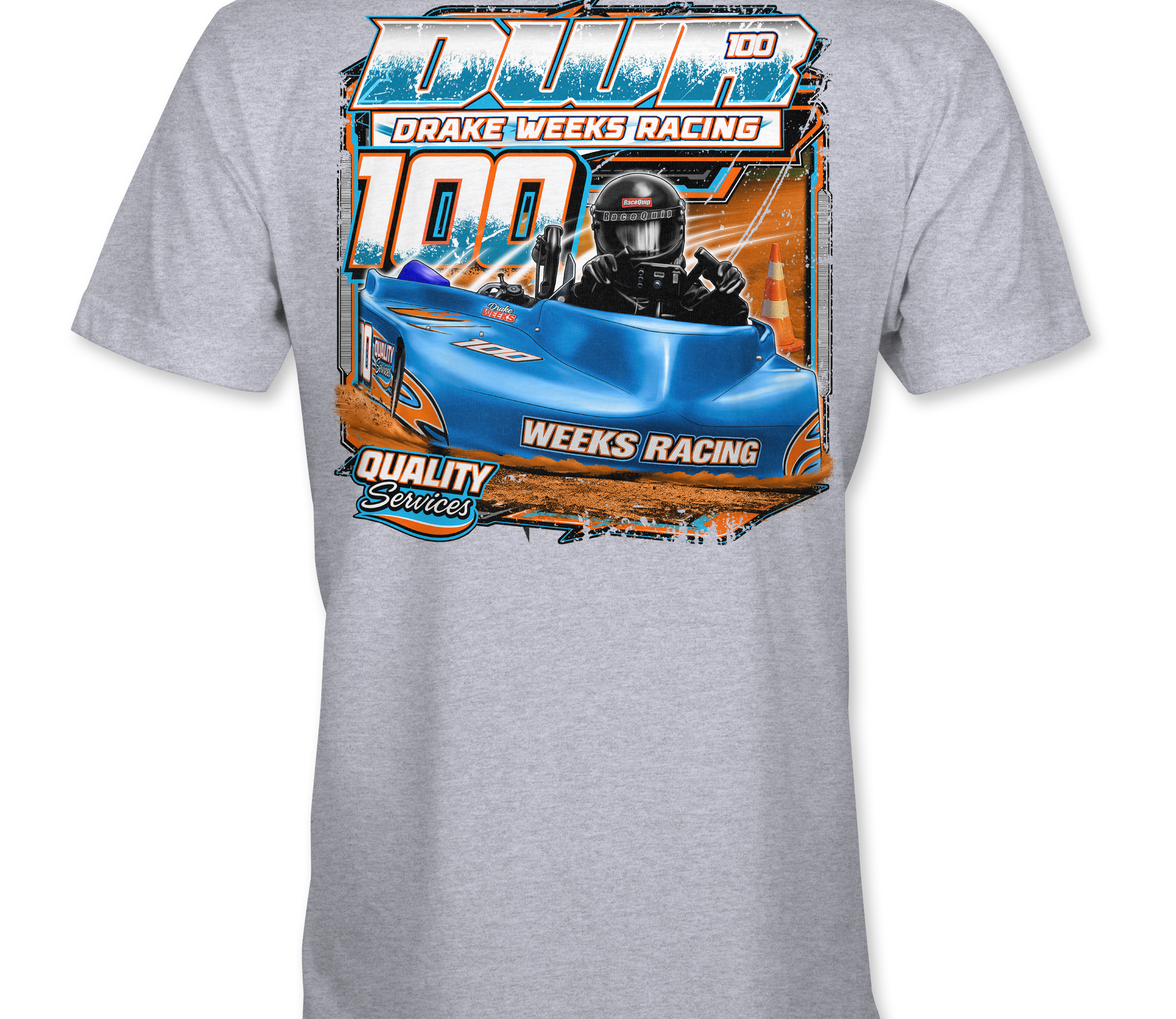 Support Drake Weeks with their custom apparel! Available in Black, Sports Gray and White. Graphics are direct to garment printed with a left chest image and a full back image.