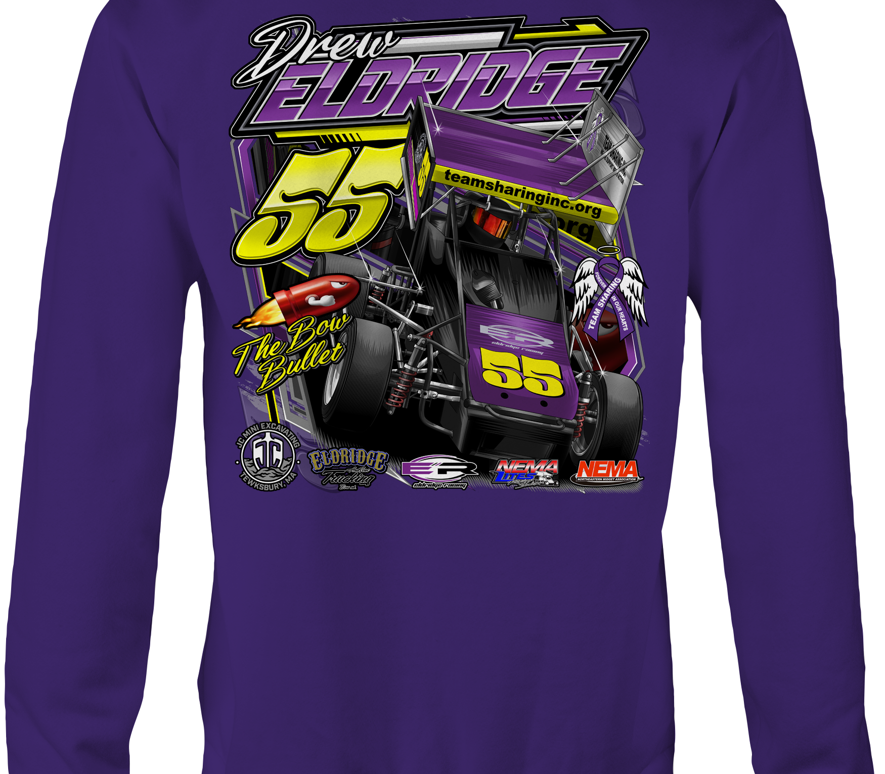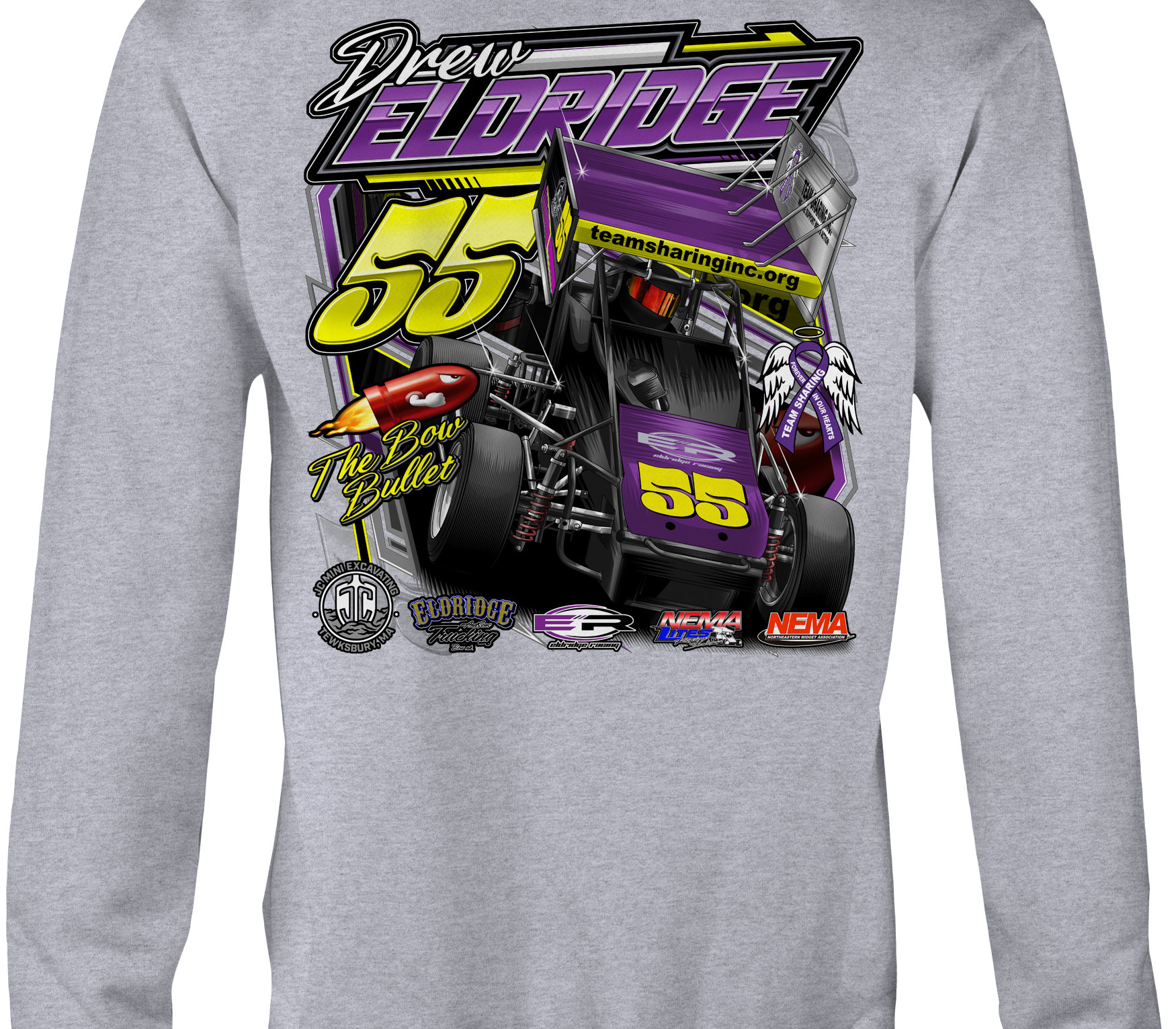 Drew Eldridge Official driver merchandise printed to order on premium apparel. Designed for race fans and supporters