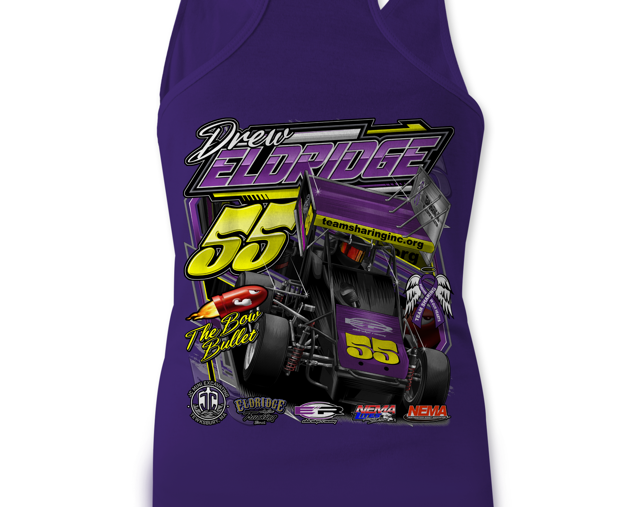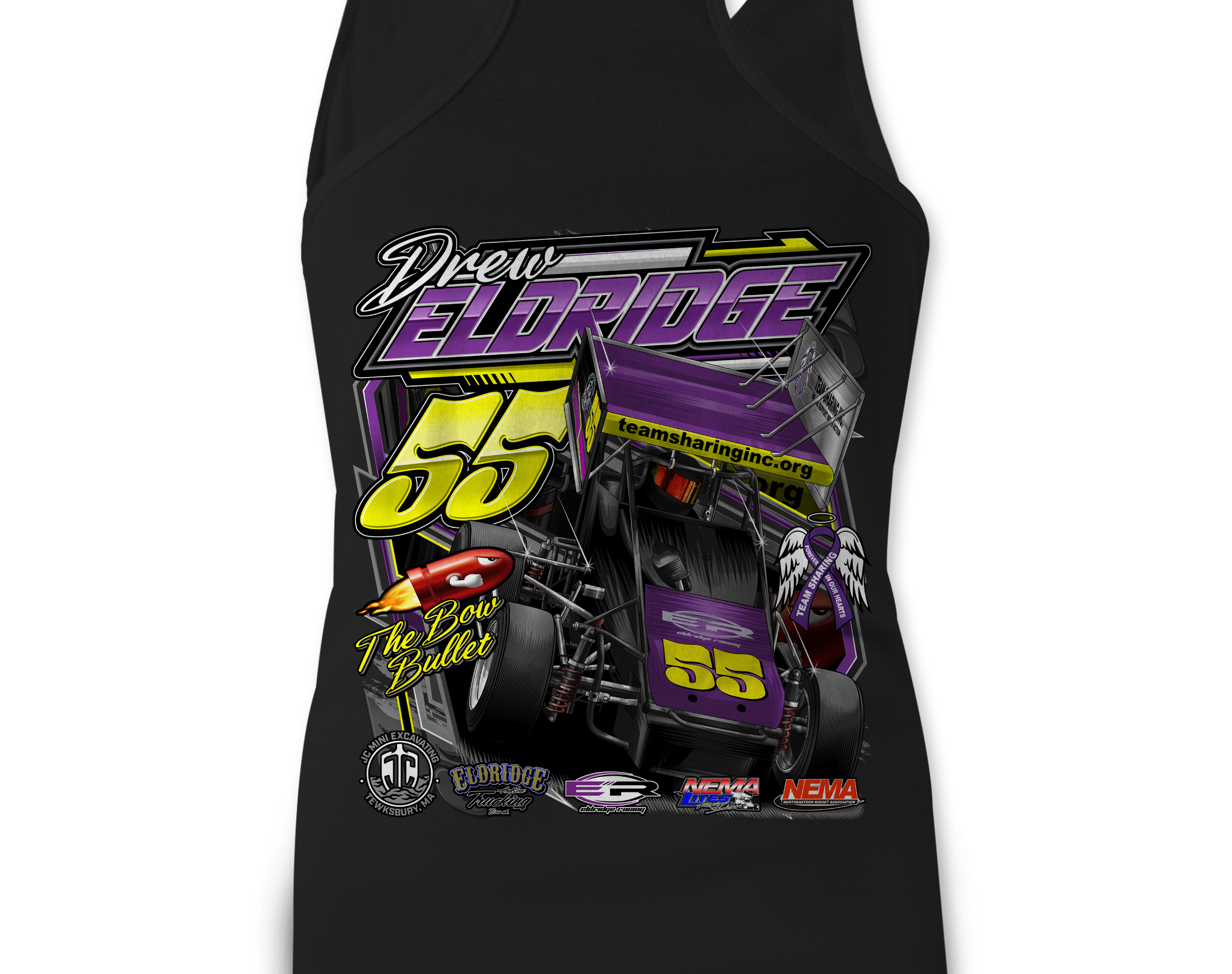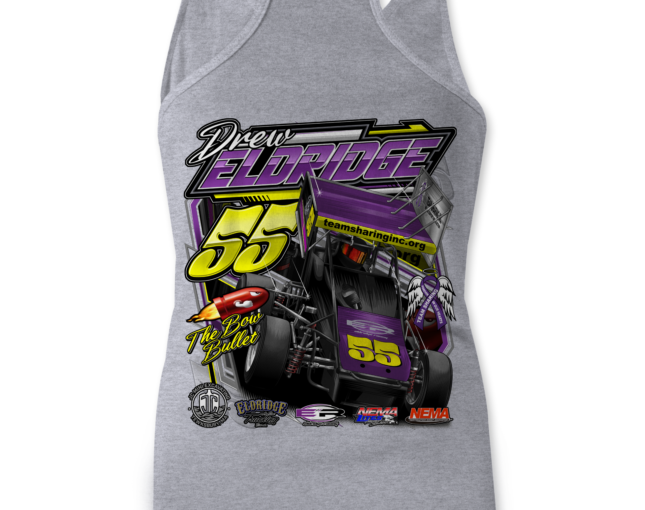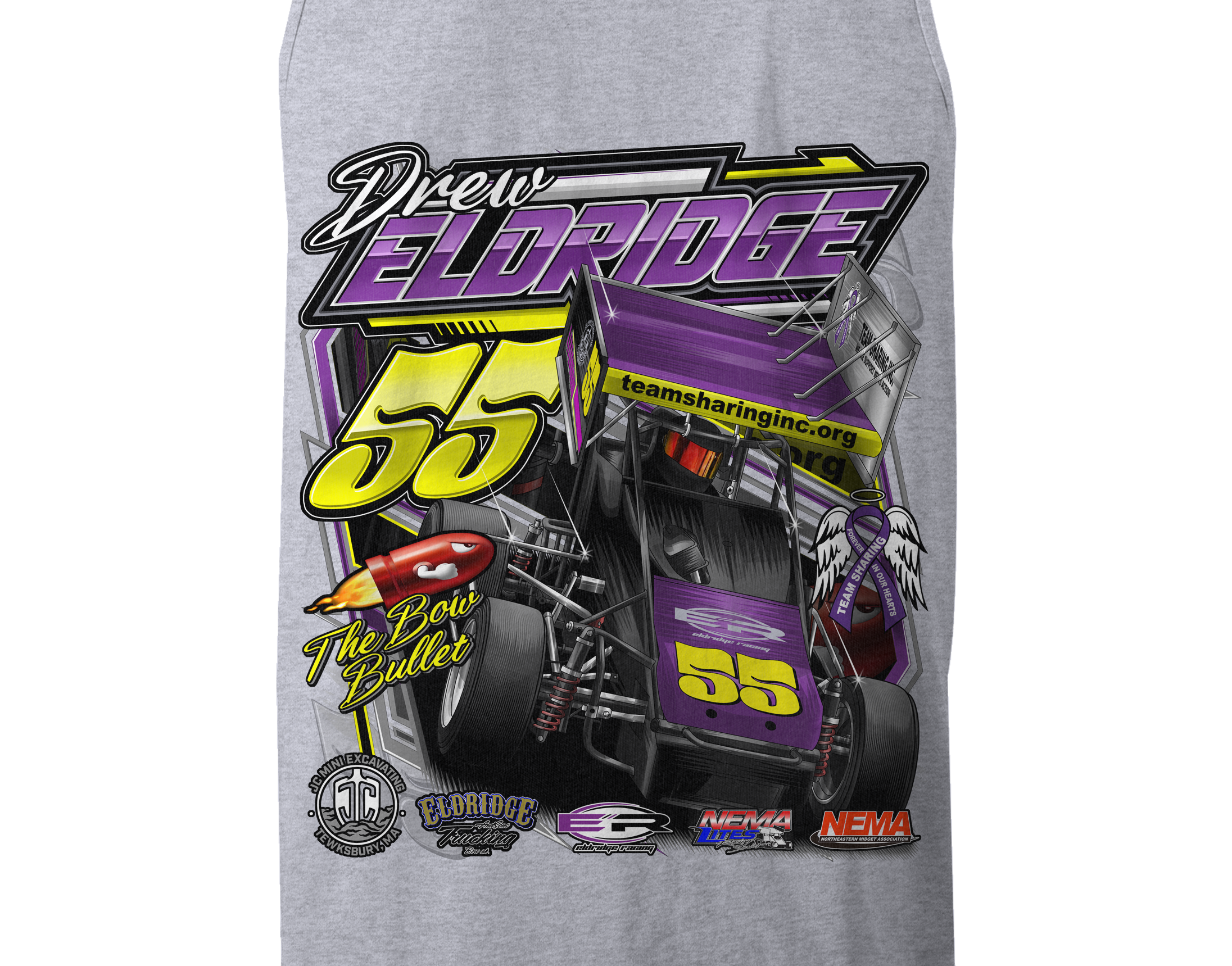 Support Drew Eldridge 2025 with their custom apparel! Available in Black, Sports Gray, White, and purple. Graphics are direct to garment printed with a left chest image and a full back image.
