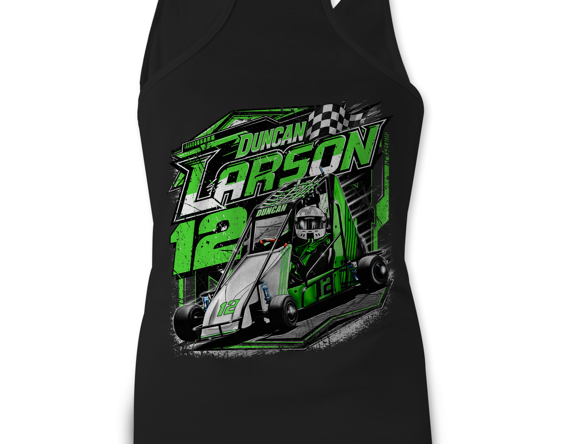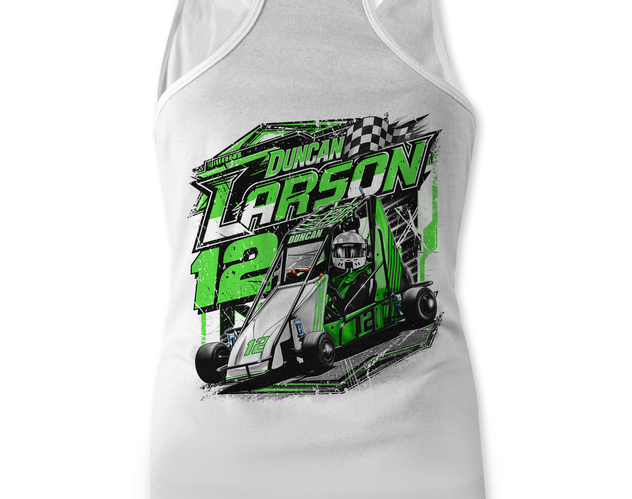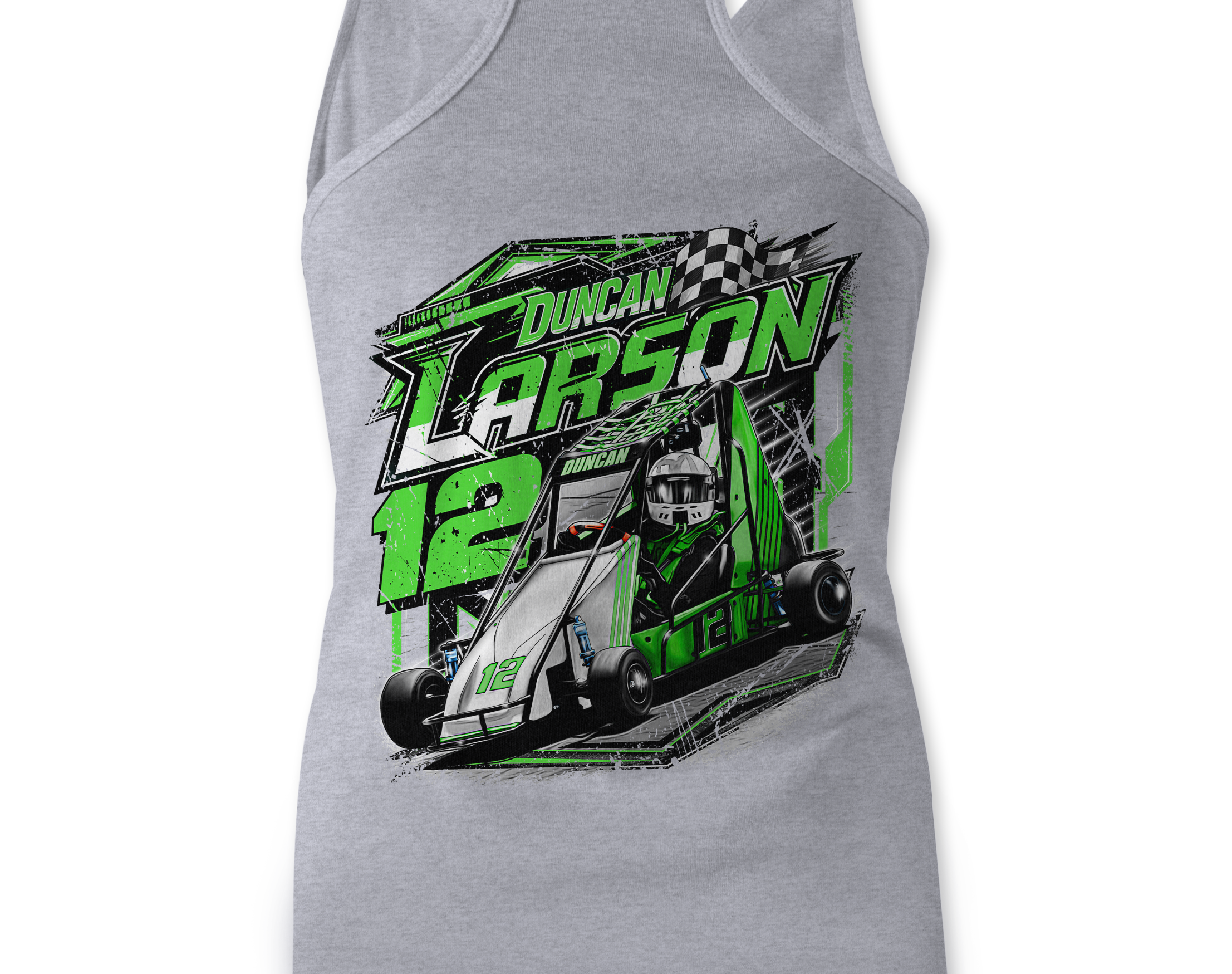 Support Duncan Larson with their custom apparel! Available in Black, Sports Gray and White. Graphics are direct to garment printed with a left chest image and a full back image.