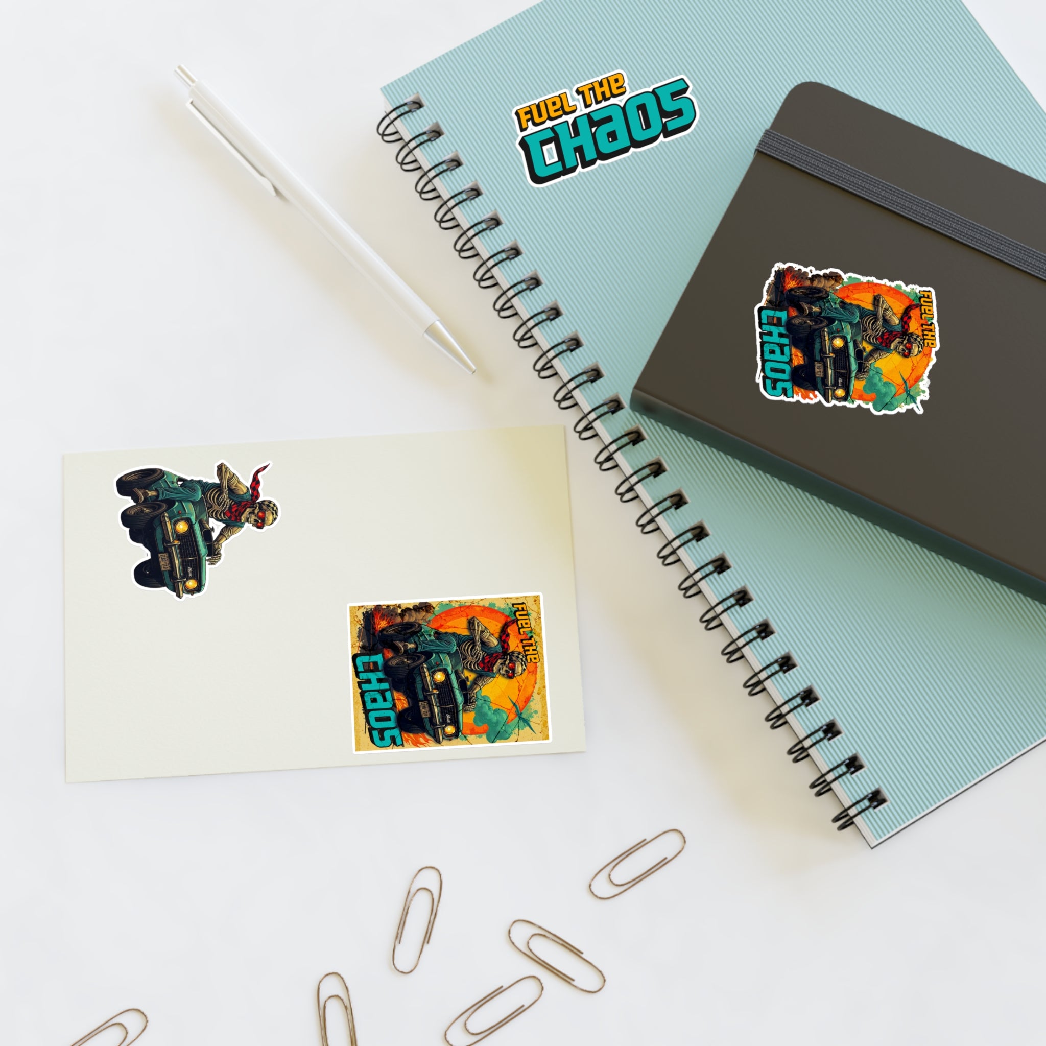 This exclusive sticker sheet features four Fuel the Chaos designs—including full art, character close-up, logo, and burn-it-down chaos. Printed on high-quality vinyl with your choice of white, transparent, or holographic finish.