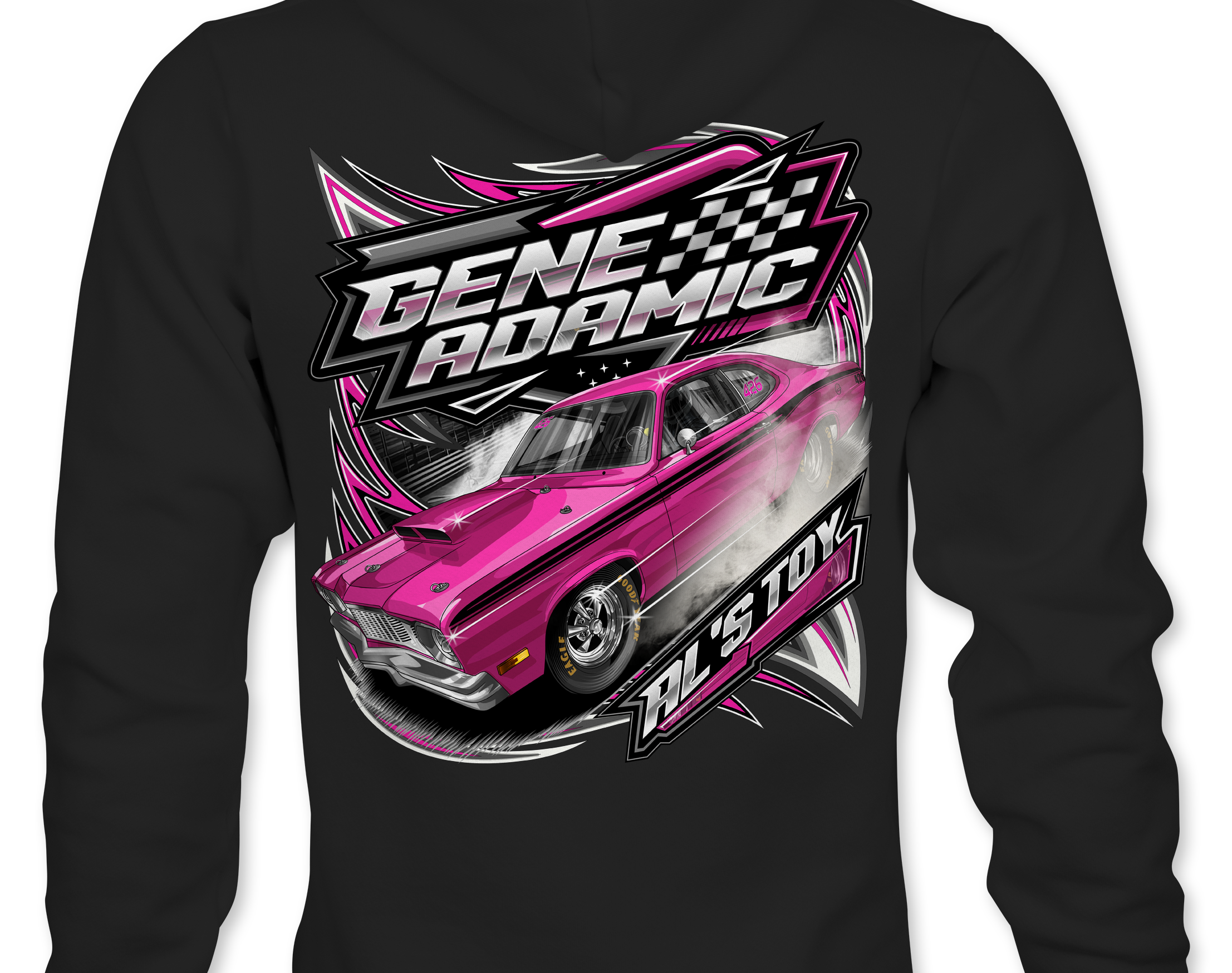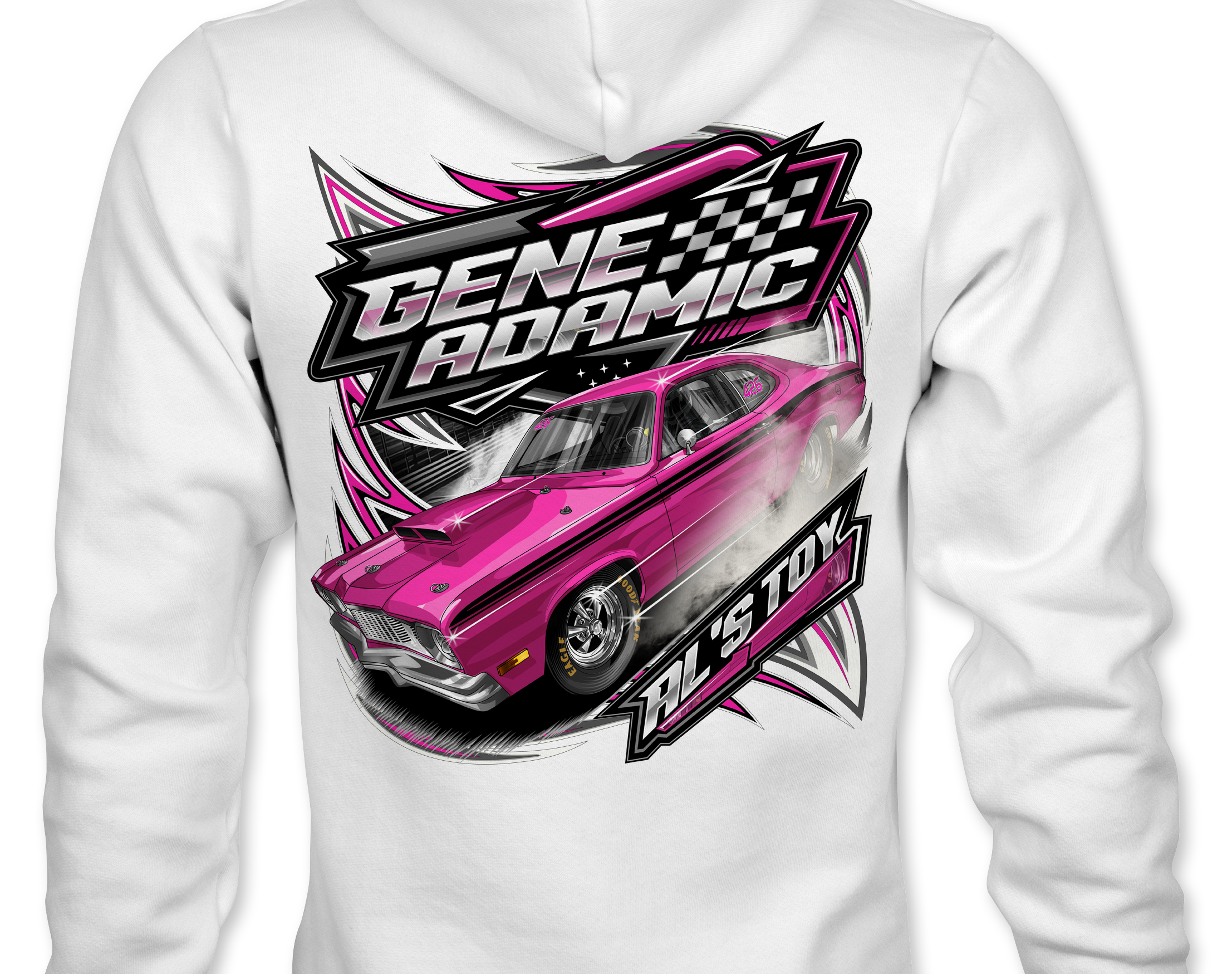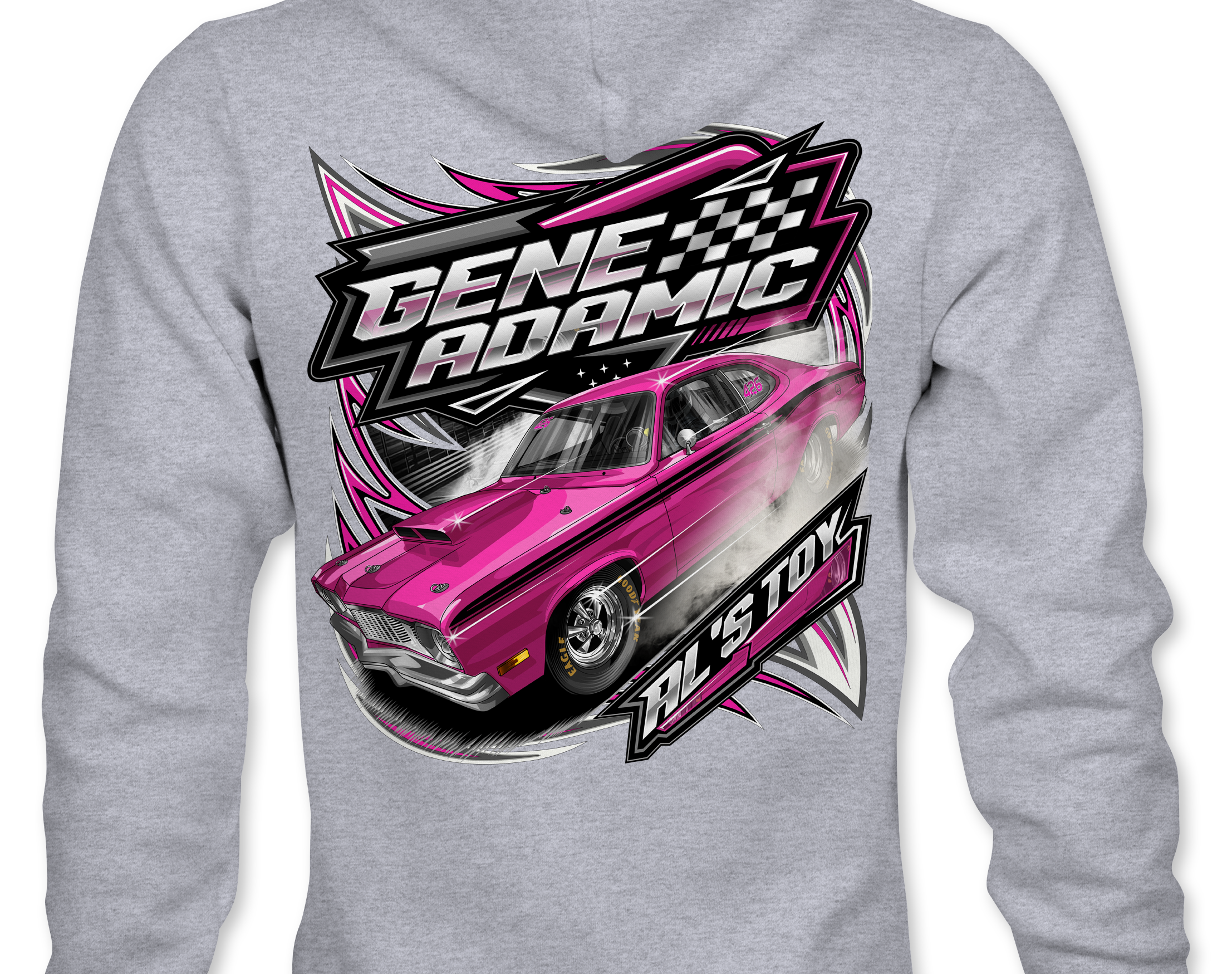 Support Gene Adamic 2025 with their custom apparel! Available in Black, Sports Gray and White. Graphics are direct to garment printed with a left chest image and a full back image.