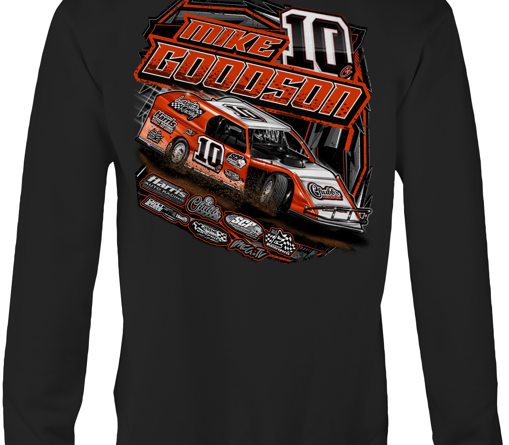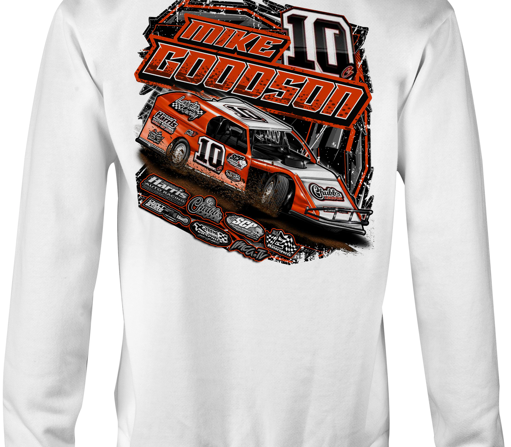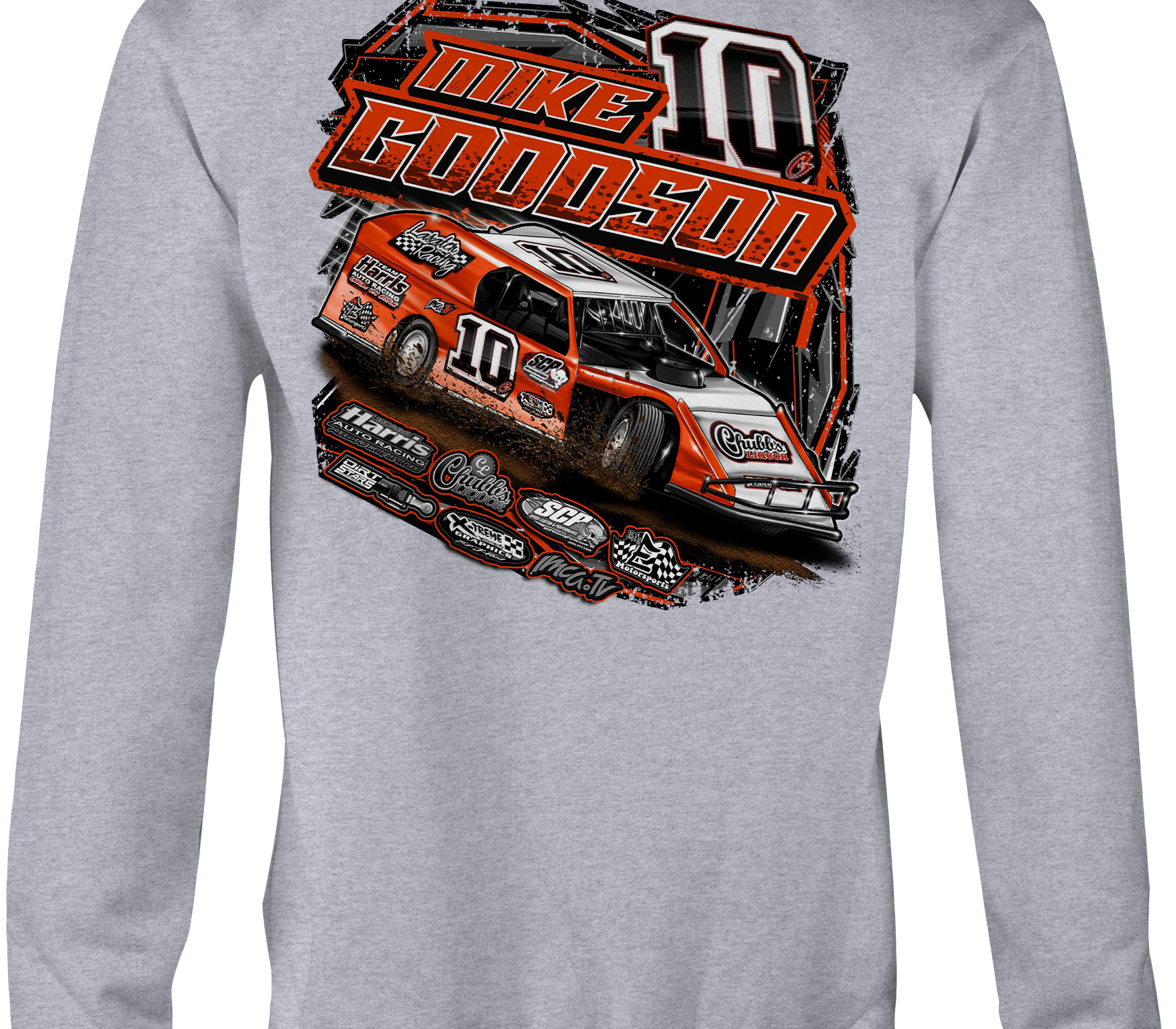 Support Mike Goodson with their custom apparel! Available in Black, Sports Gray and White. Graphics are direct to garment printed with a left chest image and a full back image.