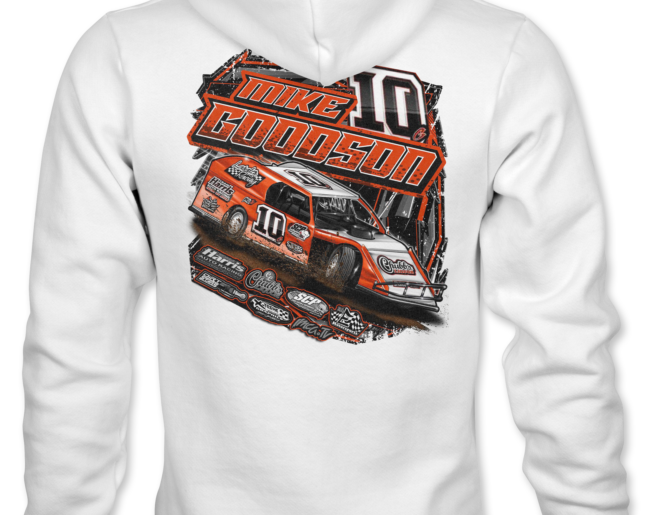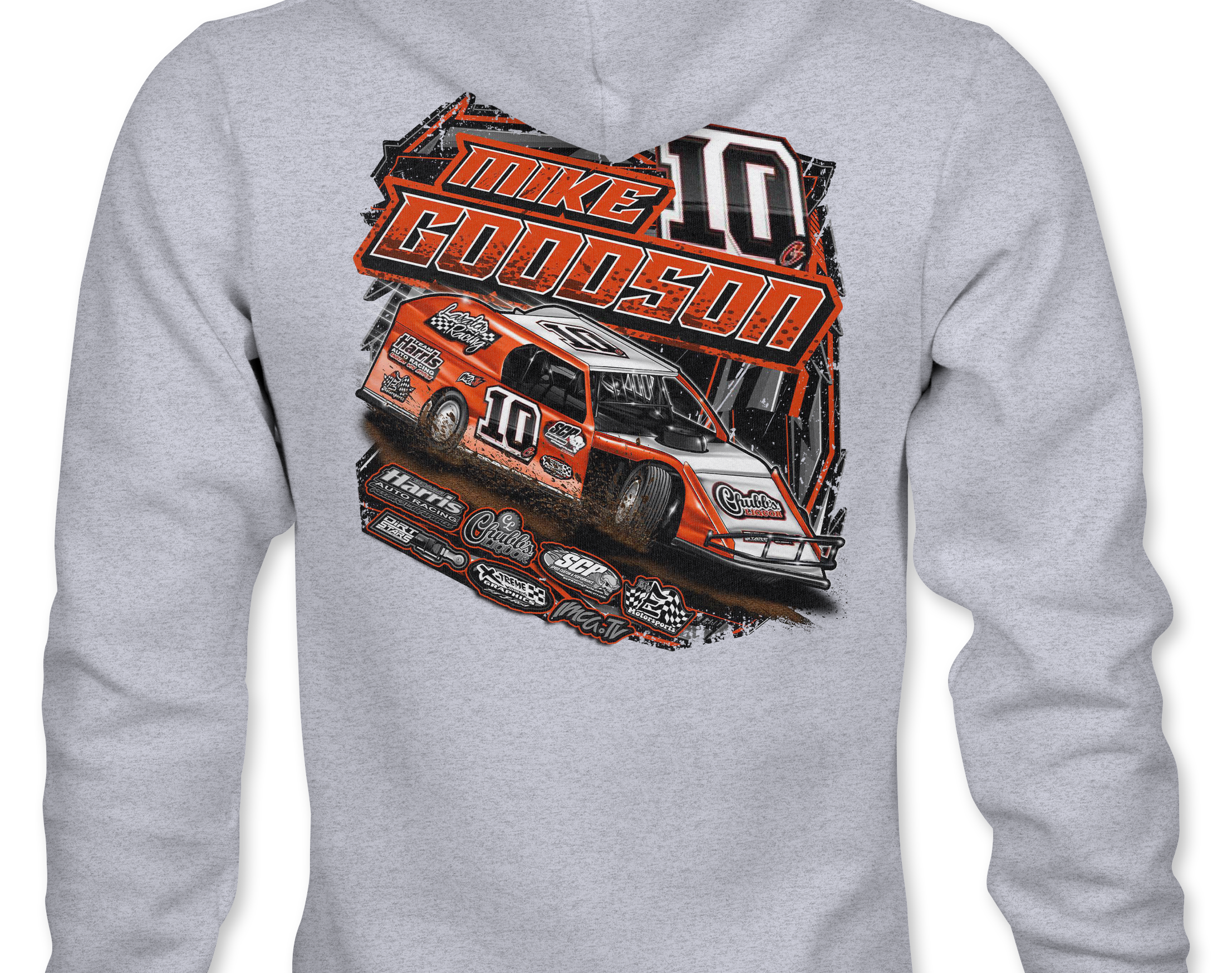 Support Mike Goodson with their custom apparel! Available in Black, Sports Gray and White. Graphics are direct to garment printed with a left chest image and a full back image.