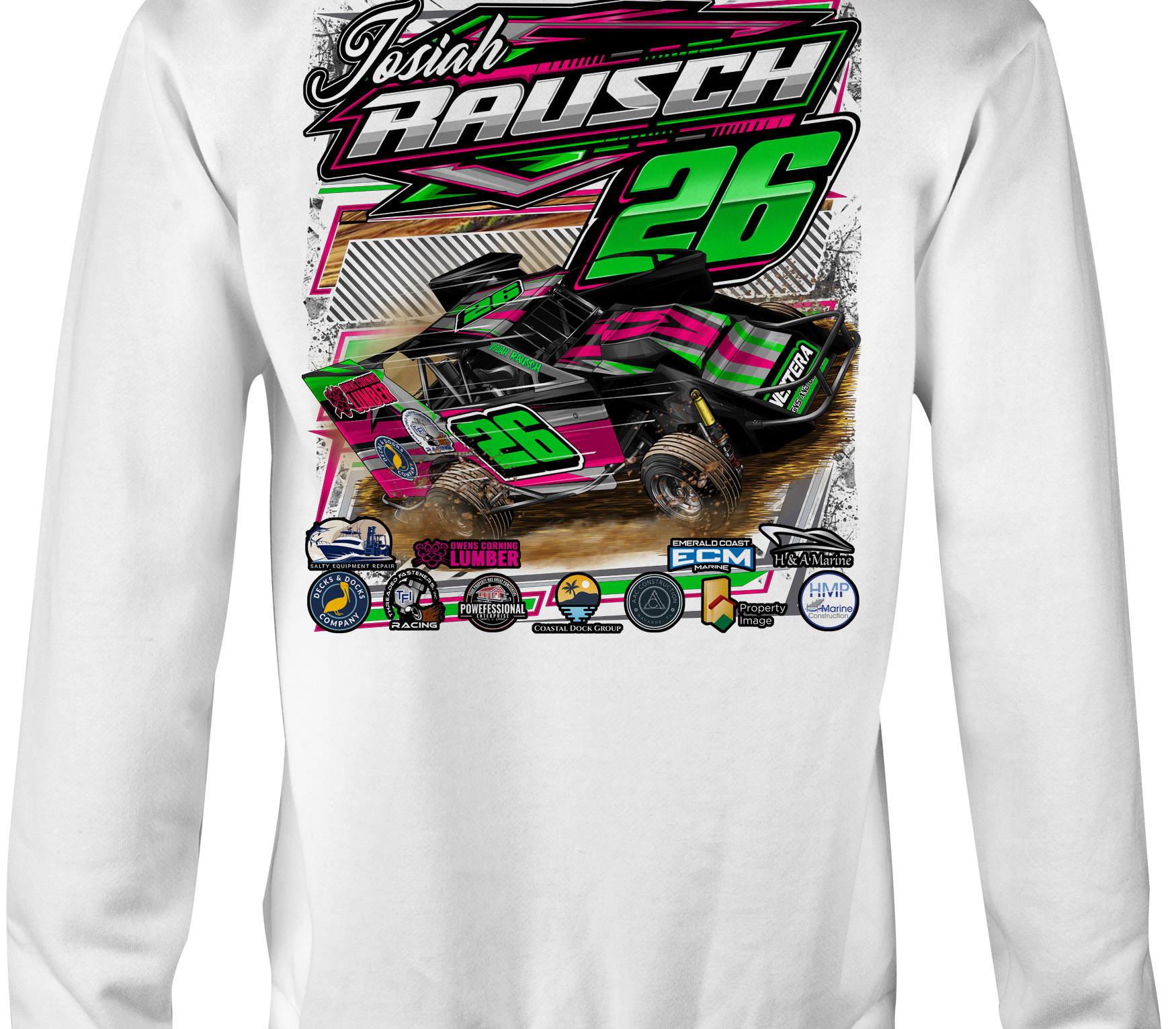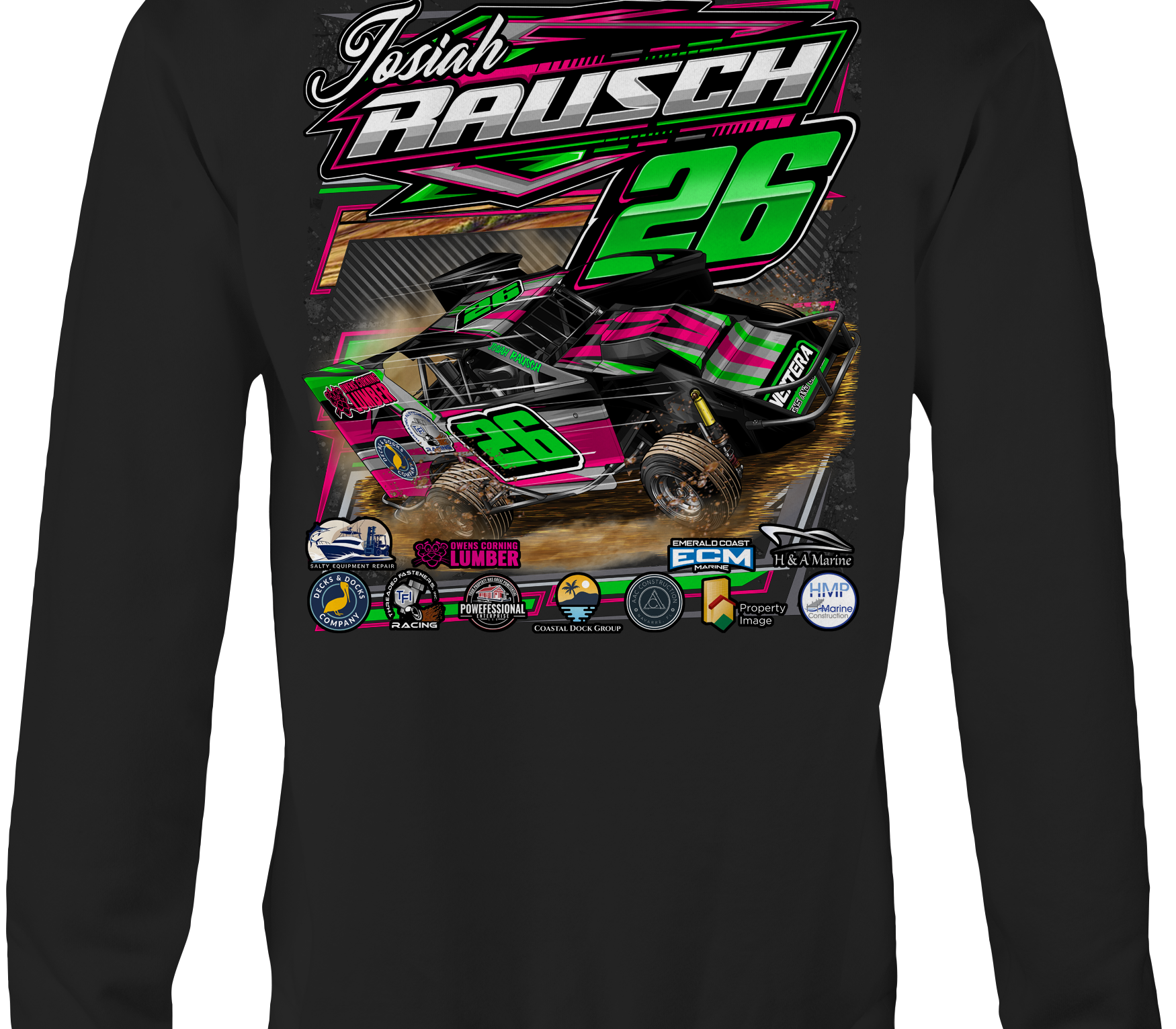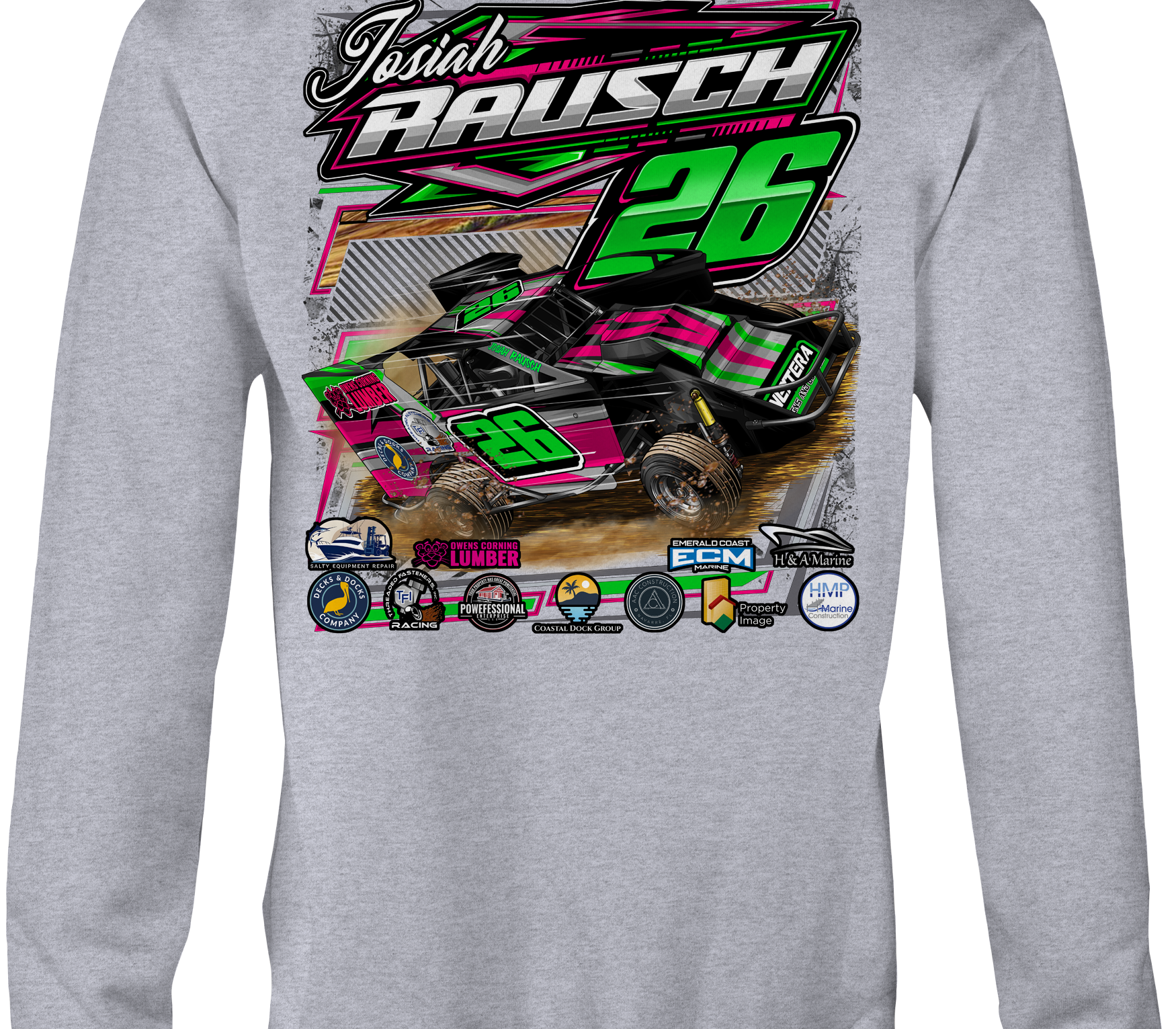 Support Josiah Rausch 2025 with their custom apparel! Available in Black, Sports Gray and White. Graphics are direct to garment printed with a left chest image and a full back image.