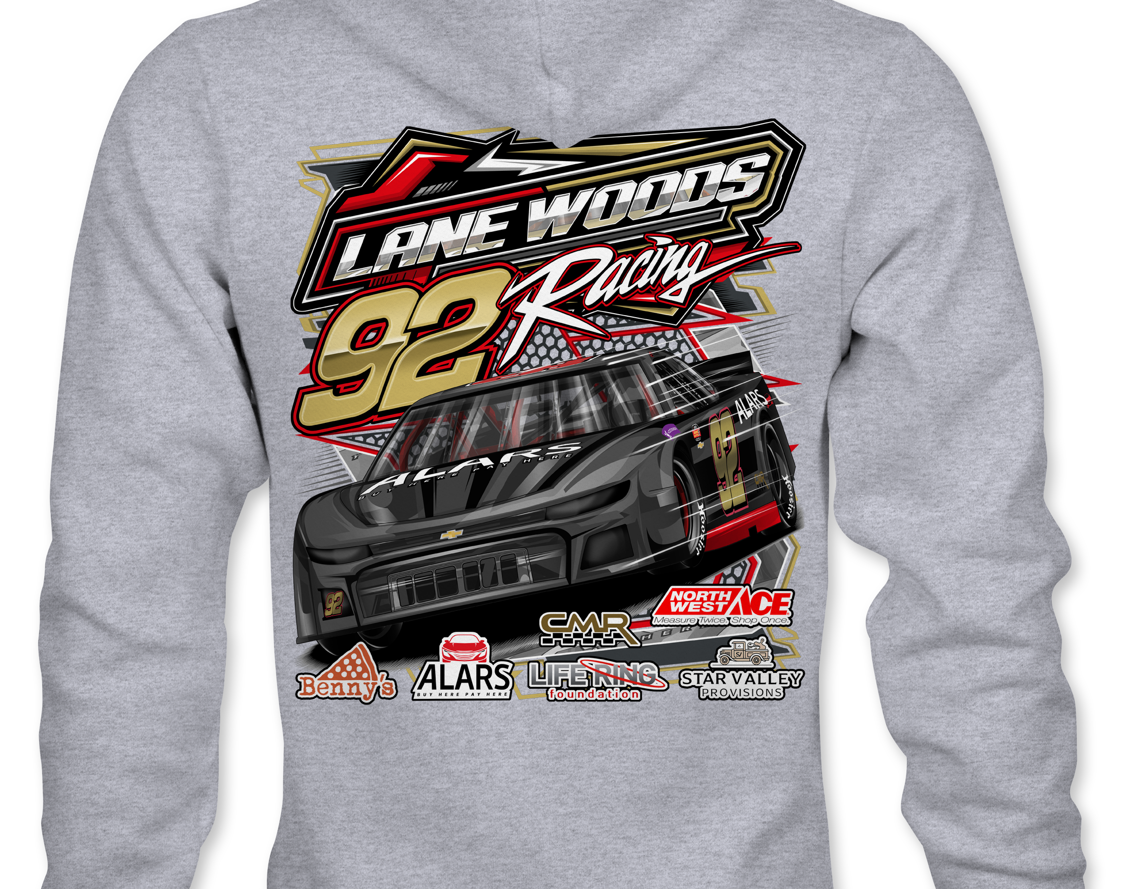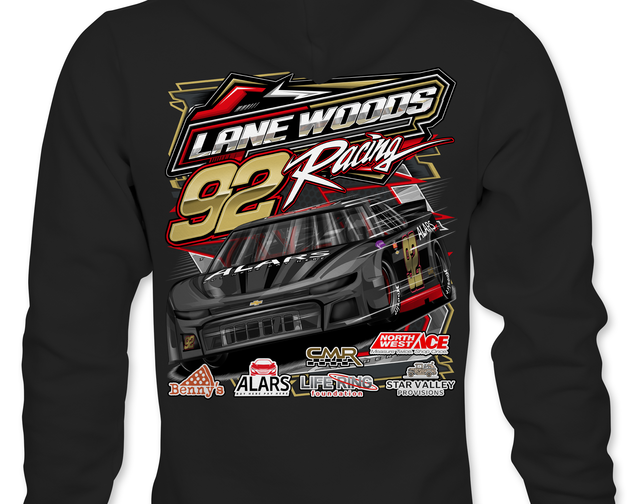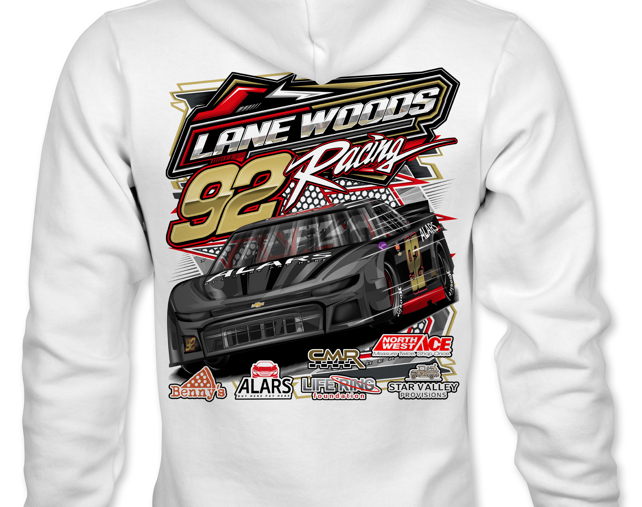 Lane Woods Official driver merchandise printed to order on premium apparel. Designed for race fans and supporters