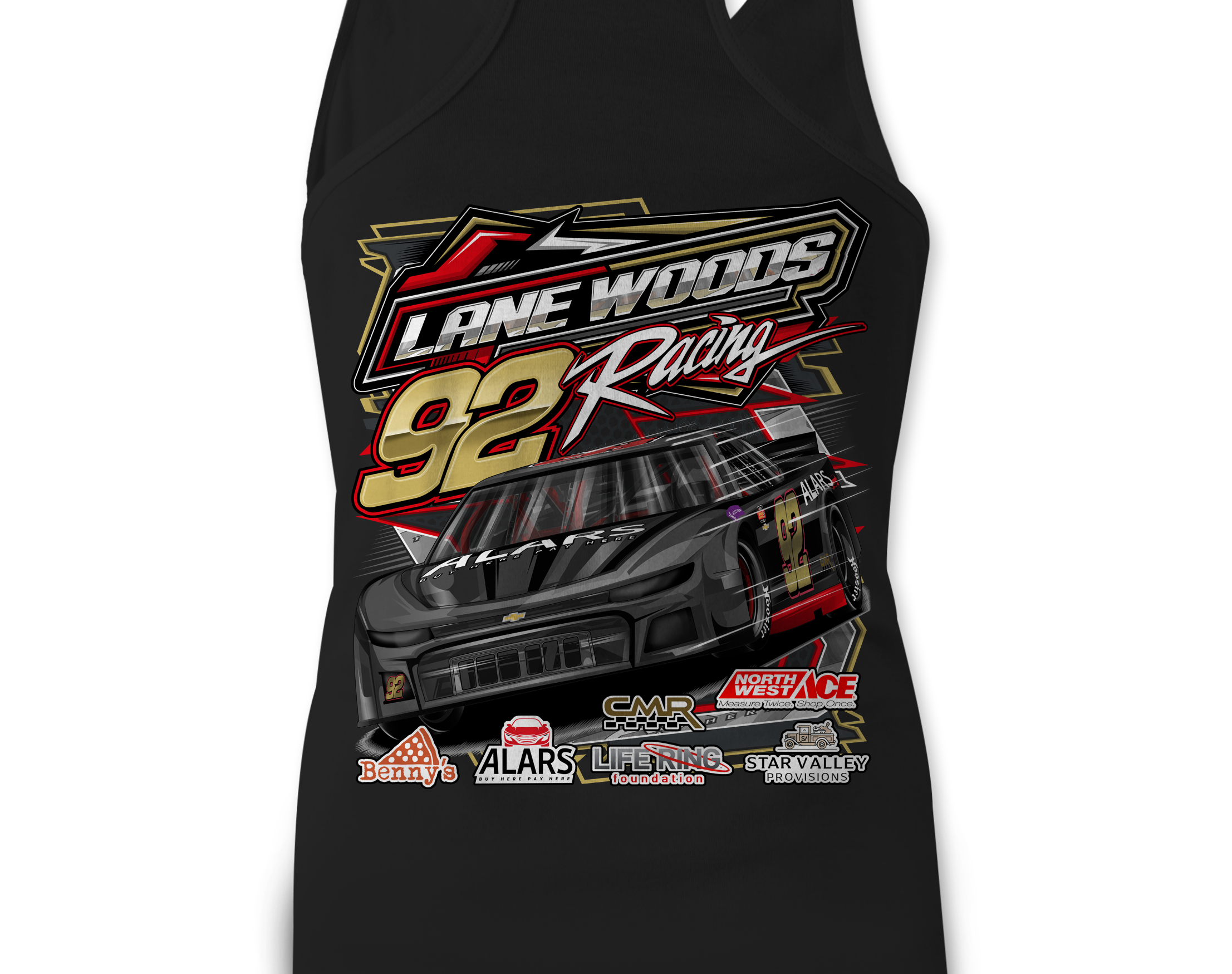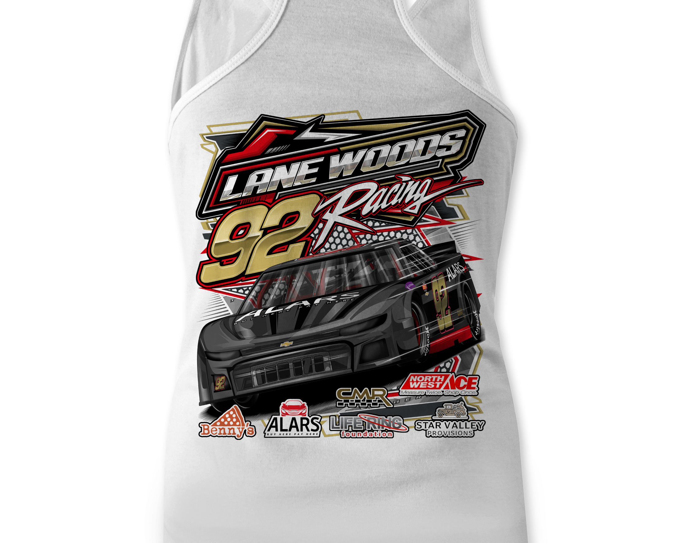 Lane Woods Official driver merchandise printed to order on premium apparel. Designed for race fans and supporters