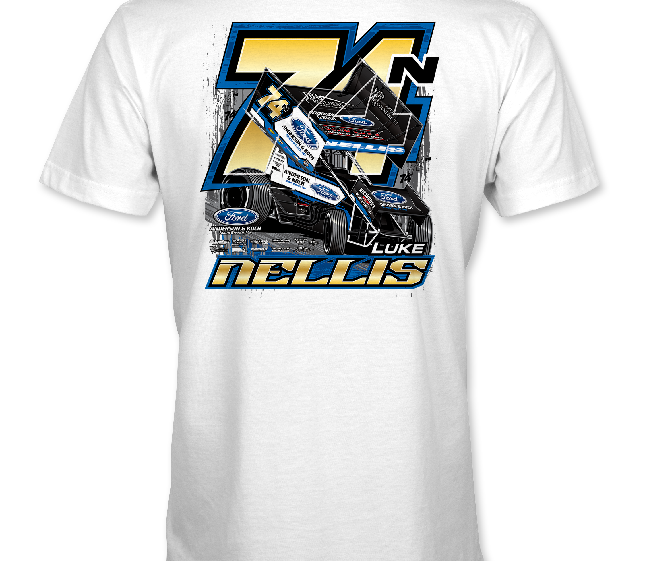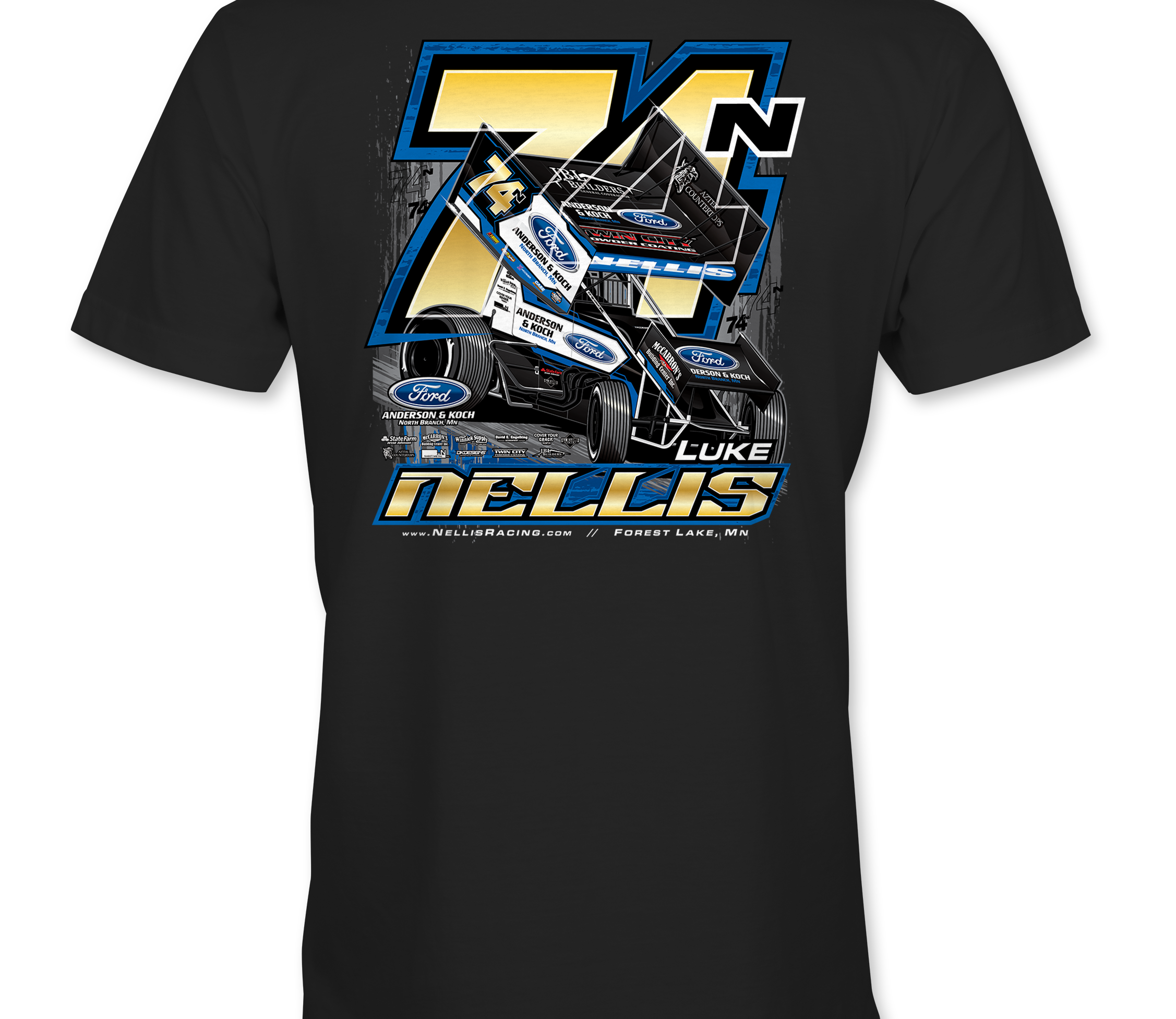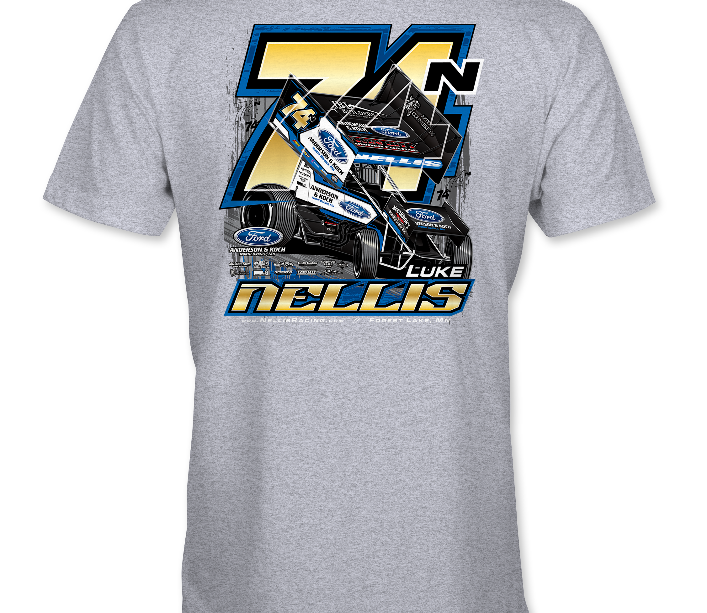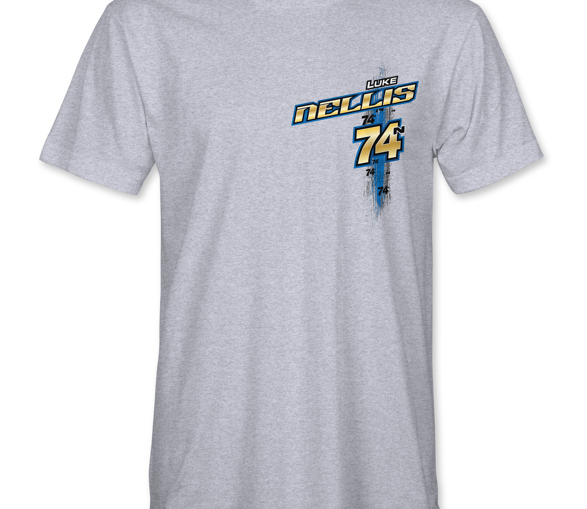 Support Luke Nellis 2025 with their custom apparel! Available in Black, White and Sport Gray. Graphics are direct to garment printed with a left chest image and a full back image.
