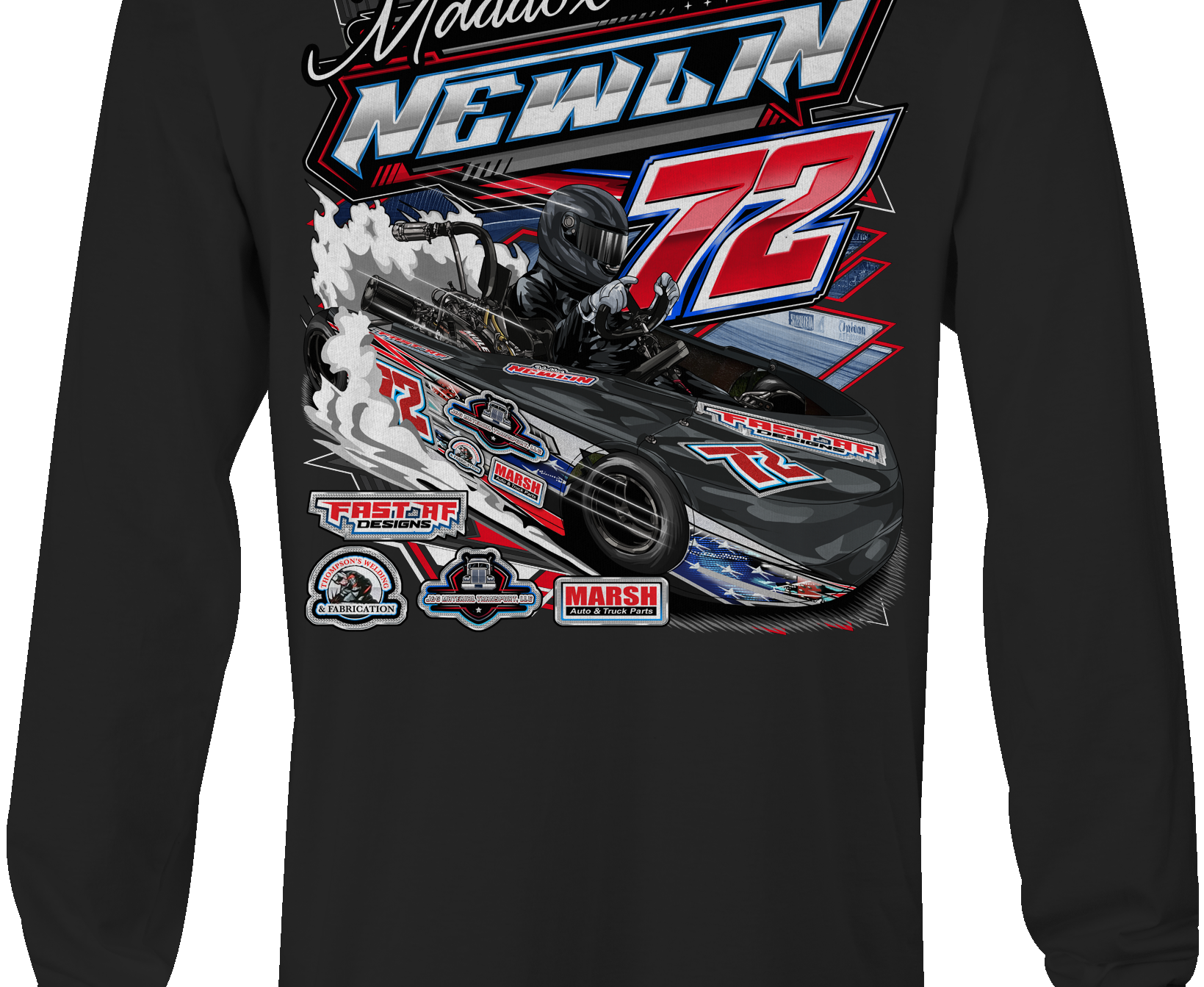 2025 Maddox Newlin Official driver merchandise printed to order on premium apparel. Designed for race fans and supporters