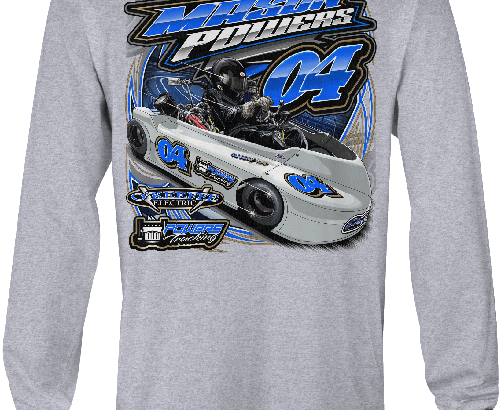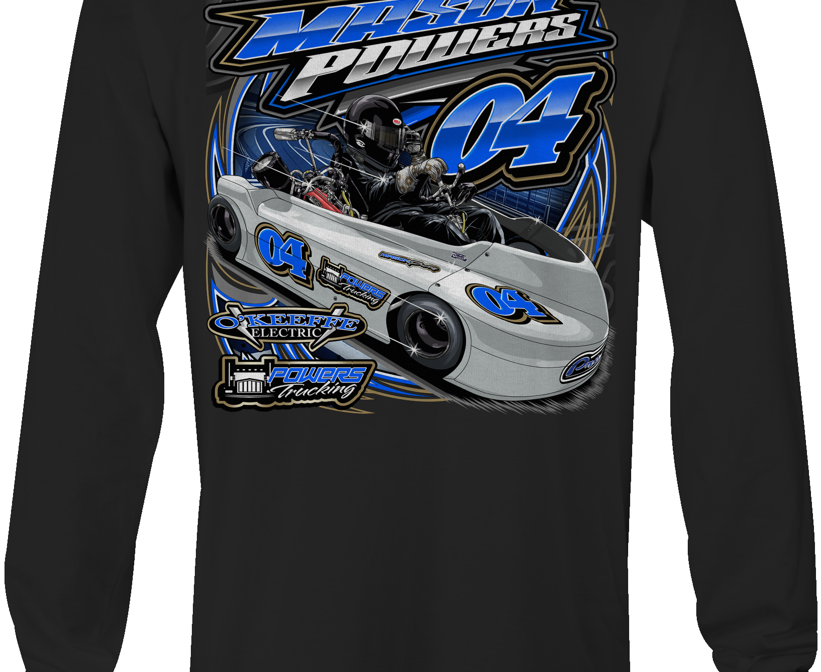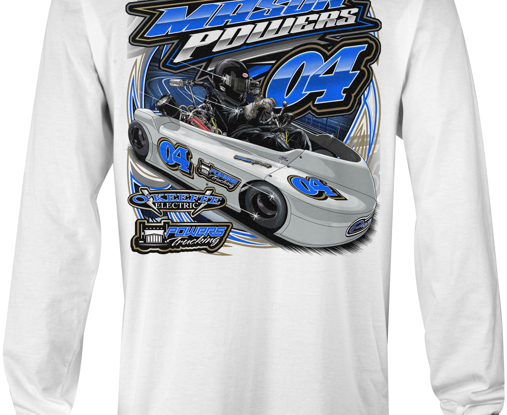 2025 Mason Powers Official driver merchandise printed to order on premium apparel. Designed for race fans and supporters