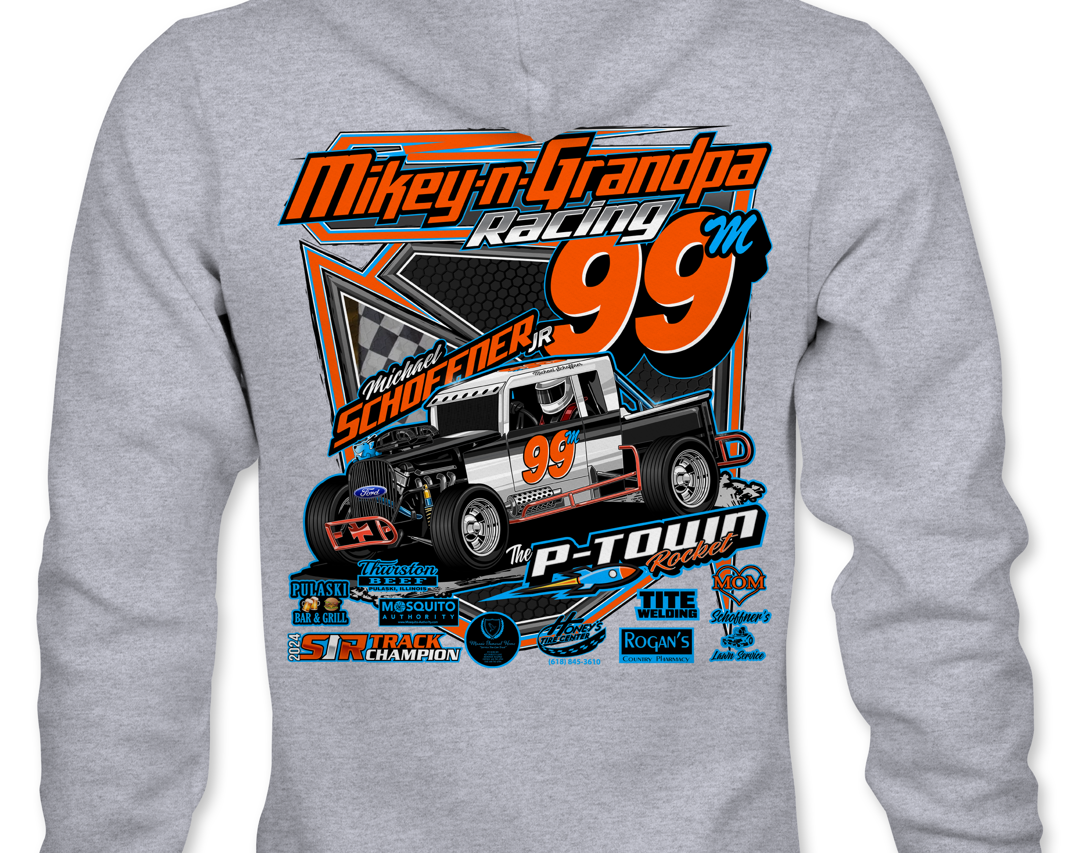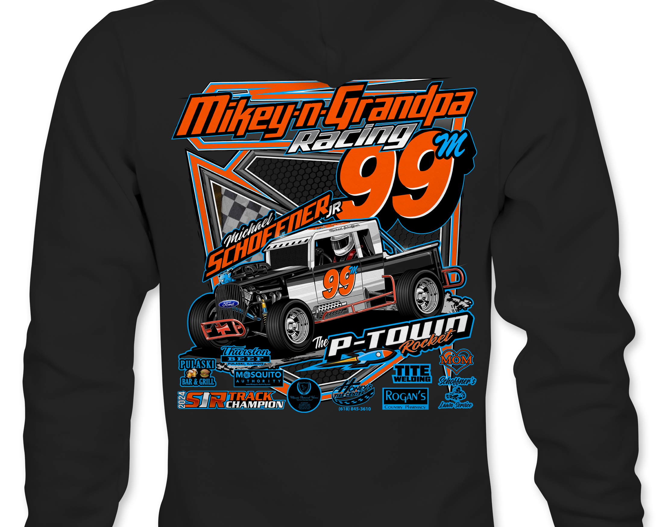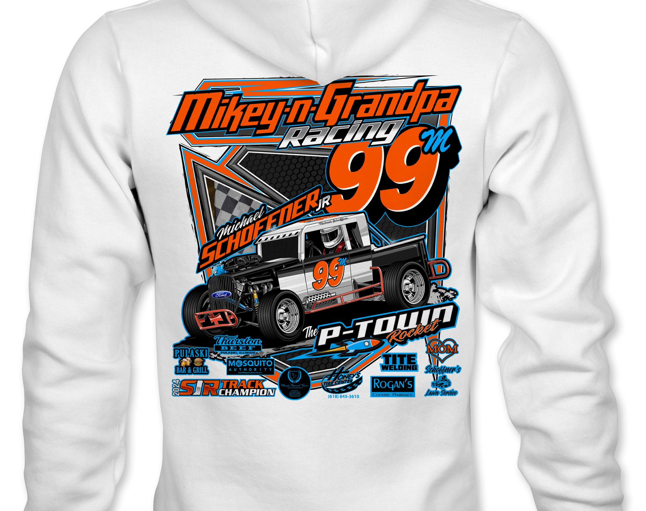 Support Michael Schoffner Jr. 2025 with their custom apparel! Available in Black, Sports Gray and White. Graphics are direct to garment printed with a left chest image and a full back image.