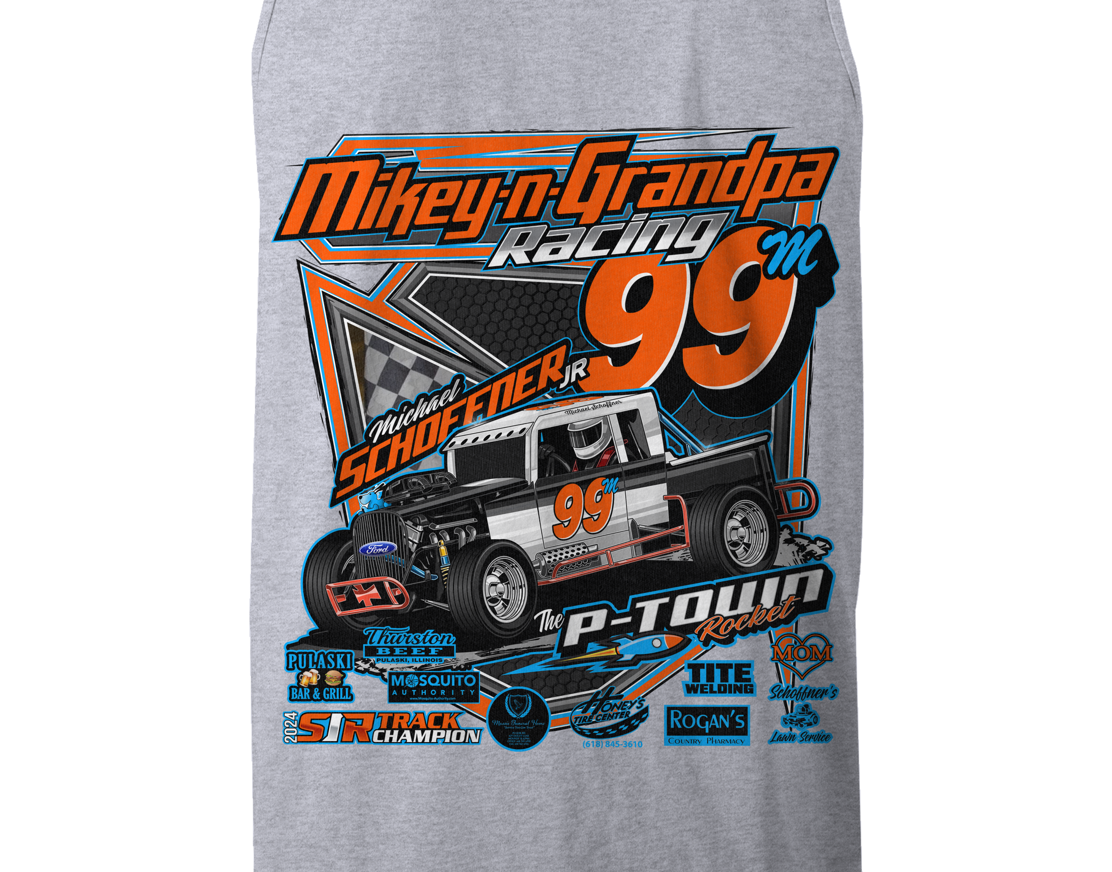 Support Michael Schoffner Jr. 2025 with their custom apparel! Available in Black, Sports Gray and White. Graphics are direct to garment printed with a left chest image and a full back image.