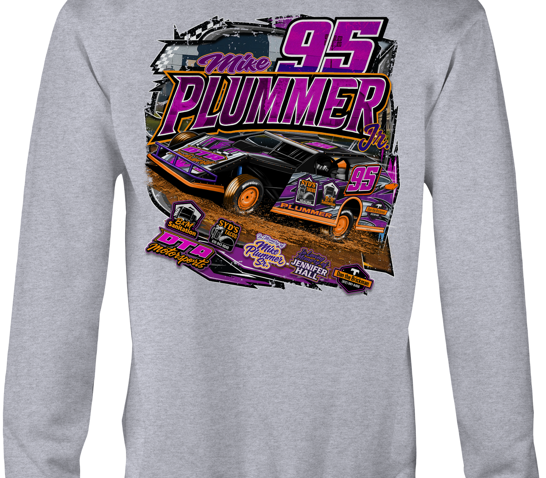 Support Mike Plummer Jr. with their custom apparel! Available in Black, Sports Gray and White. Graphics are direct to garment printed with a left chest image and a full back image.