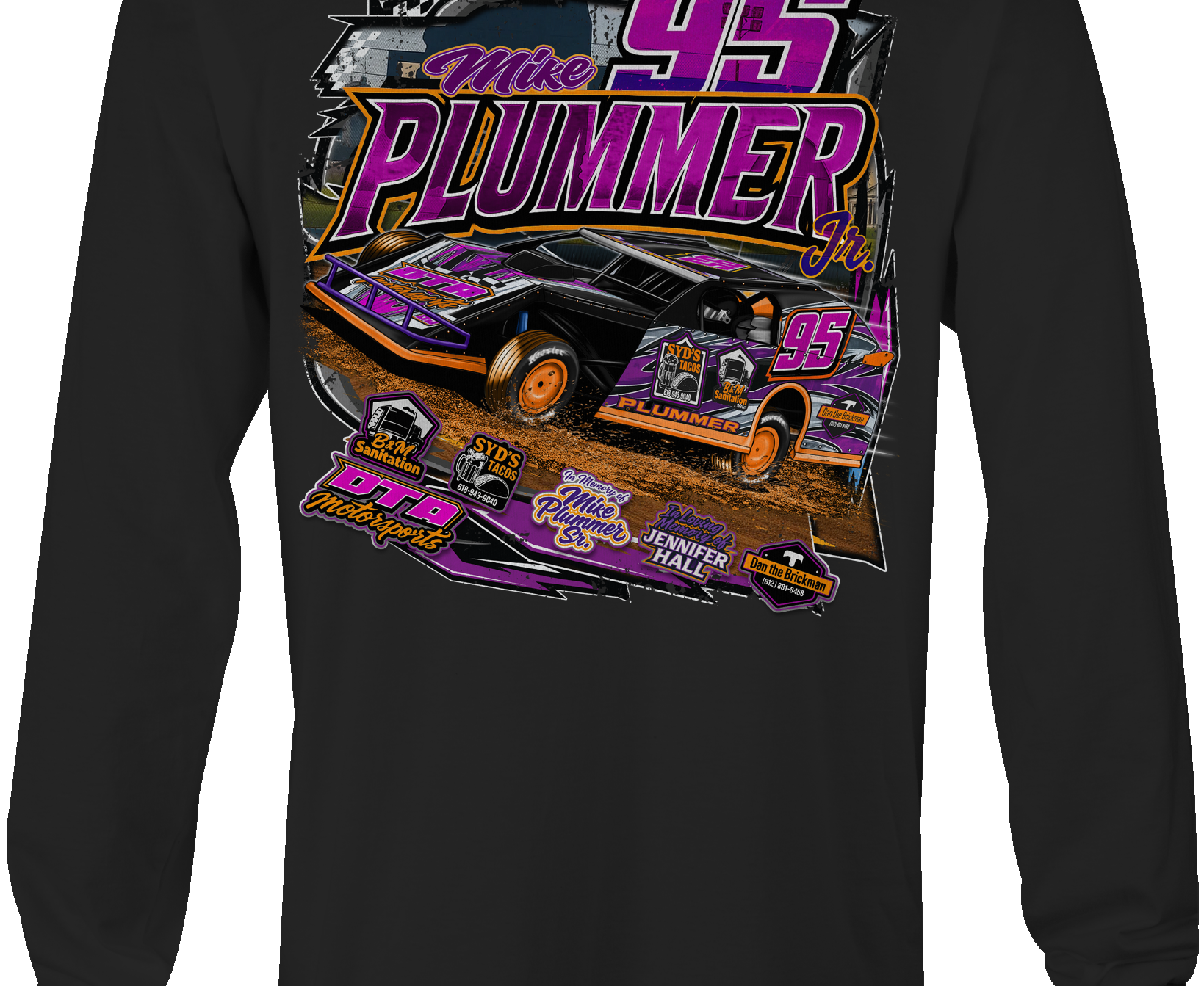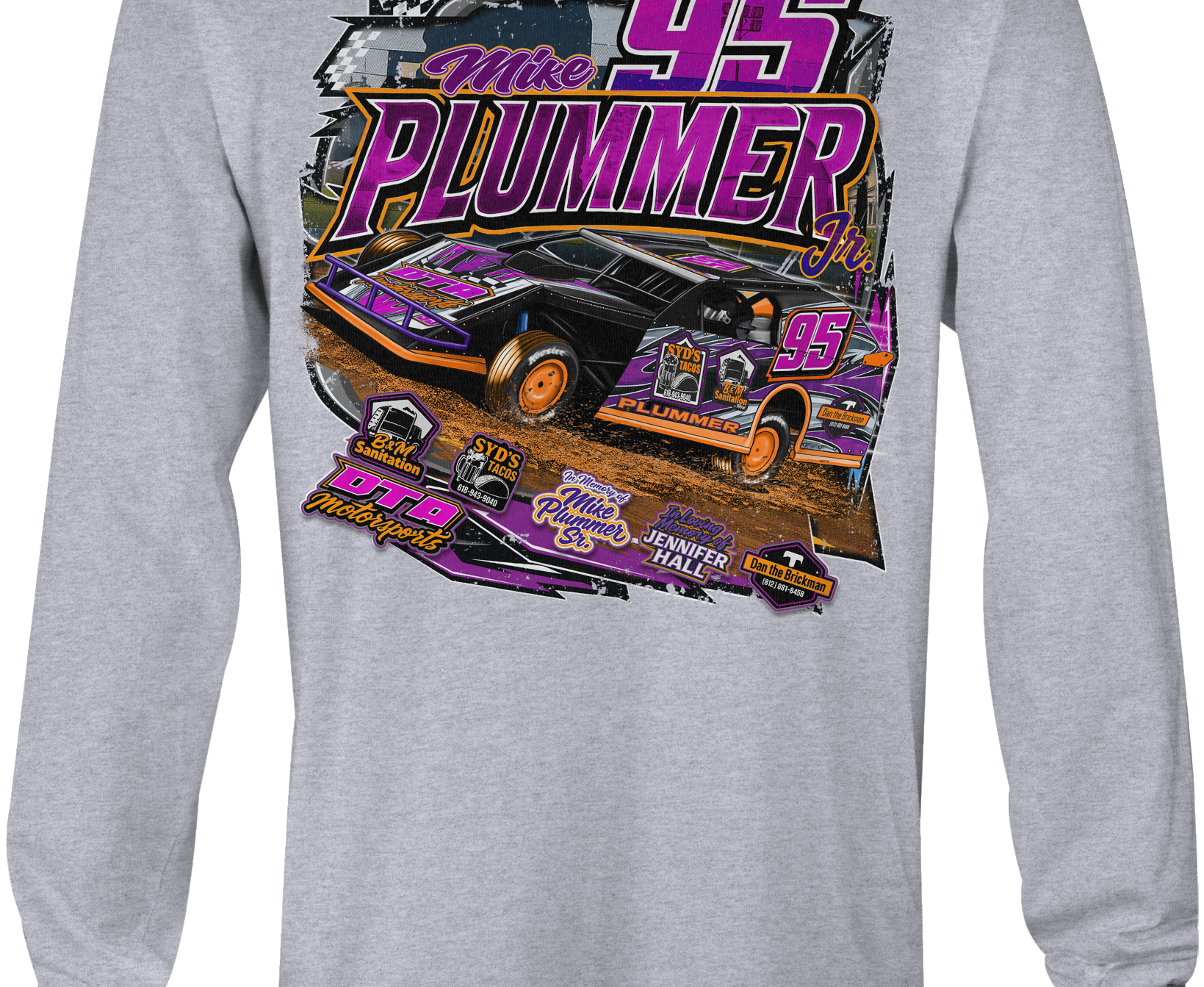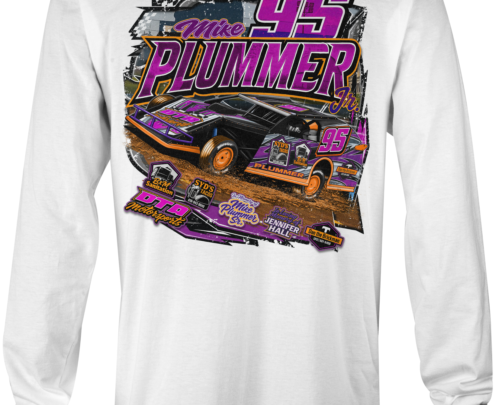 Support Mike Plummer Jr. with their custom apparel! Available in Black, Sports Gray and White. Graphics are direct to garment printed with a left chest image and a full back image.