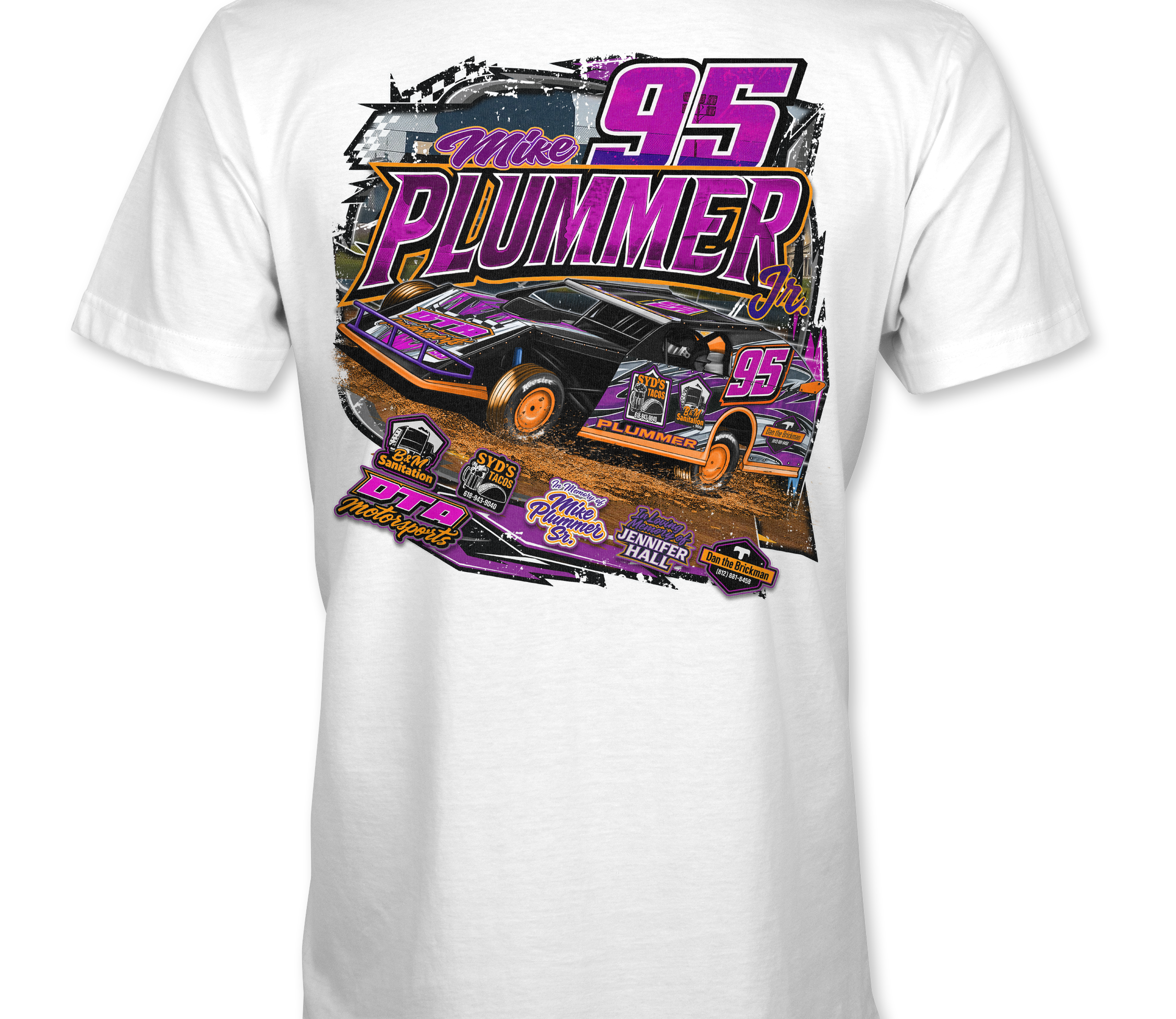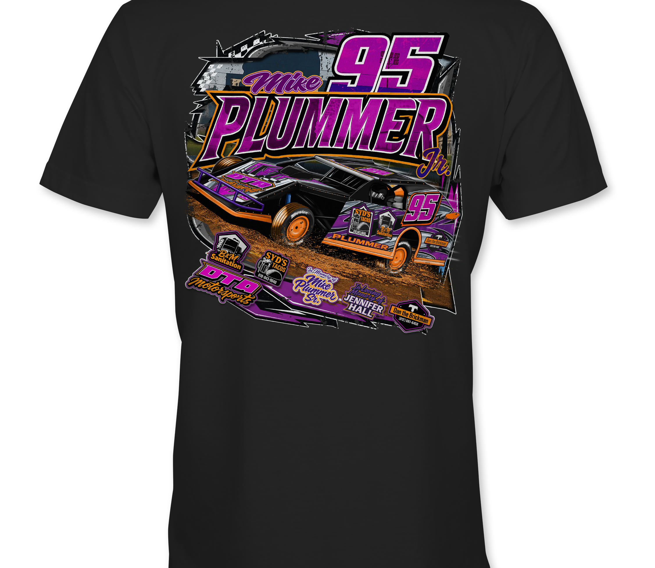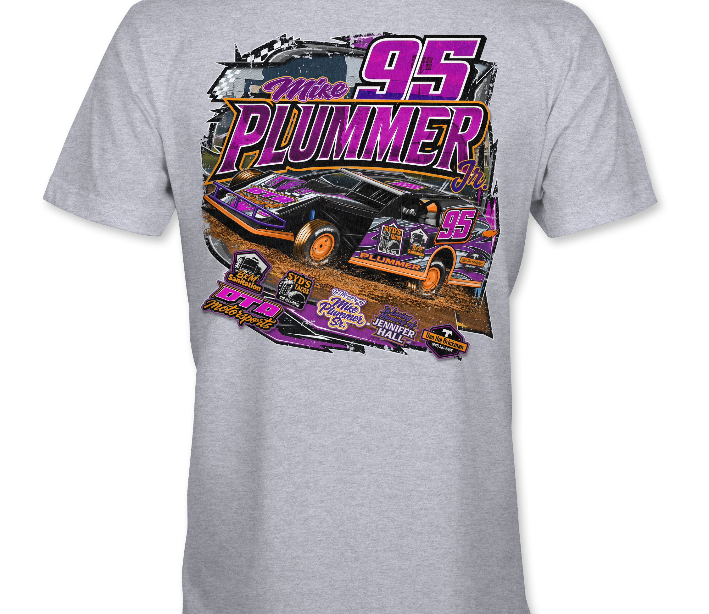 Support Mike Plummer Jr. with their custom apparel! Available in Black, Sports Gray and White. Graphics are direct to garment printed with a left chest image and a full back image.