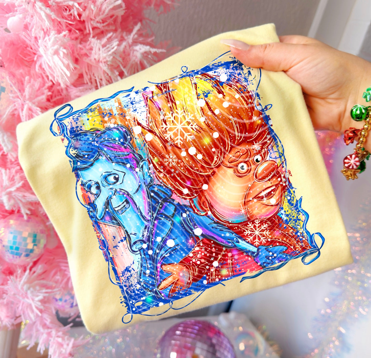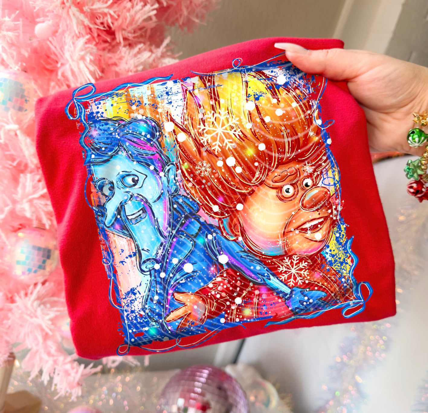 This Miser Brothers Christmas tee features bold, fiery oranges and icy blues for the perfect hot-and-cold holiday mashup. Printed front-only using vibrant DTF for crisp, boutique-quality color.