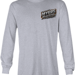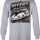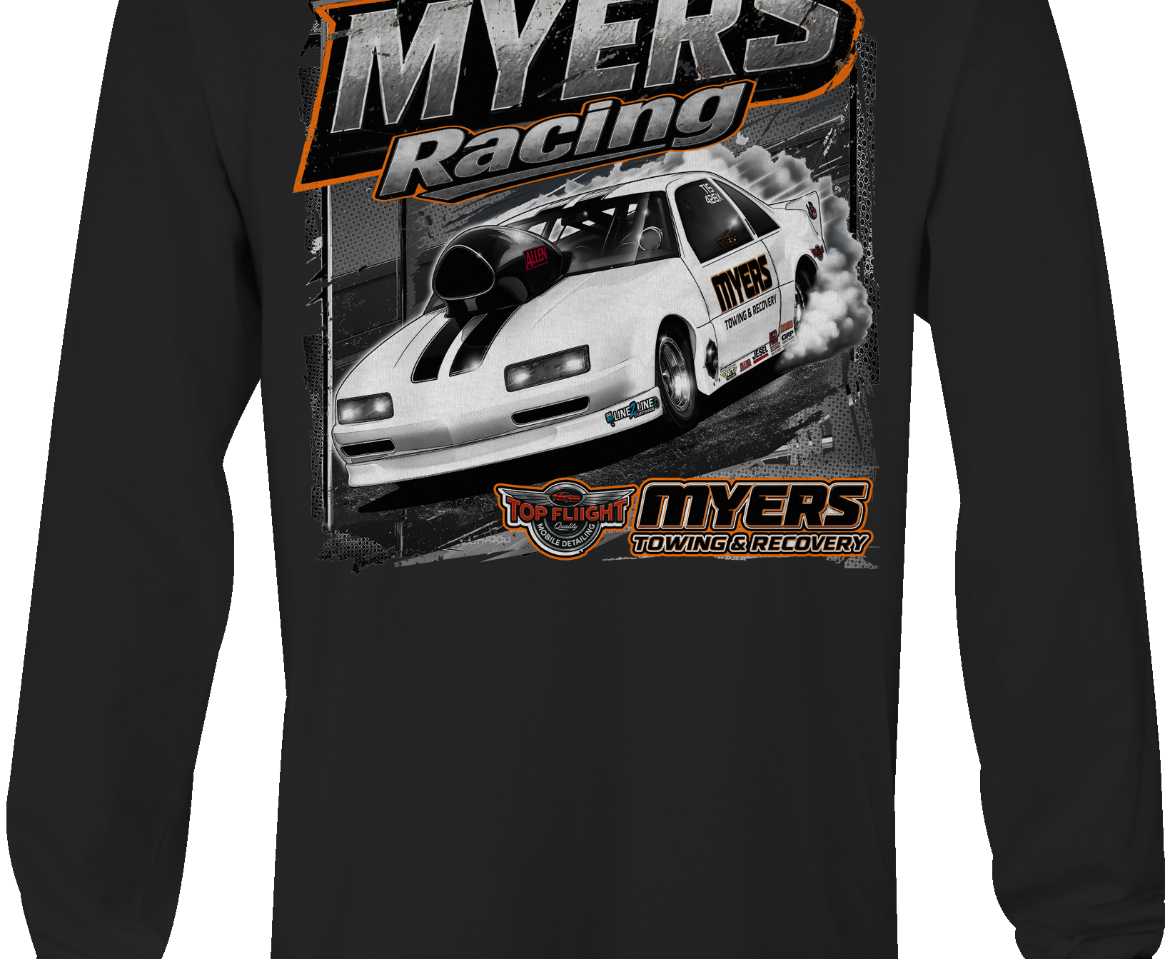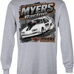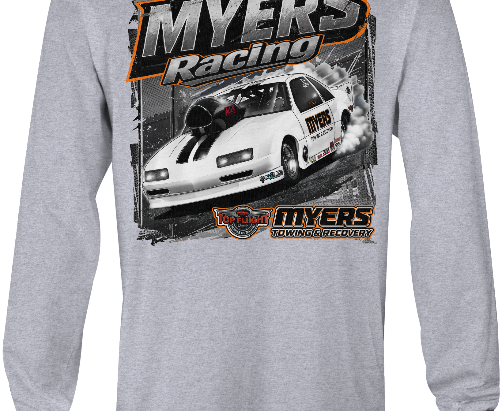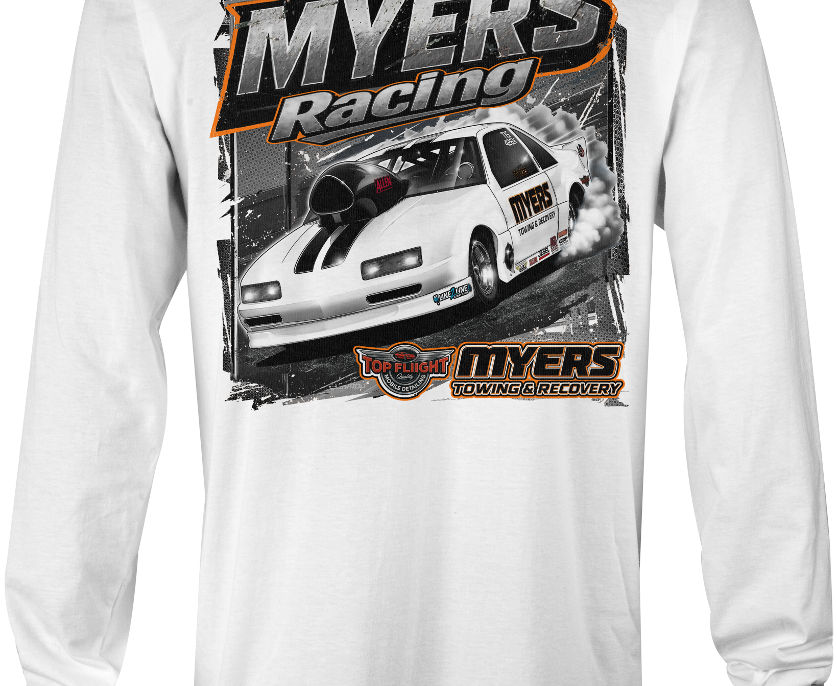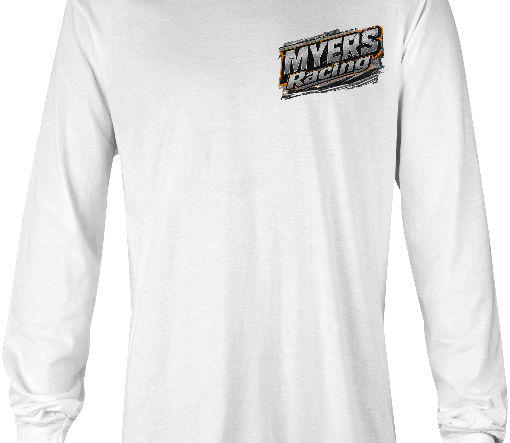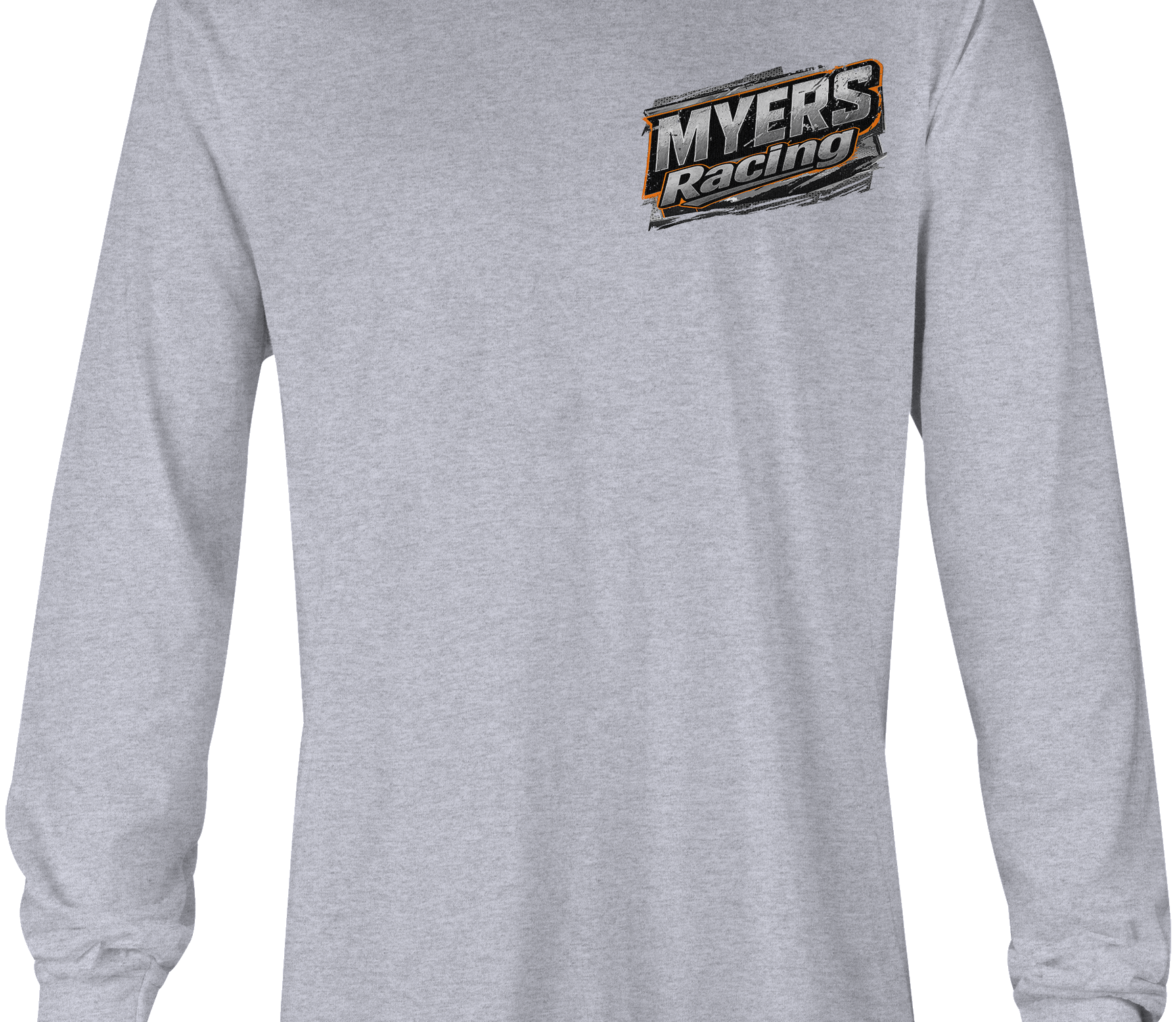 Support Myers Racing 2025 with their custom apparel! Available in Black, Sports Gray and White. Graphics are direct to garment printed with a left chest image and a full back image.