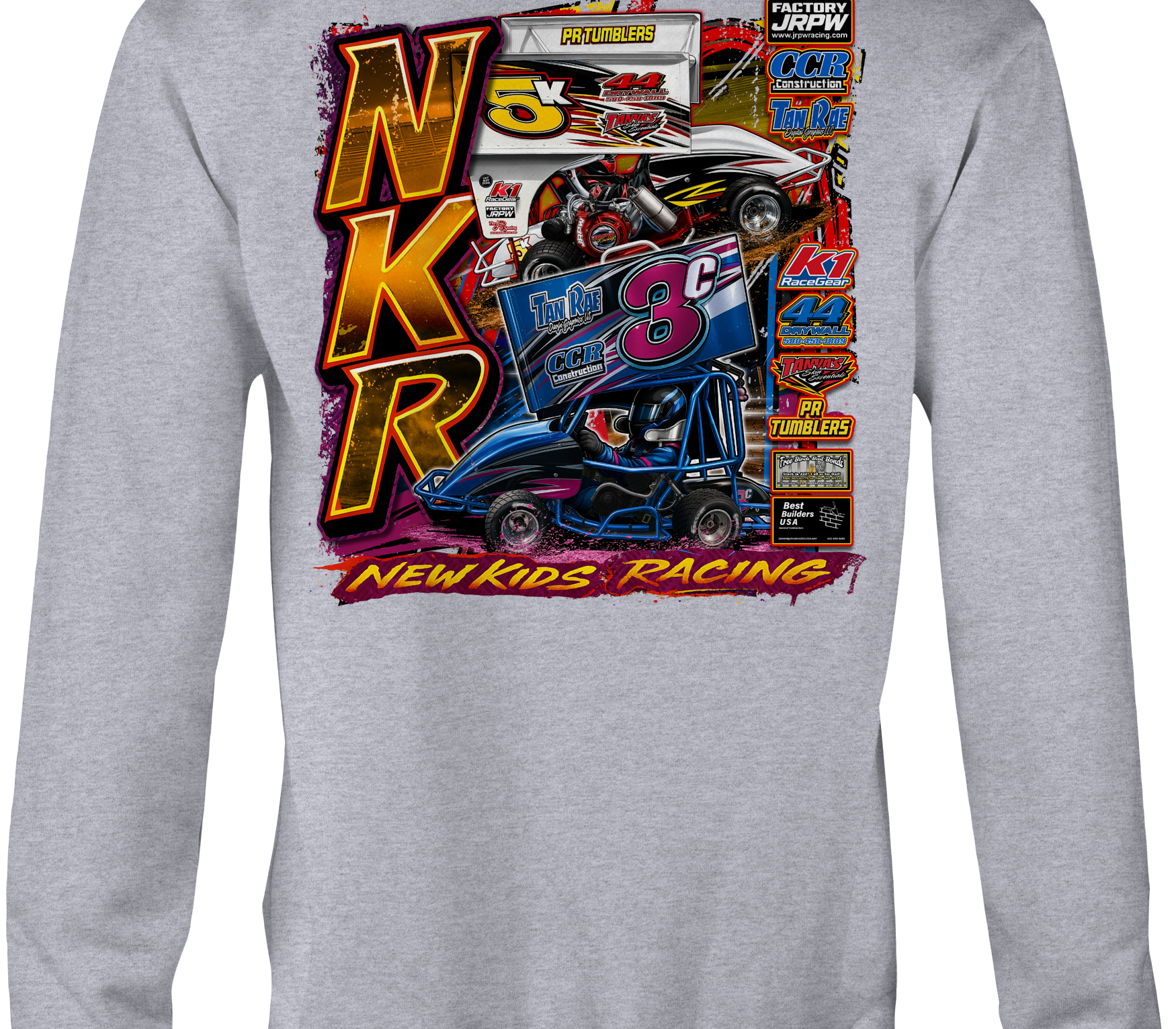 2025 New Kids Racing Official merchandise printed to order on premium apparel. Designed for race fans and supporters
