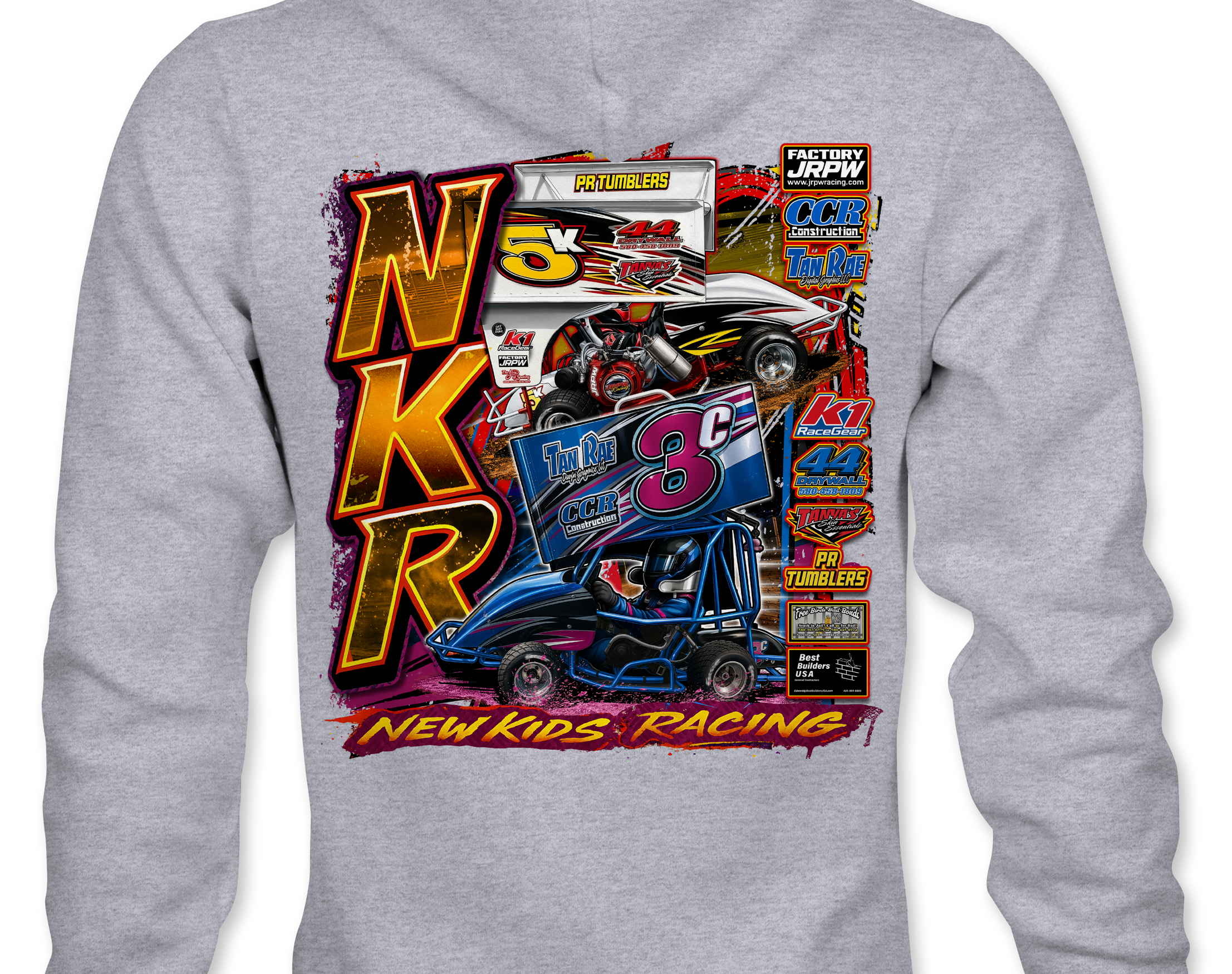2025 New Kids Racing Official merchandise printed to order on premium apparel. Designed for race fans and supporters