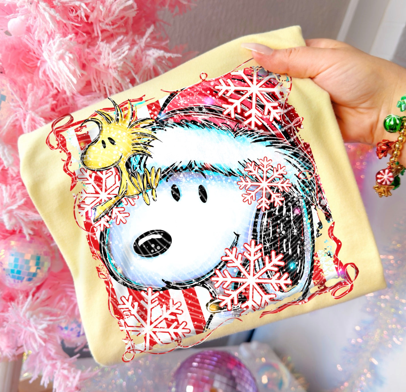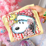 This Peppermint Snoopy hoodie is the ultimate Christmas cozy — candy-cane stripes, sparkles, and Snoopy bundled up with Woodstock.