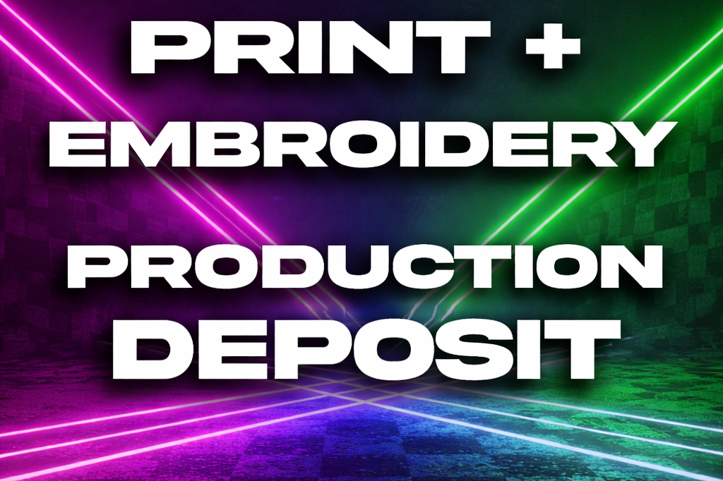 This production deposit is required to begin custom projects that include both printed apparel and embroidery with Black Acid Apparel.