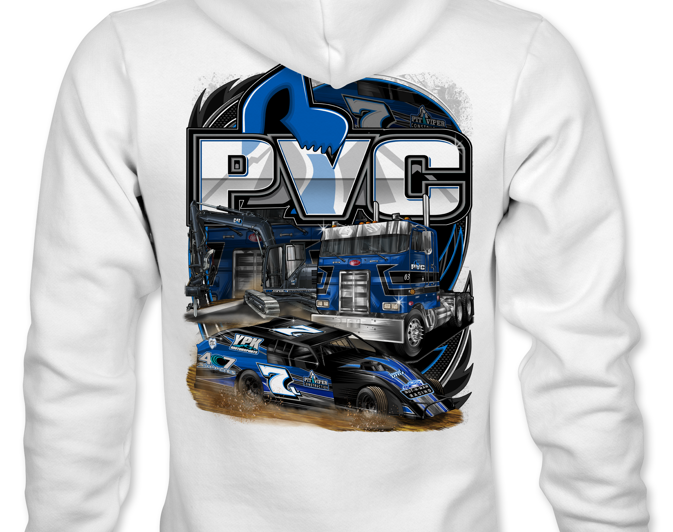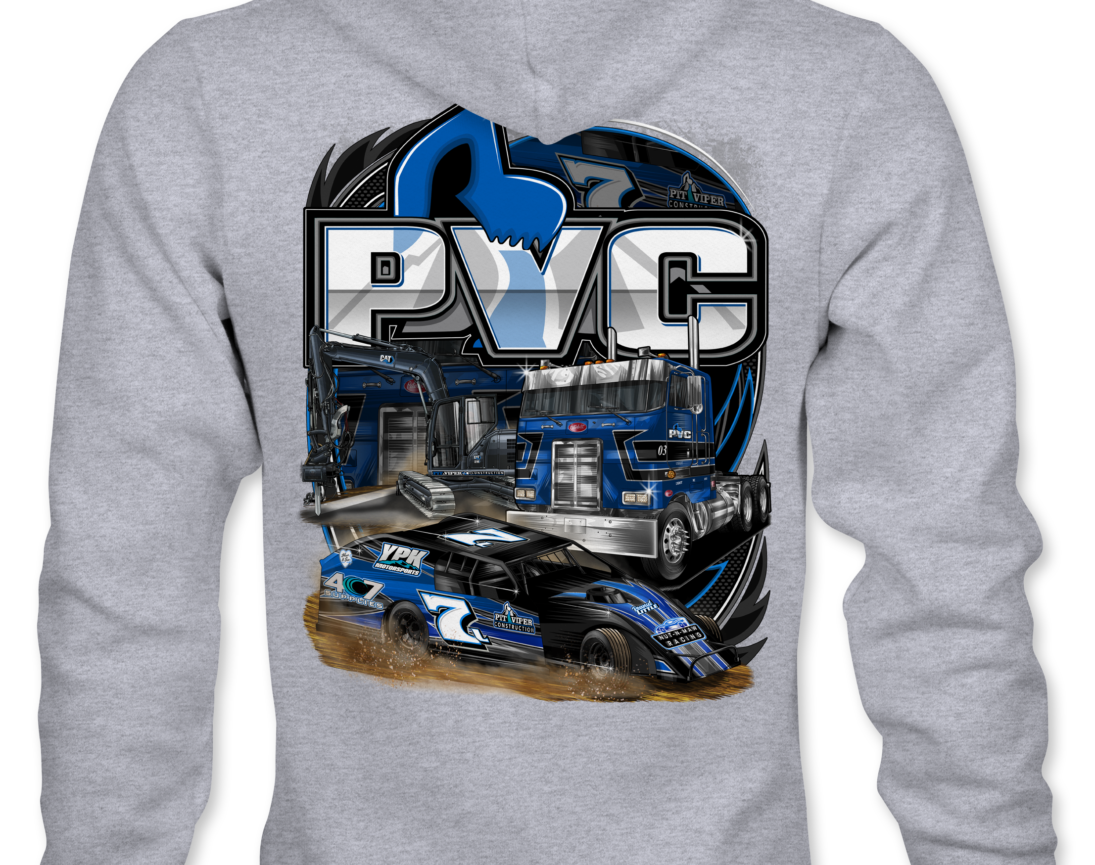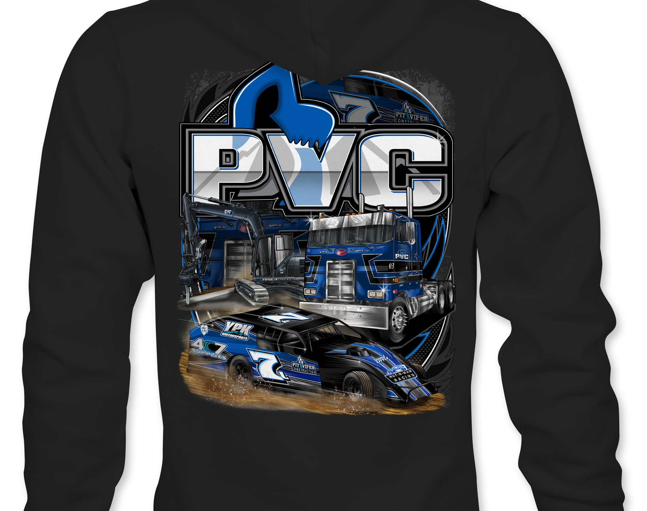 Support PVC Racing 2025 with their custom apparel! Available in Black, Sports Gray and White. Graphics are direct to garment printed with a left chest image and a full back image.
