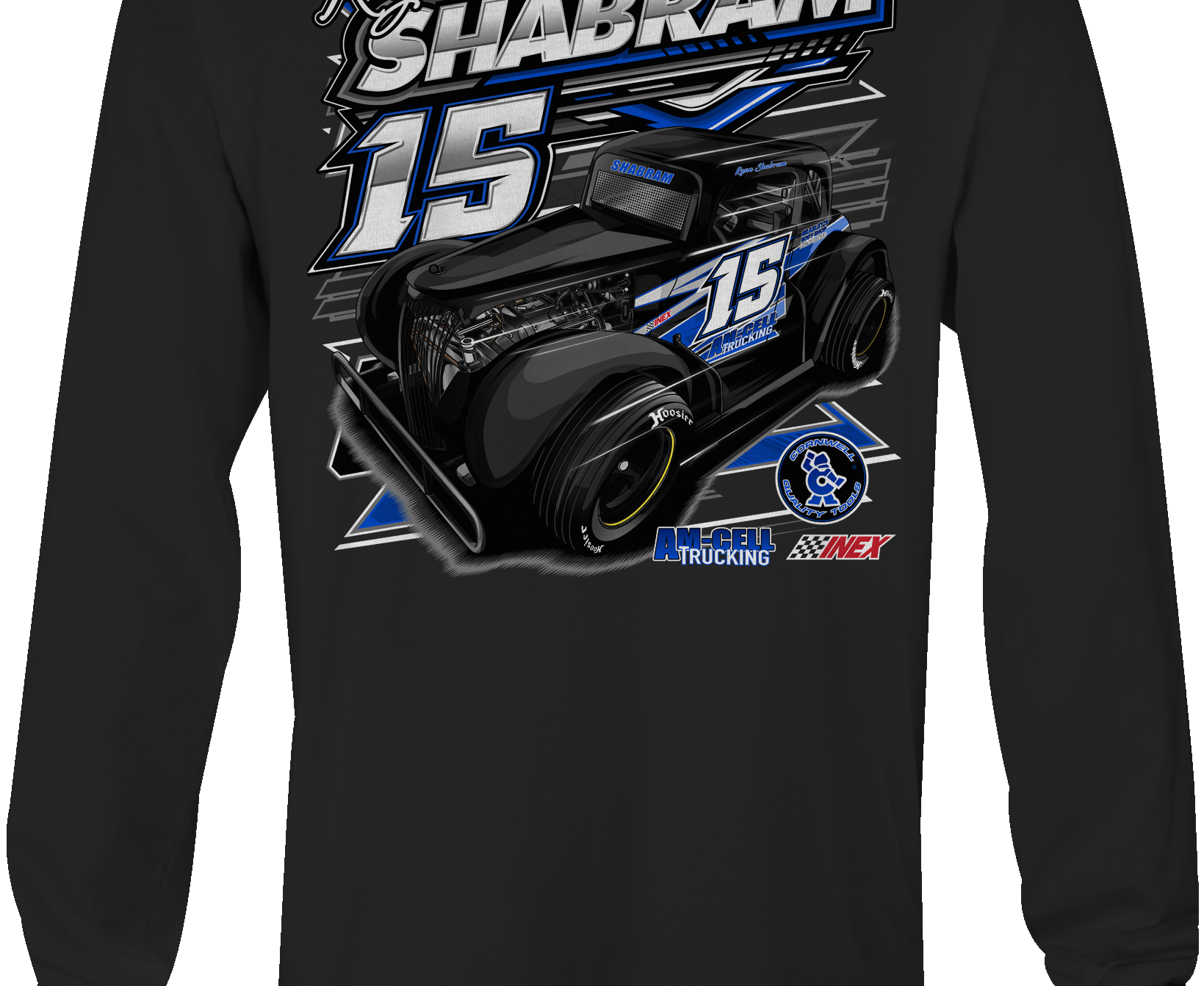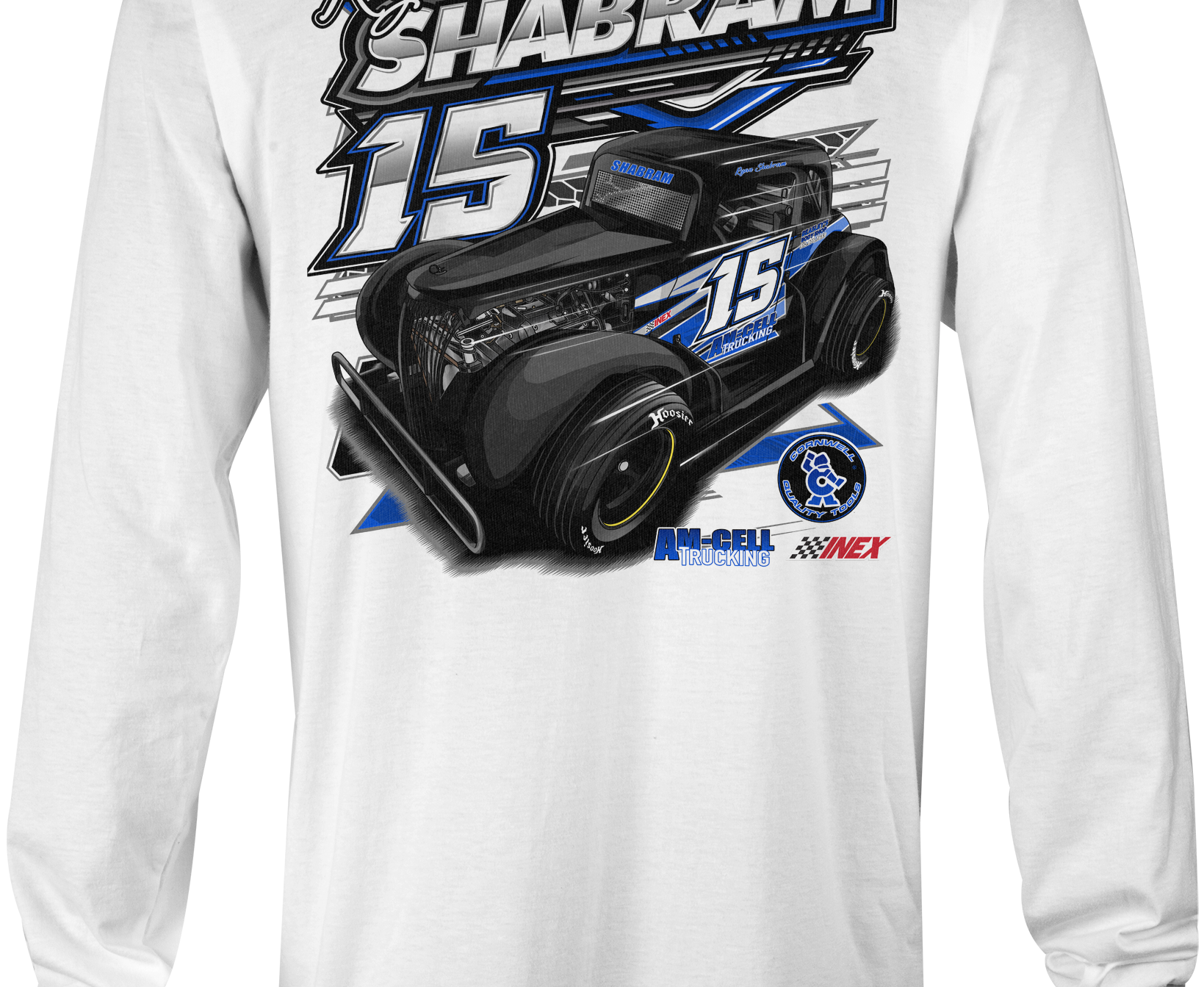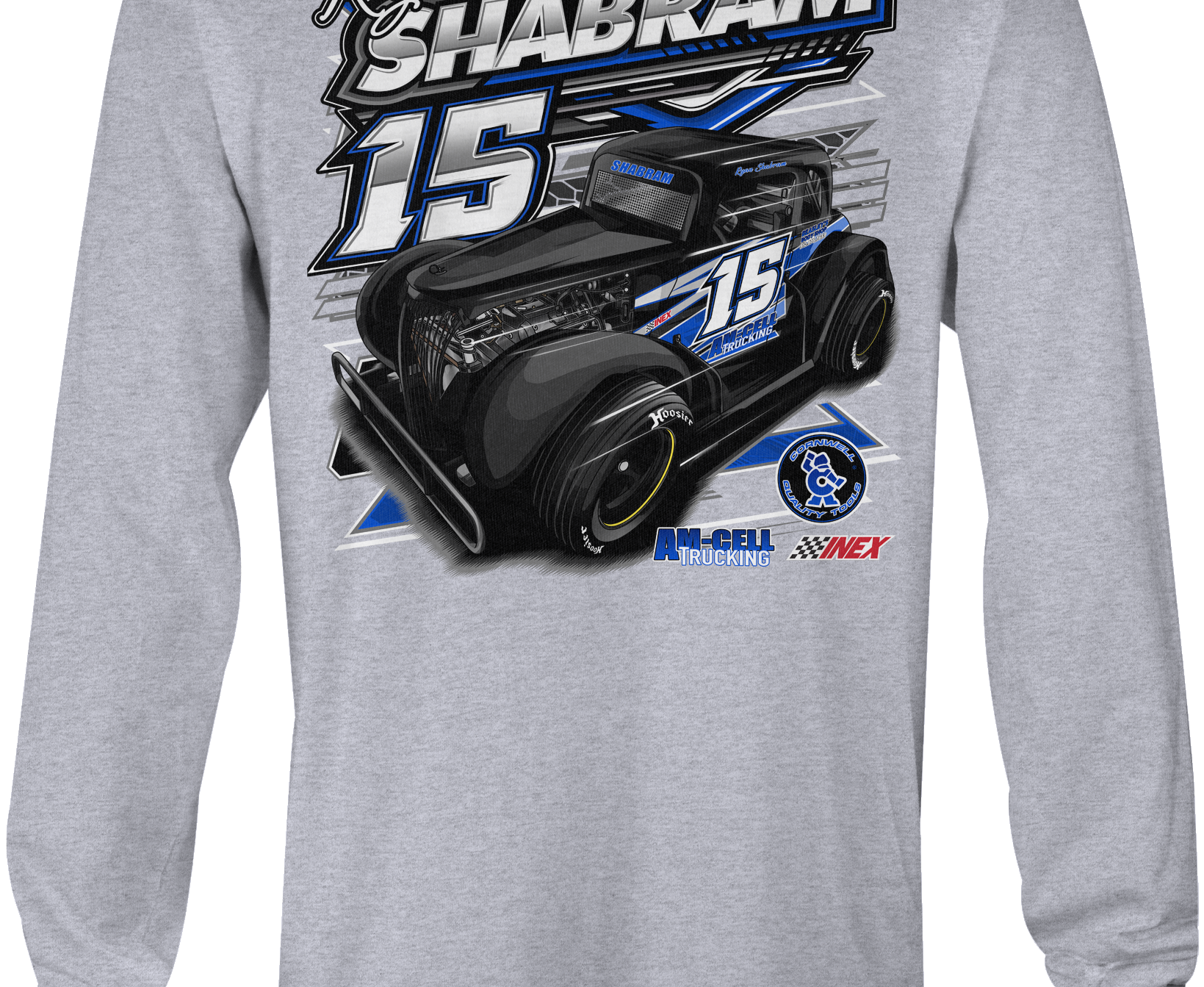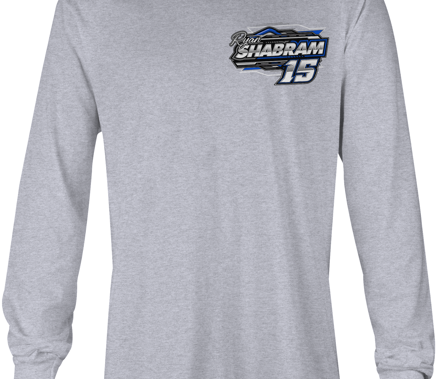 Support Ryan Shabram at Ronald Adams Racing with their custom apparel! Available in Black, Sports Gray and White. Graphics are direct to garment printed with a left chest image and a full back image.