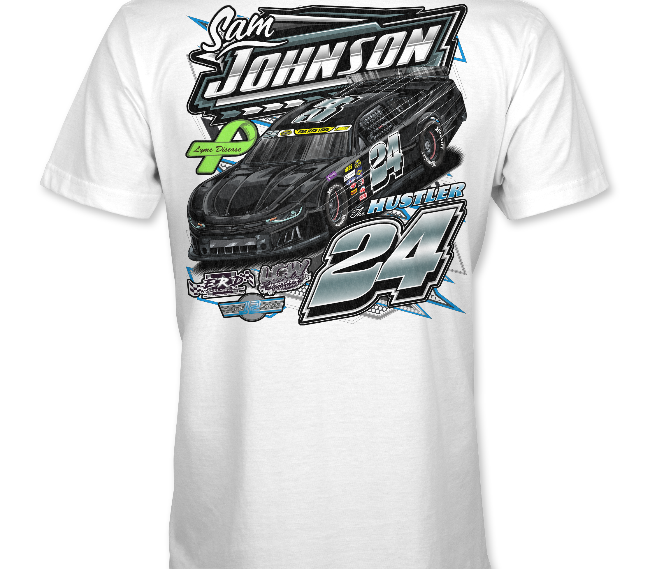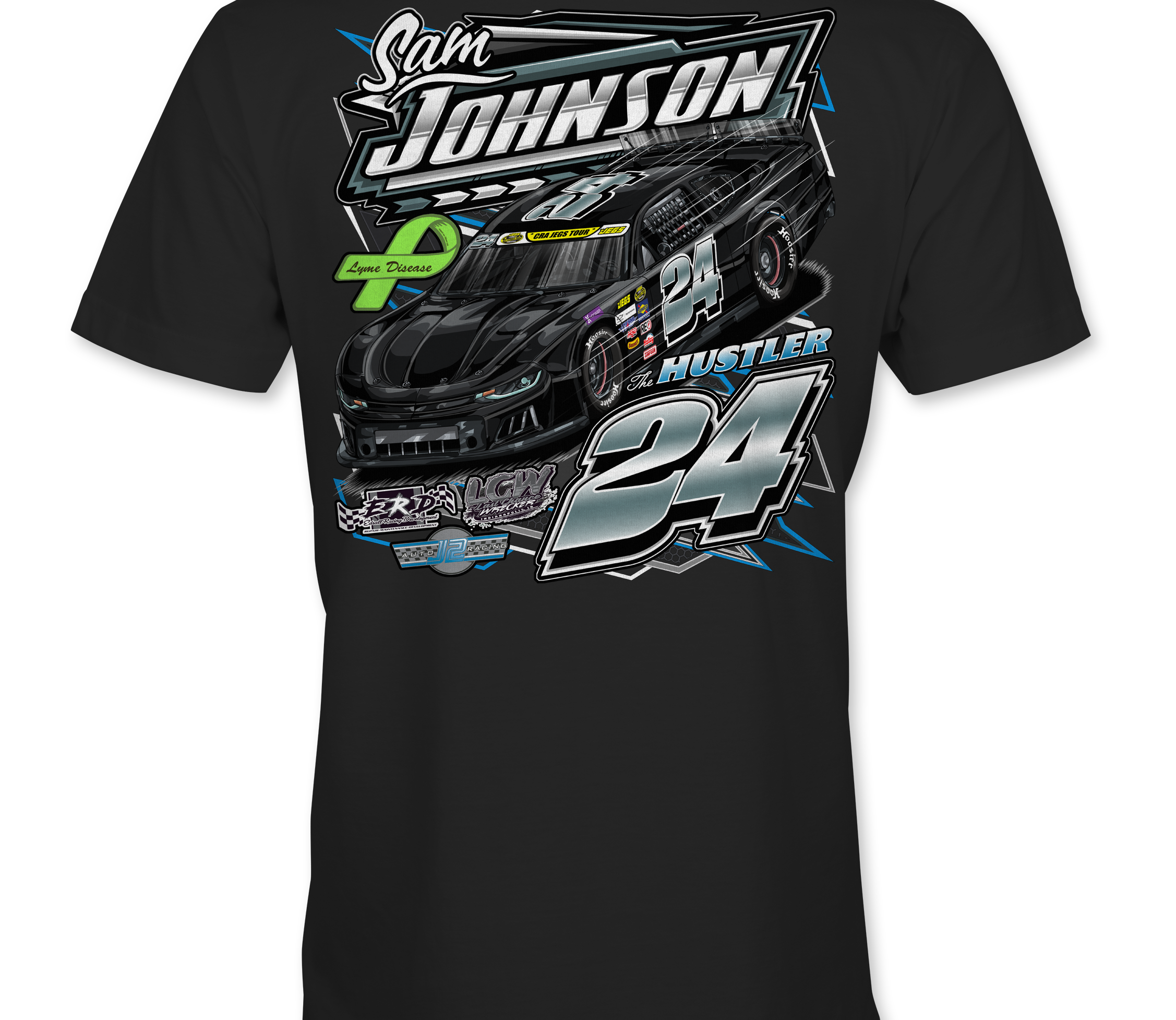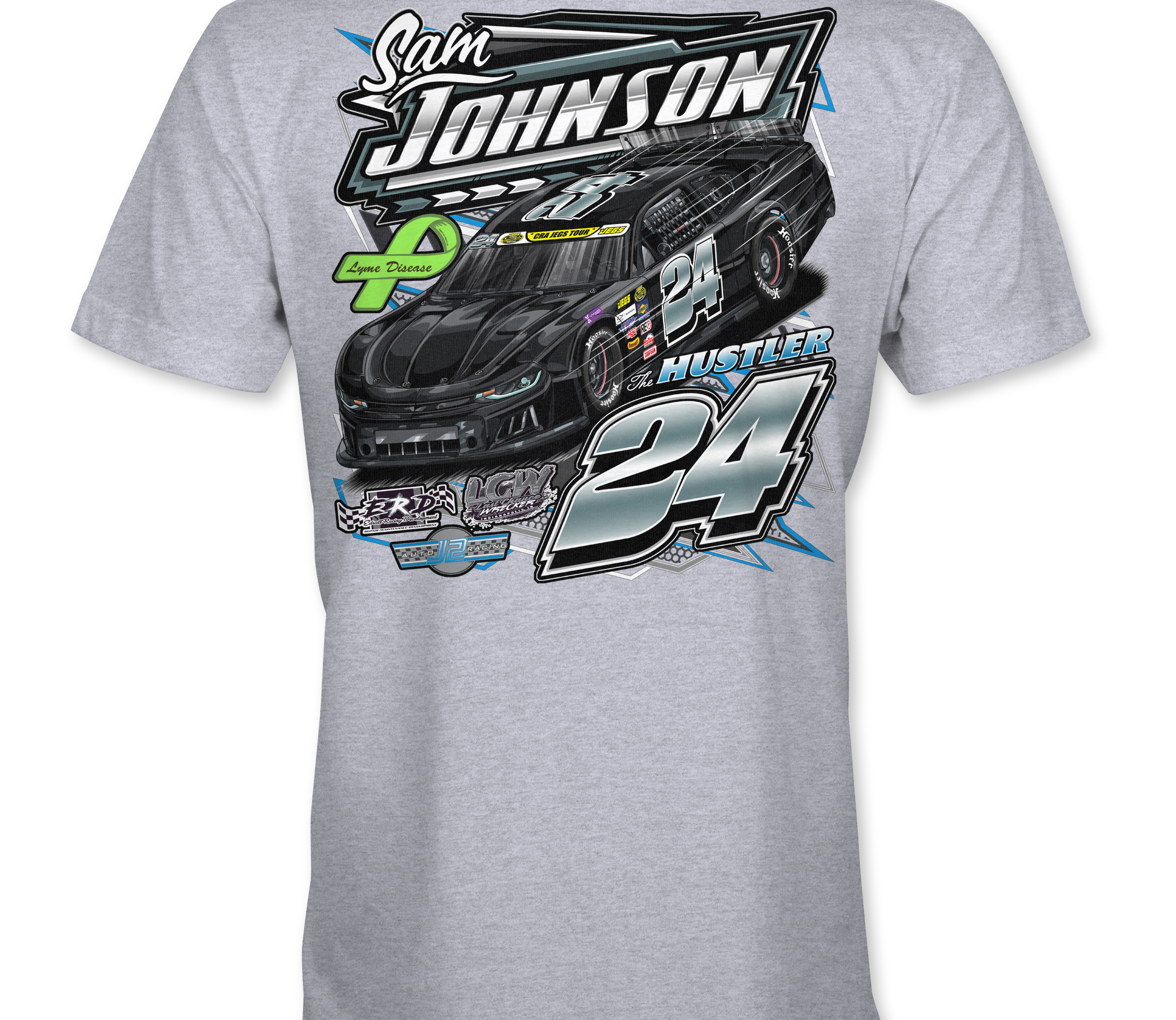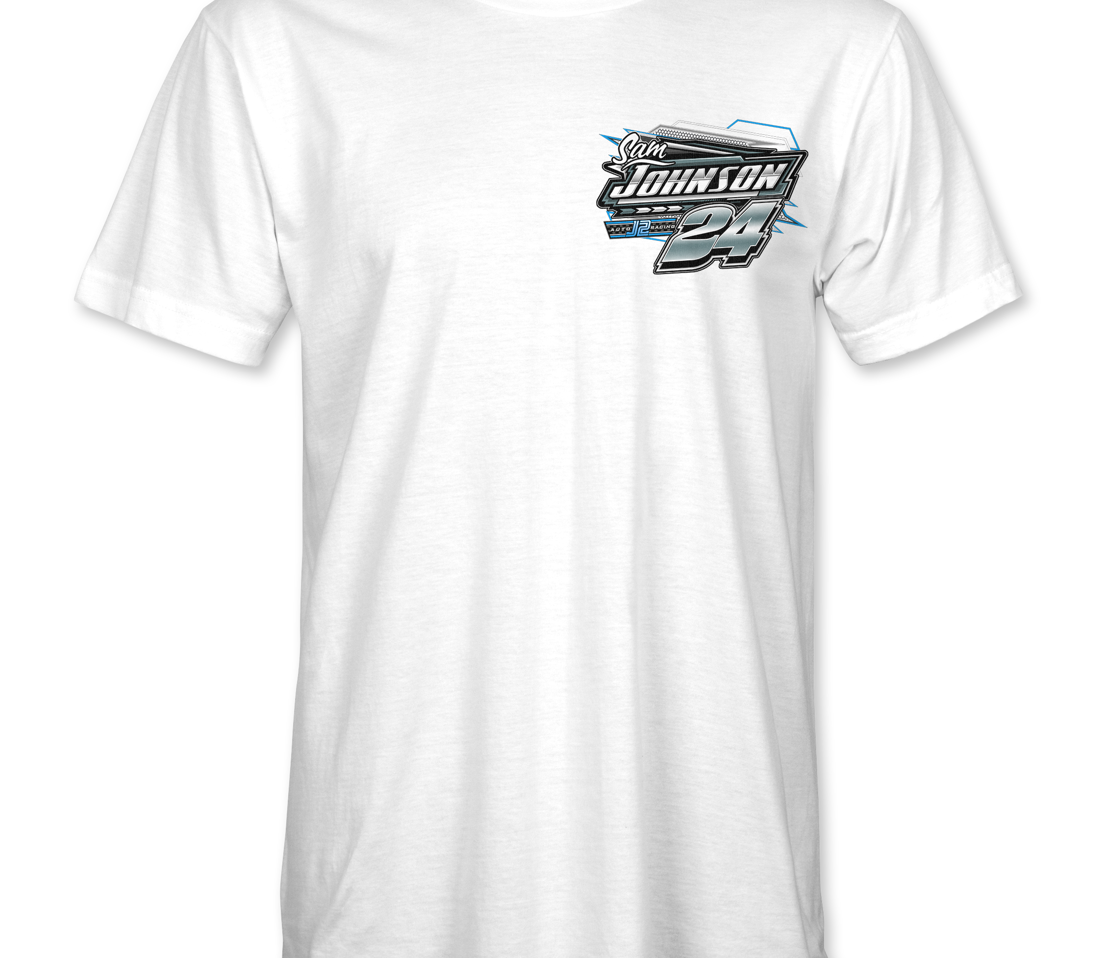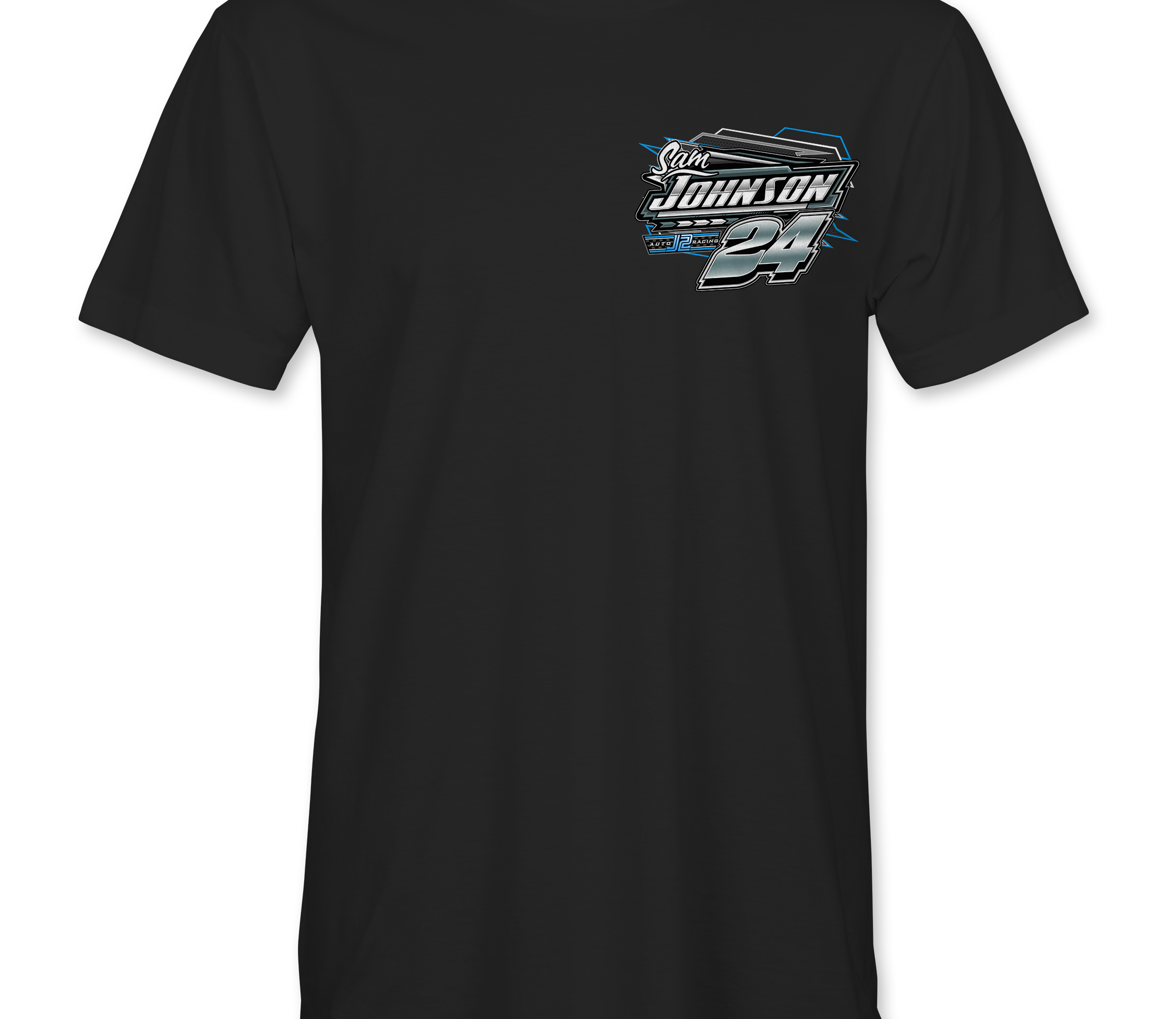 Support Sam Johnson with their custom apparel!  Available in Black, Sports Gray and White. Graphics are direct to garment printed with a left chest image and a full back image.