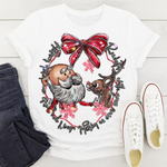 This Santa & Rudolph Christmas tee features a hand-drawn, vintage-inspired Santa and his favorite reindeer framed in a festive bow and snowflakes. Printed front-only with a boutique-quality DTF transfer for bright, crisp color.