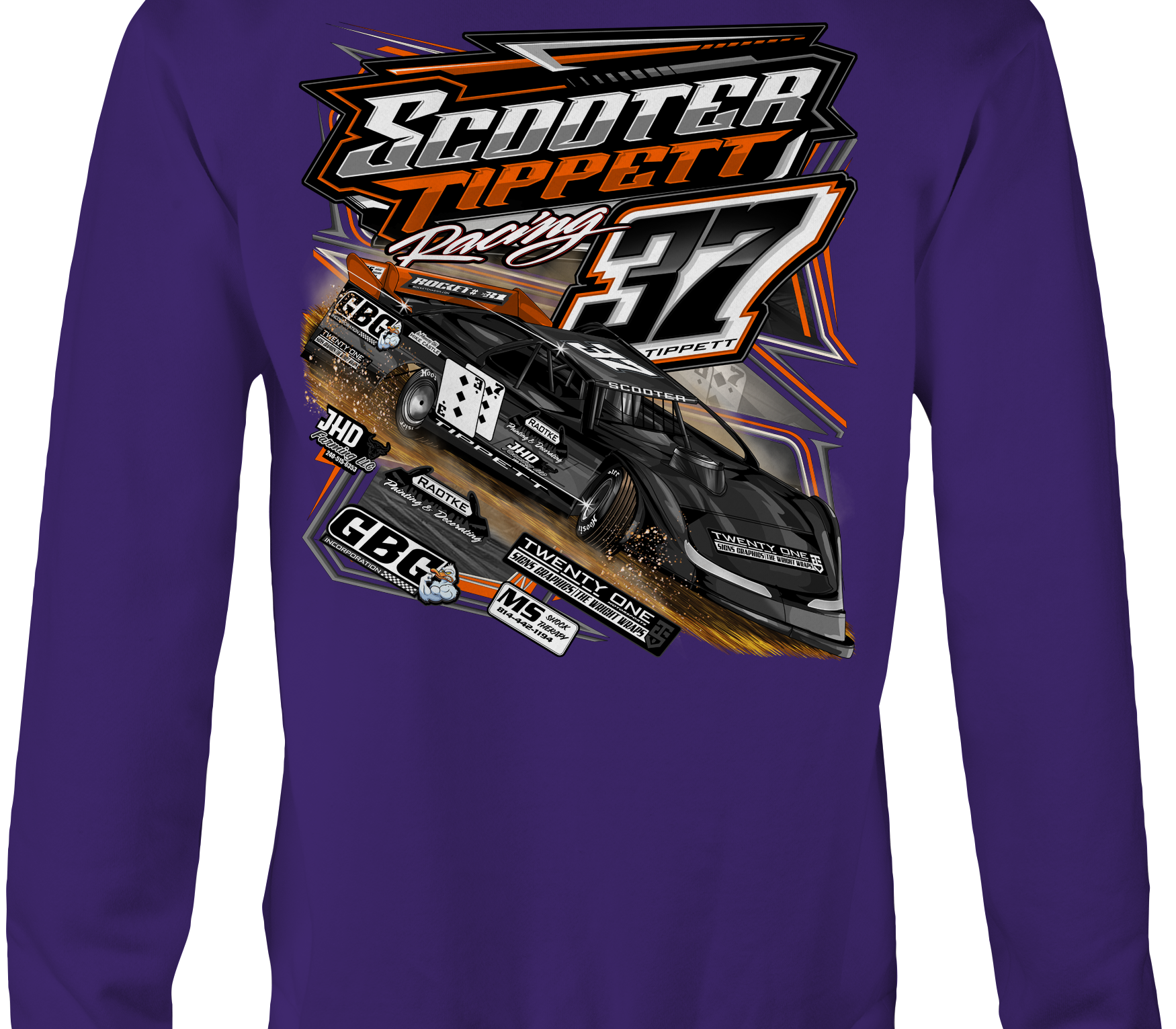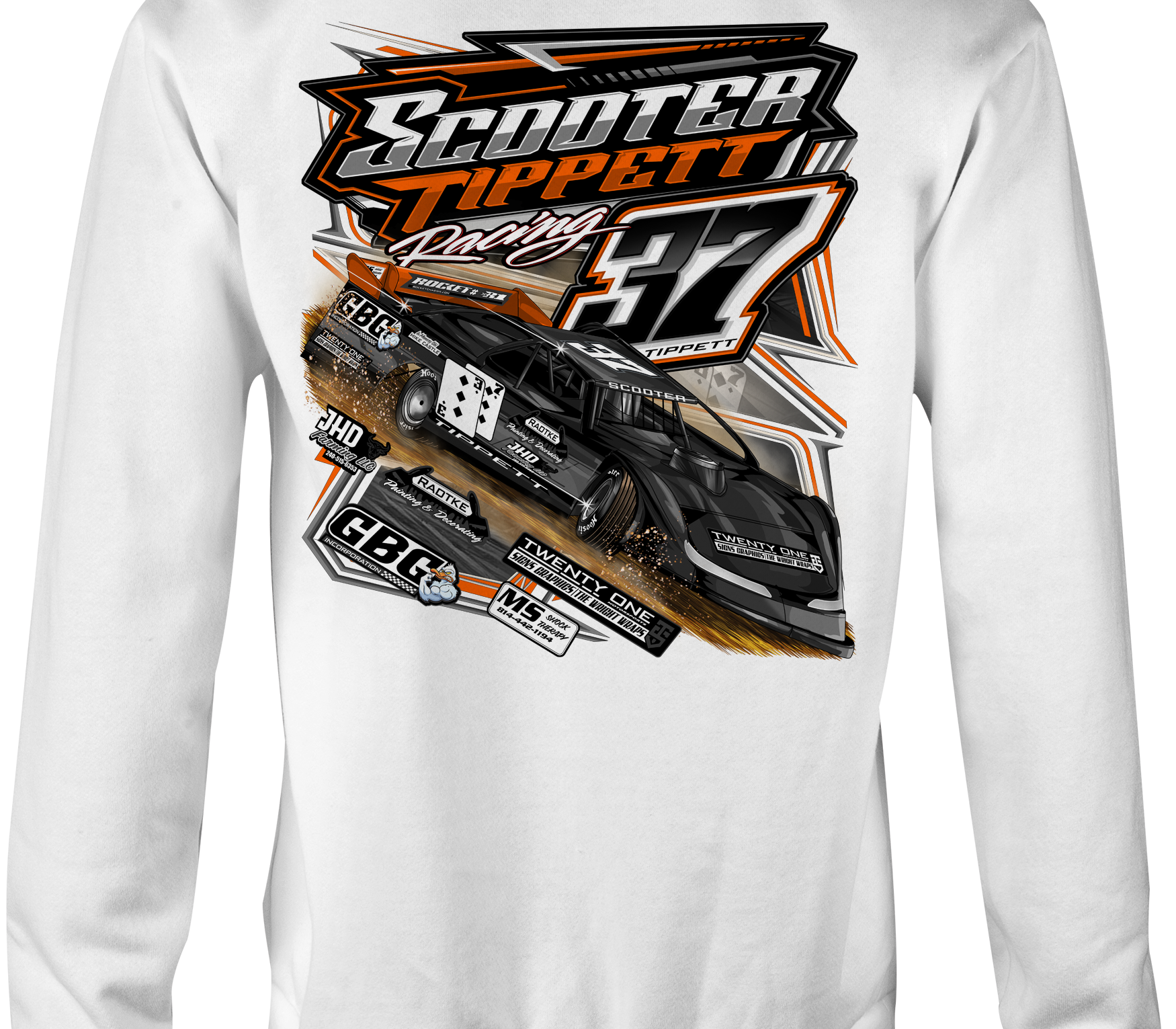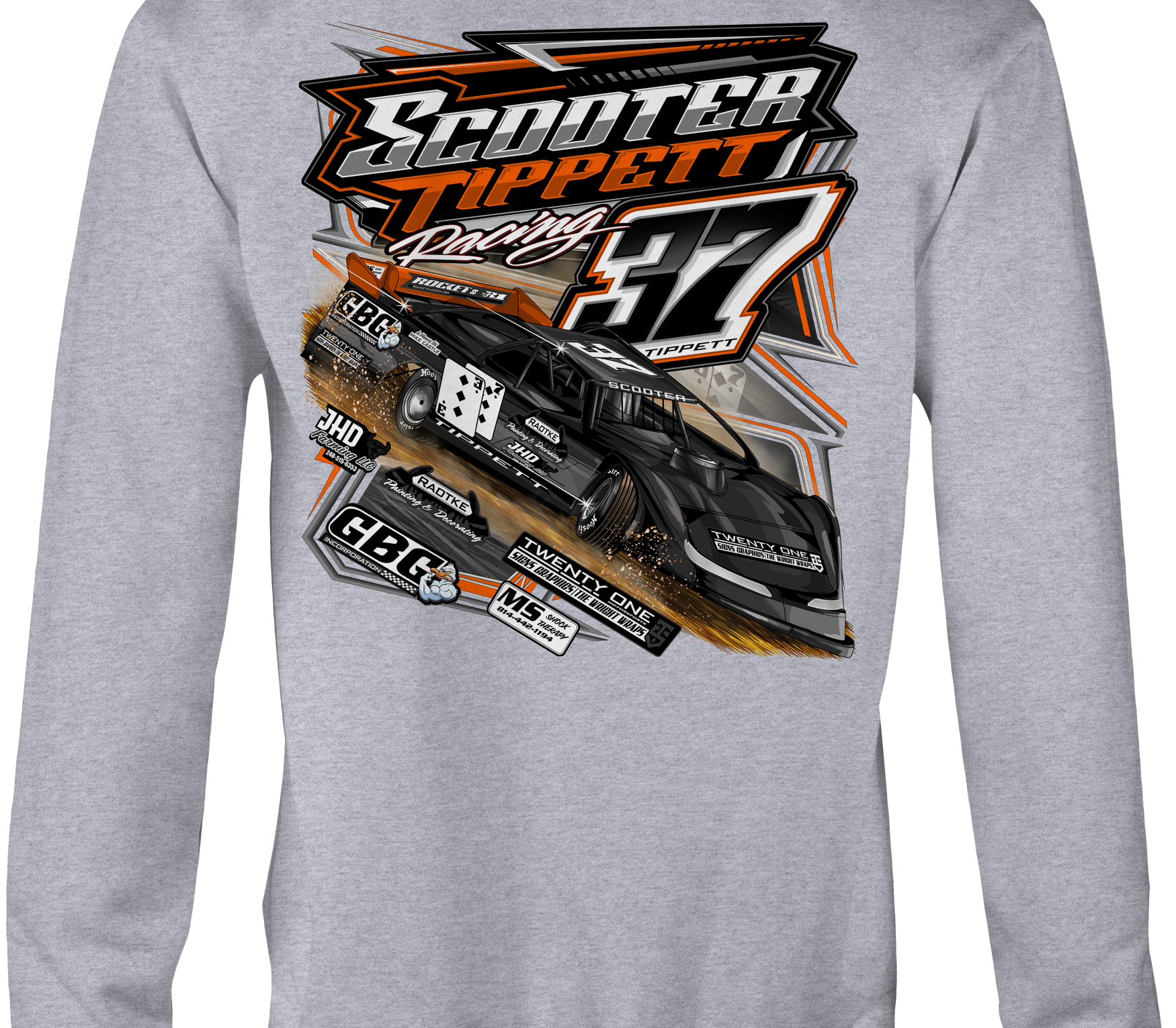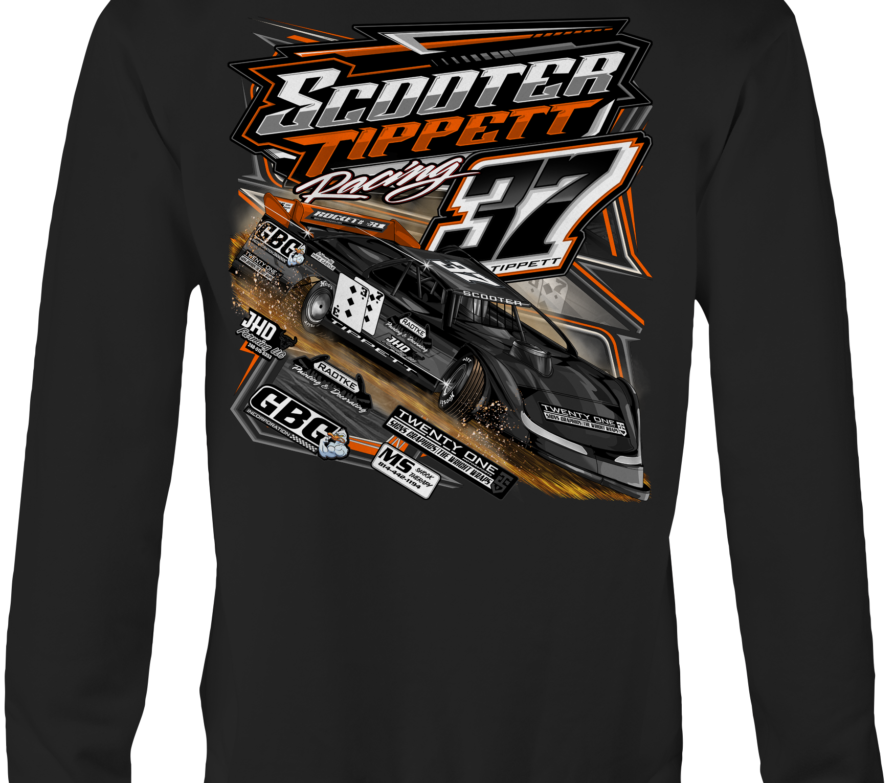 Support Scooter Tippett with their custom apparel! Available in Black, Sports Gray and White. Graphics are direct to garment printed with a left chest image and a full back image.