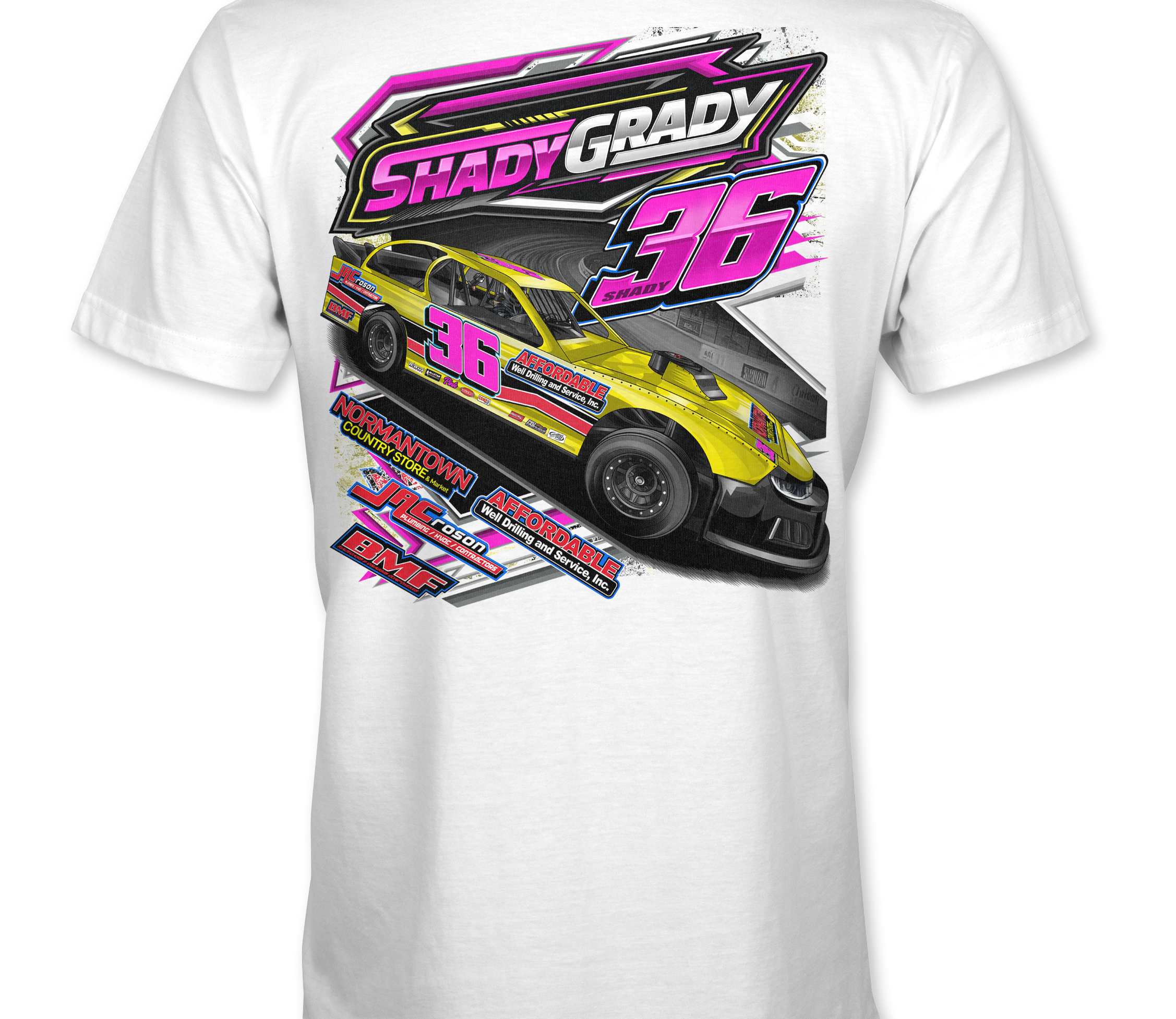 Shady Grady 2026  Official driver merchandise printed to order on premium apparel. Designed for race fans and supporters