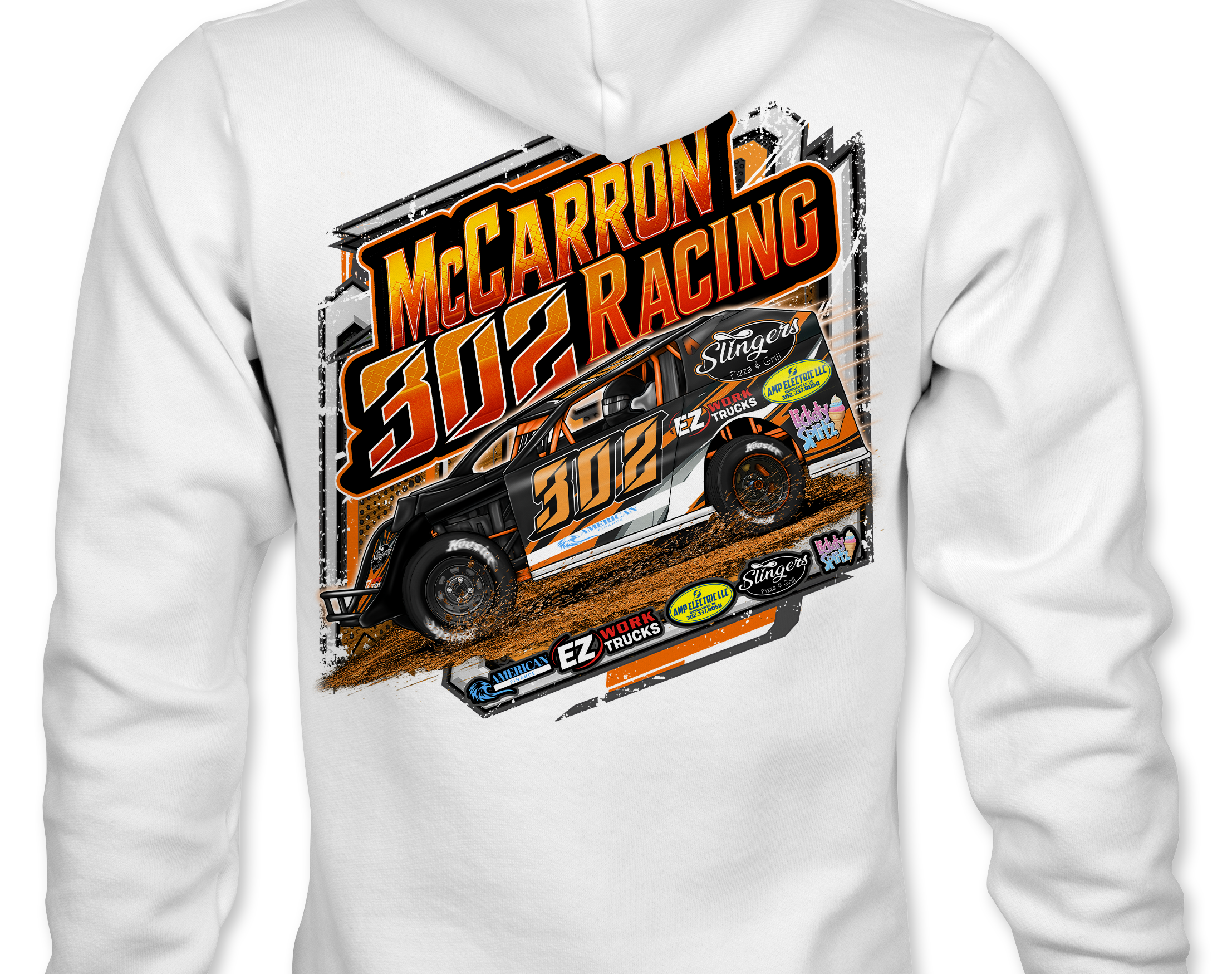 Support Steve McCarron with their custom apparel!  Available in Black, Sports Gray and White. Graphics are direct to garment printed with a left chest image and a full back image.
